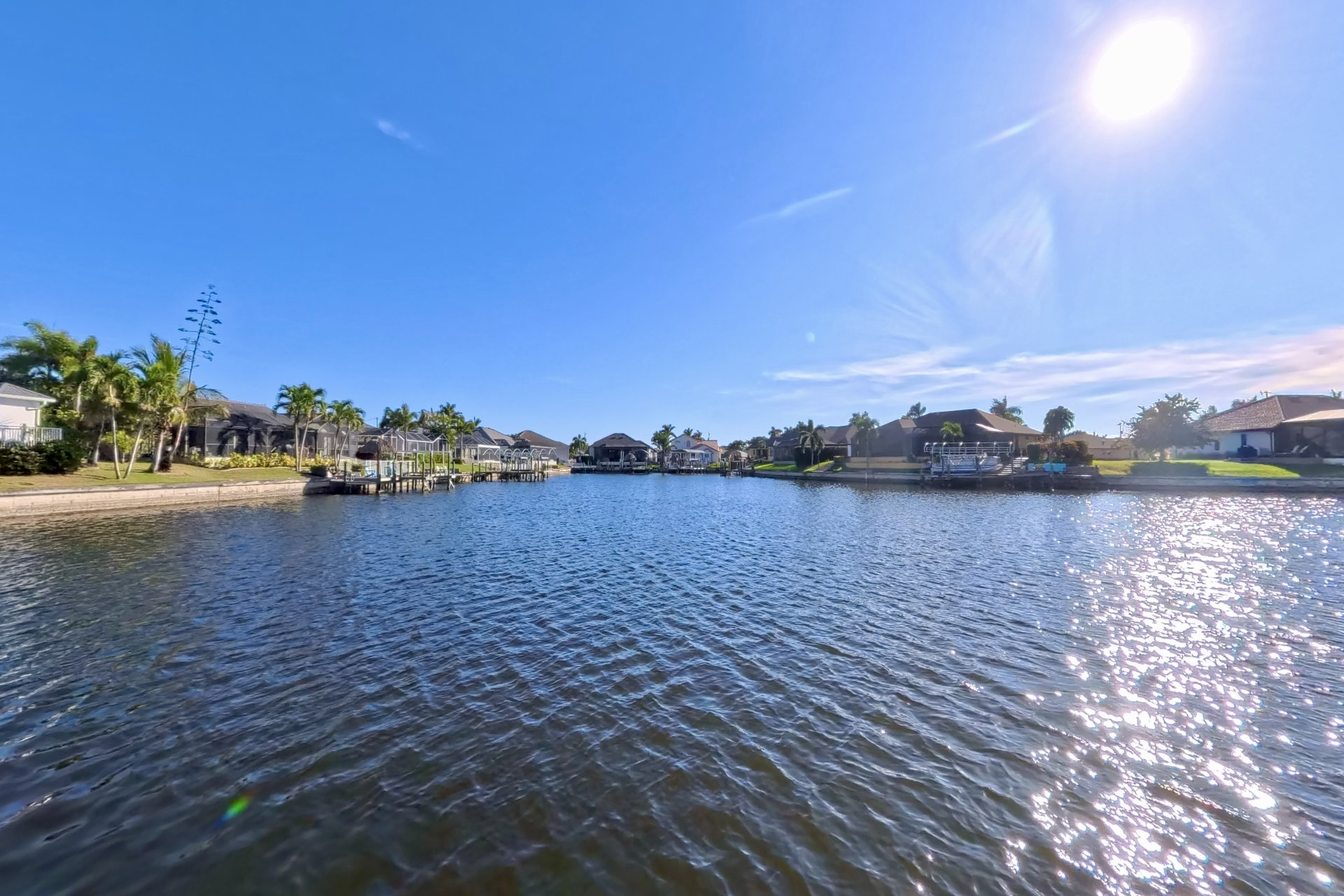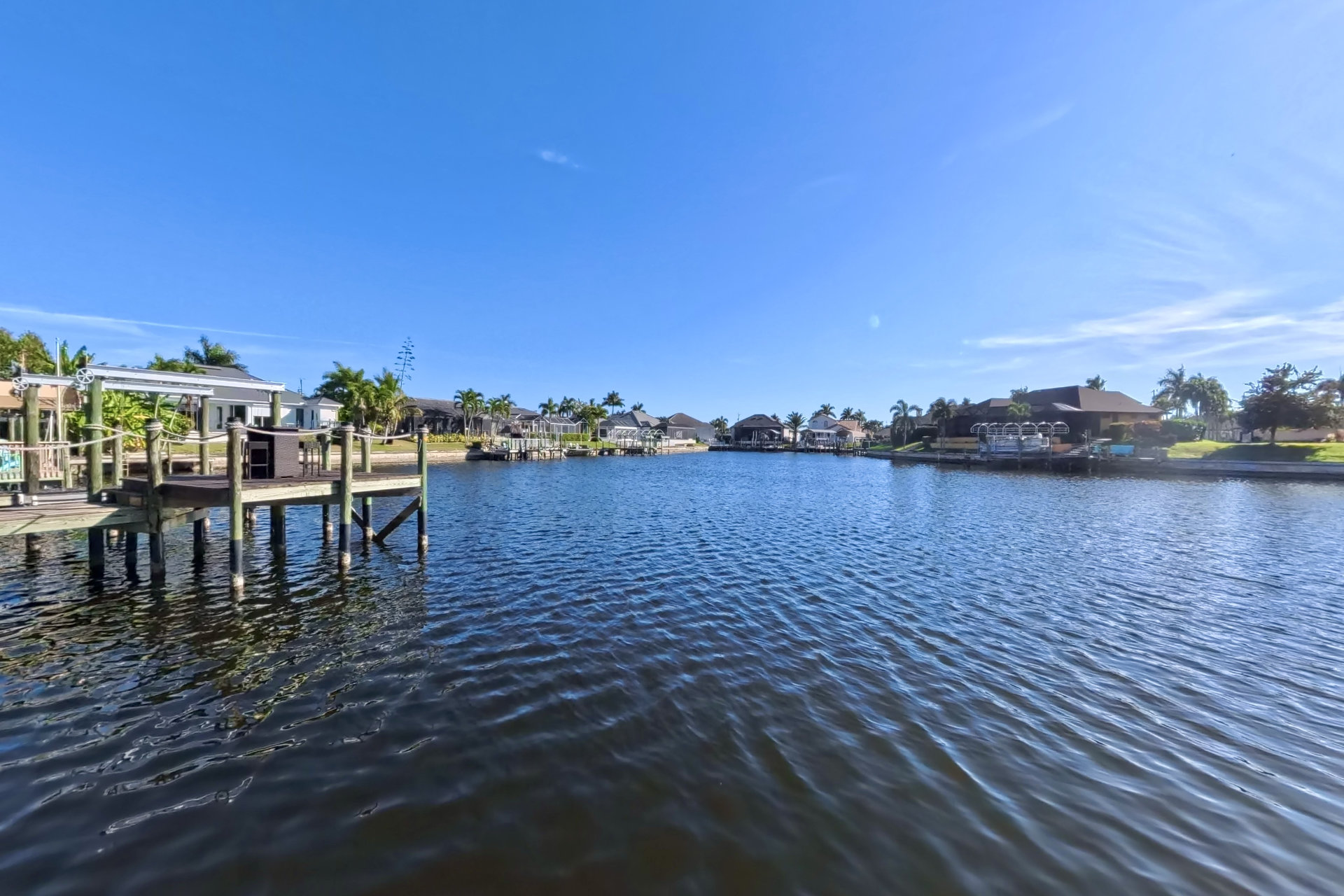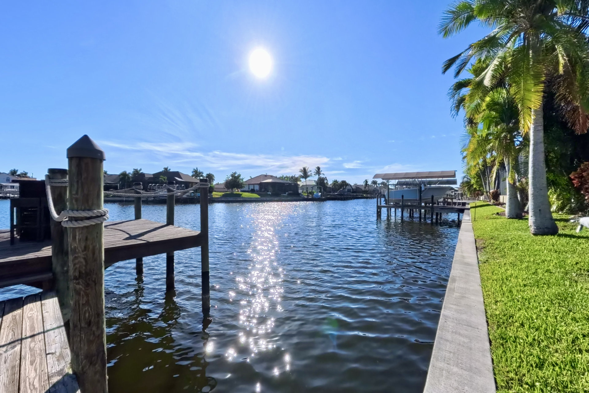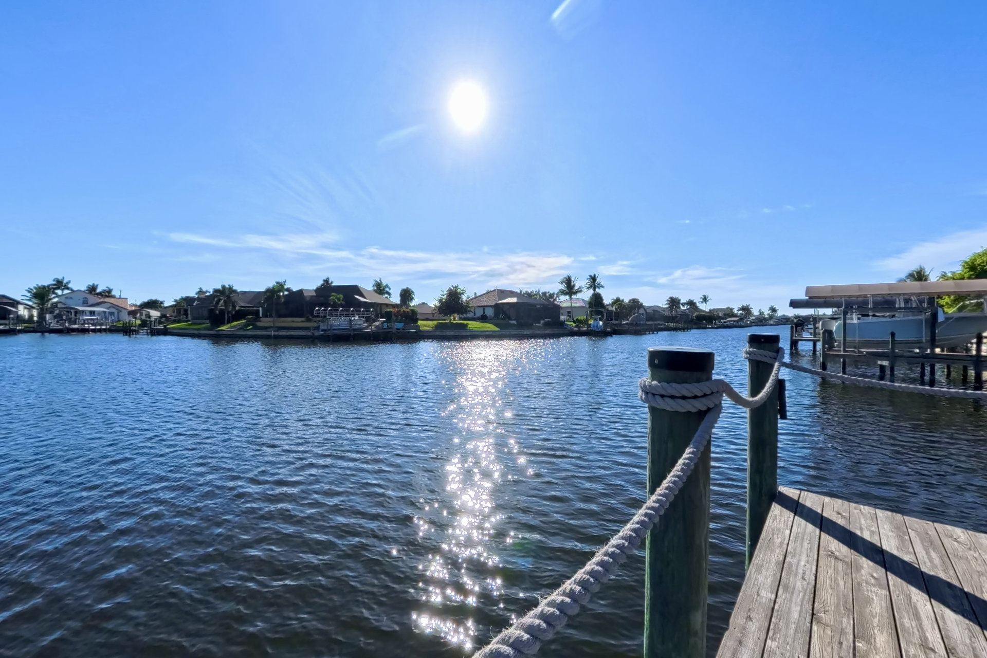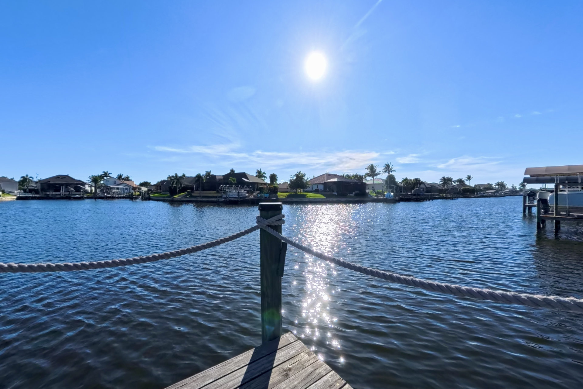 The south-facing location at the beginning of the canal is unique. There is a large water basin directly in front of the boat dock.
