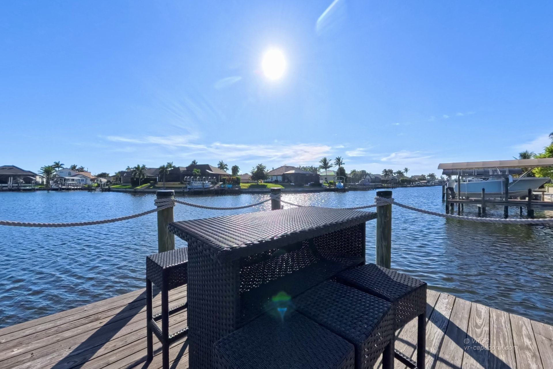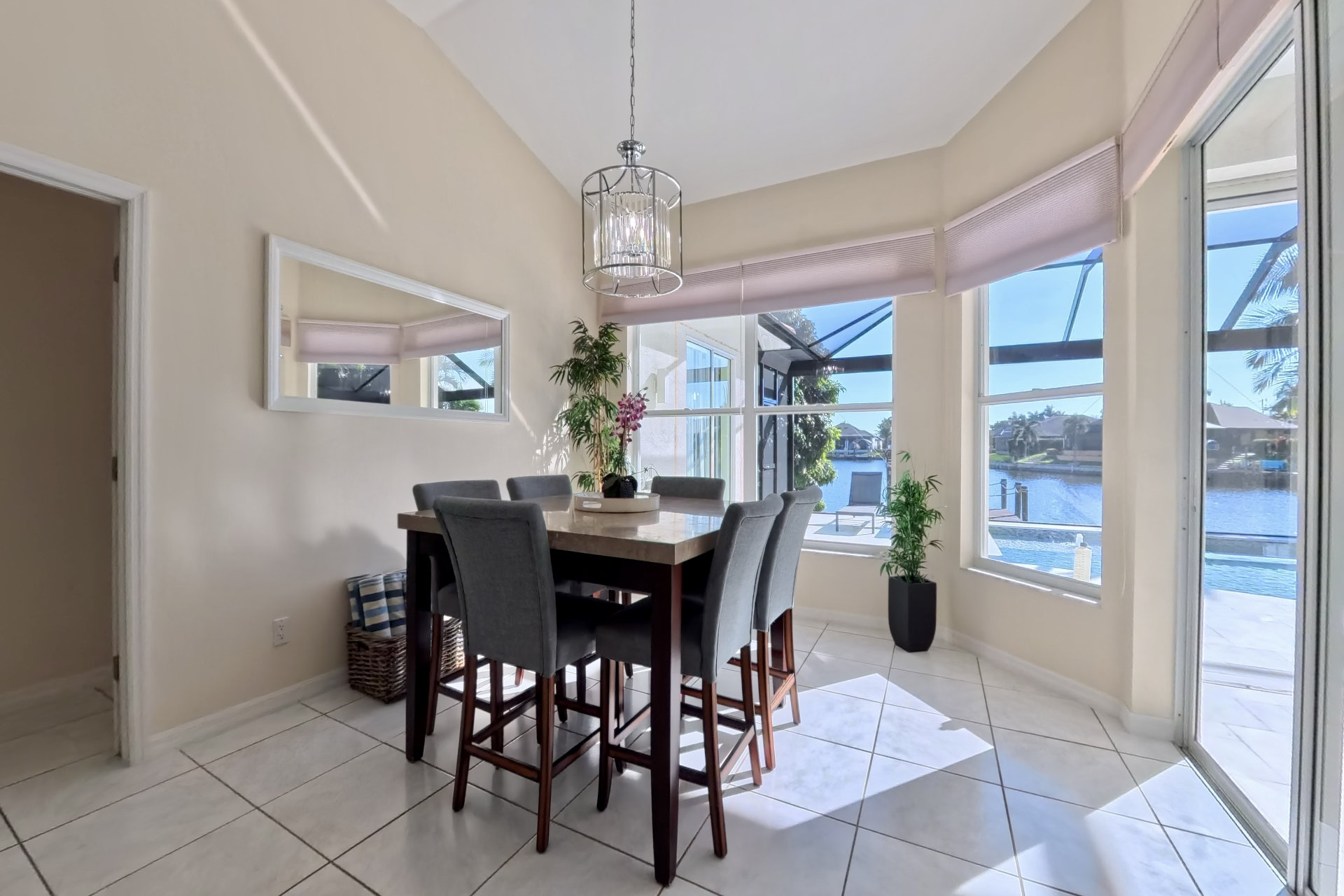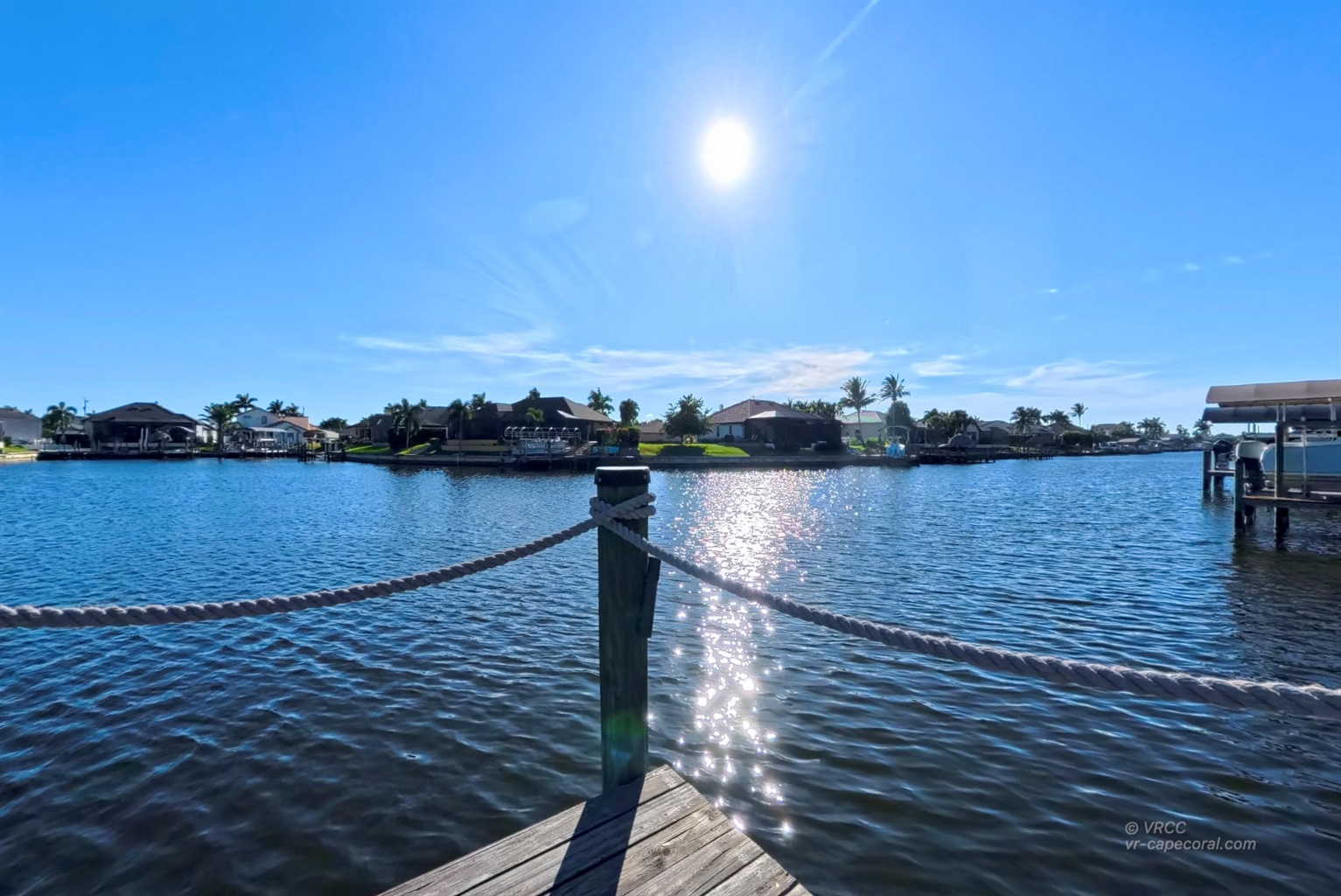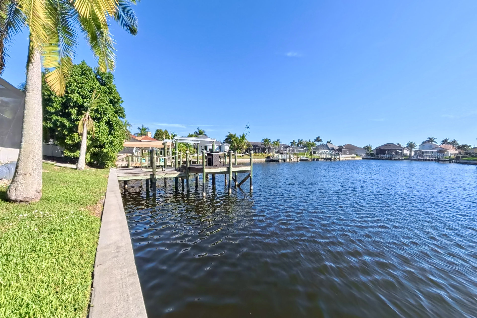 The south-facing location at the beginning of the canal is unique. There is a large water basin directly in front of the boat dock.
