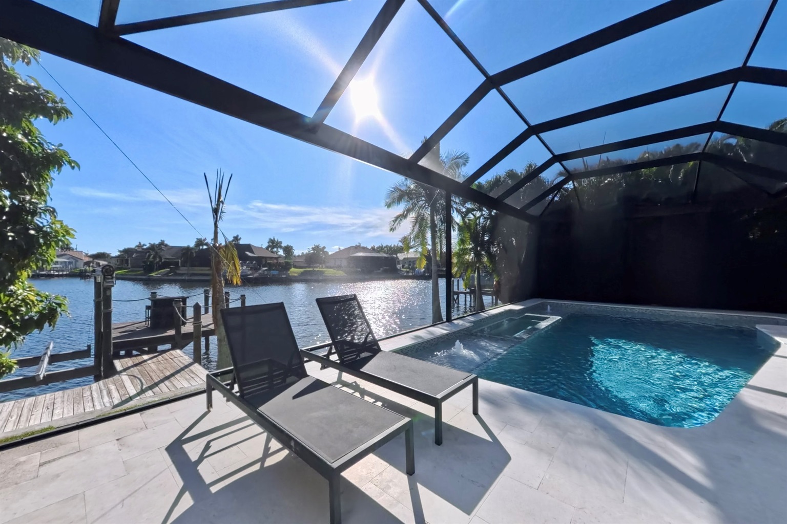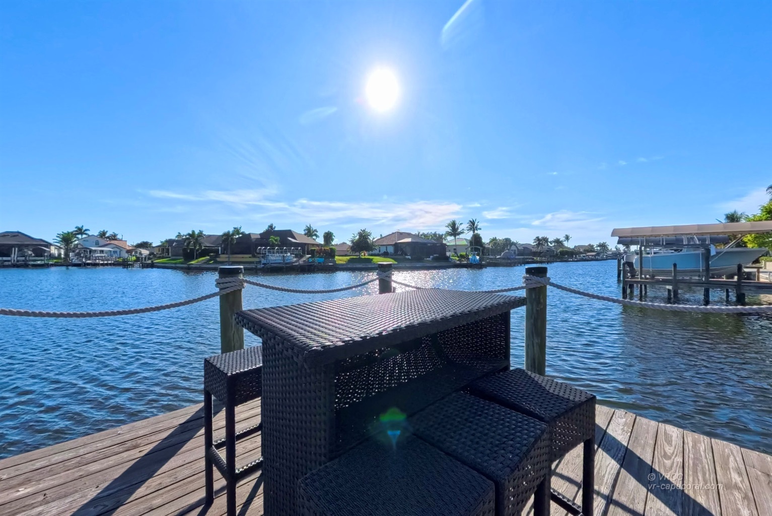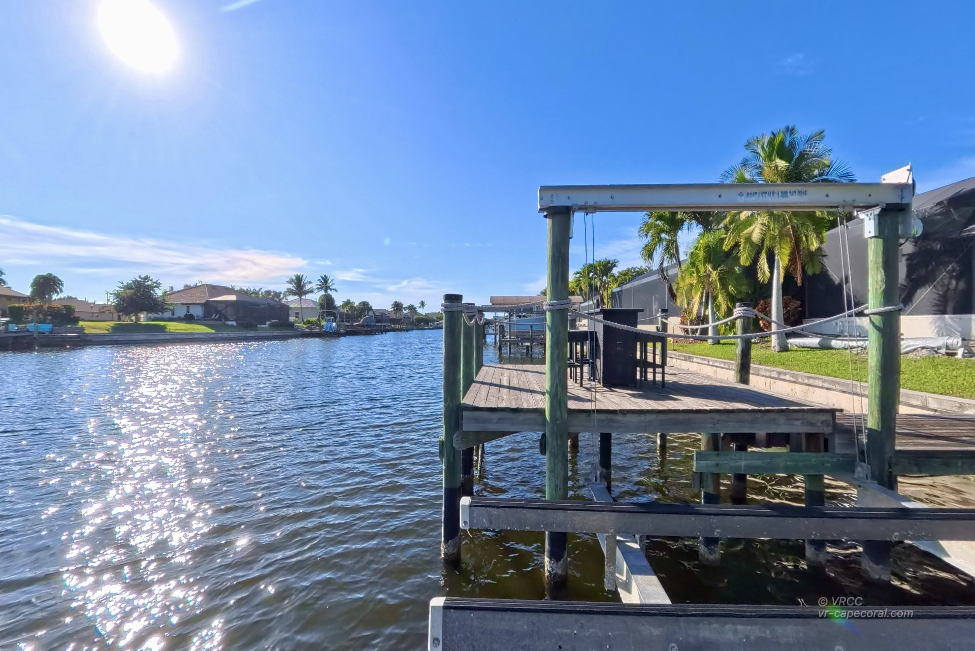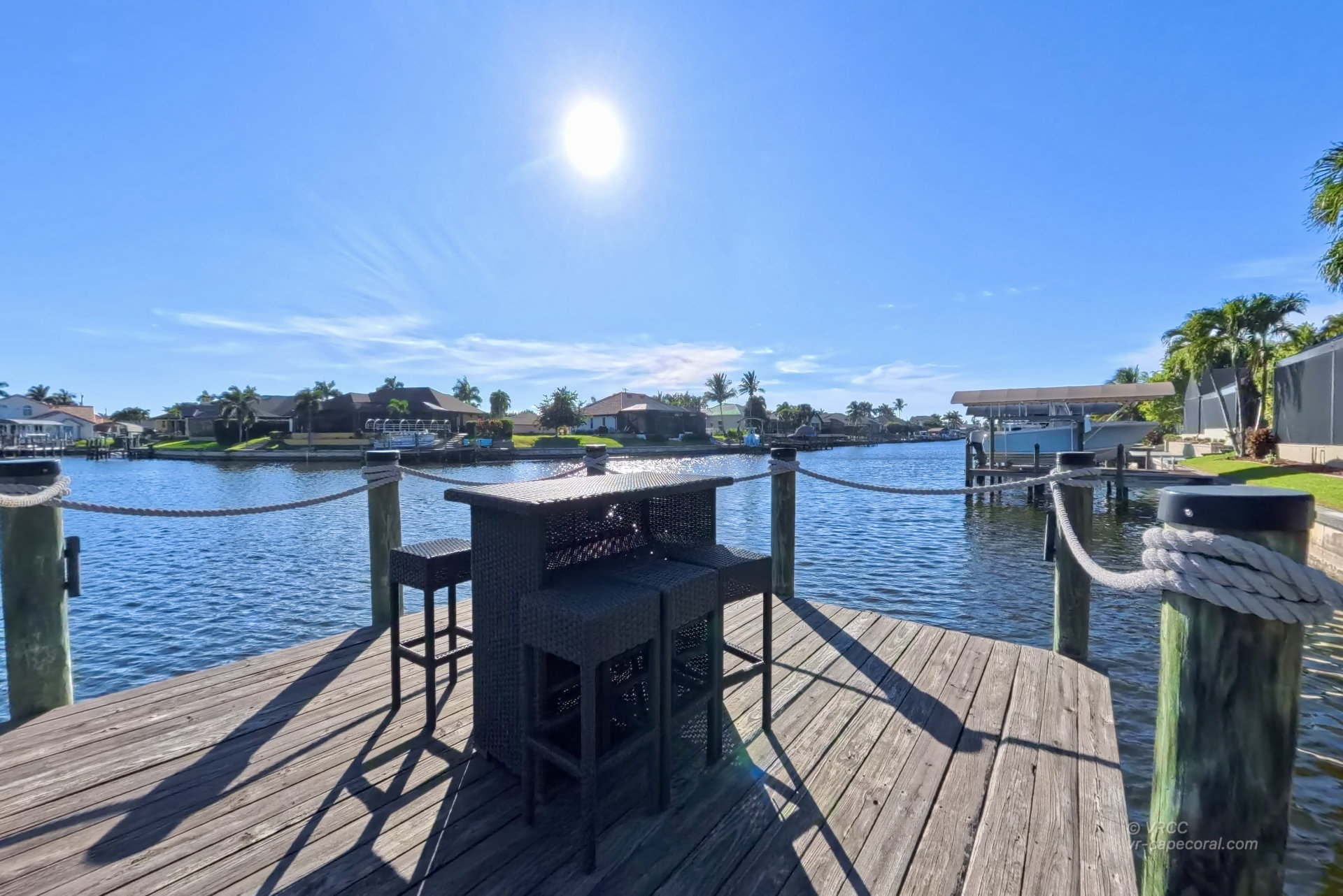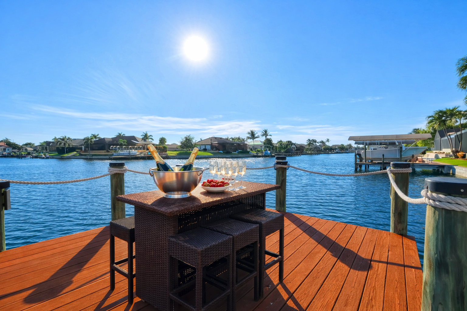 The south-facing location at the beginning of the canal is unique. There is a large water basin directly in front of the boat dock.