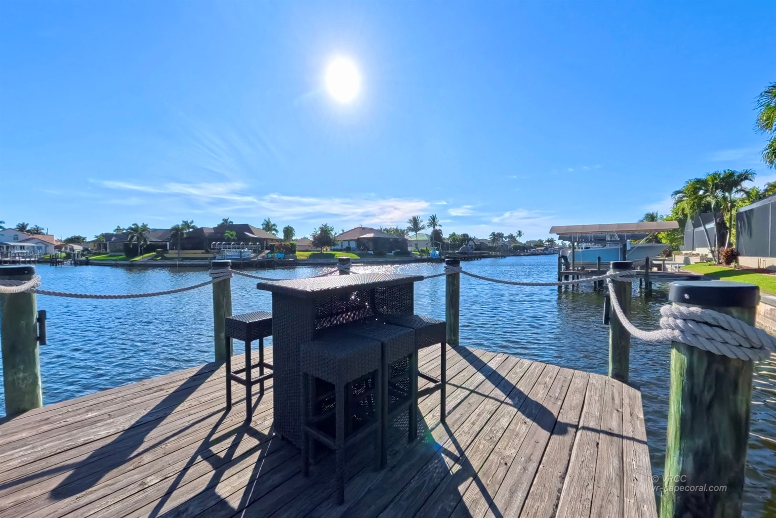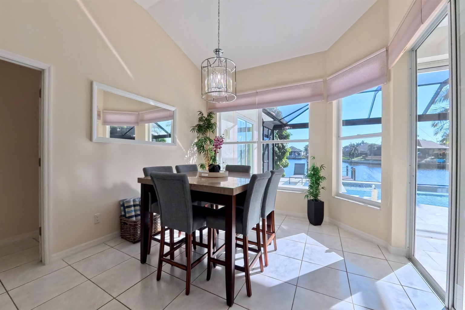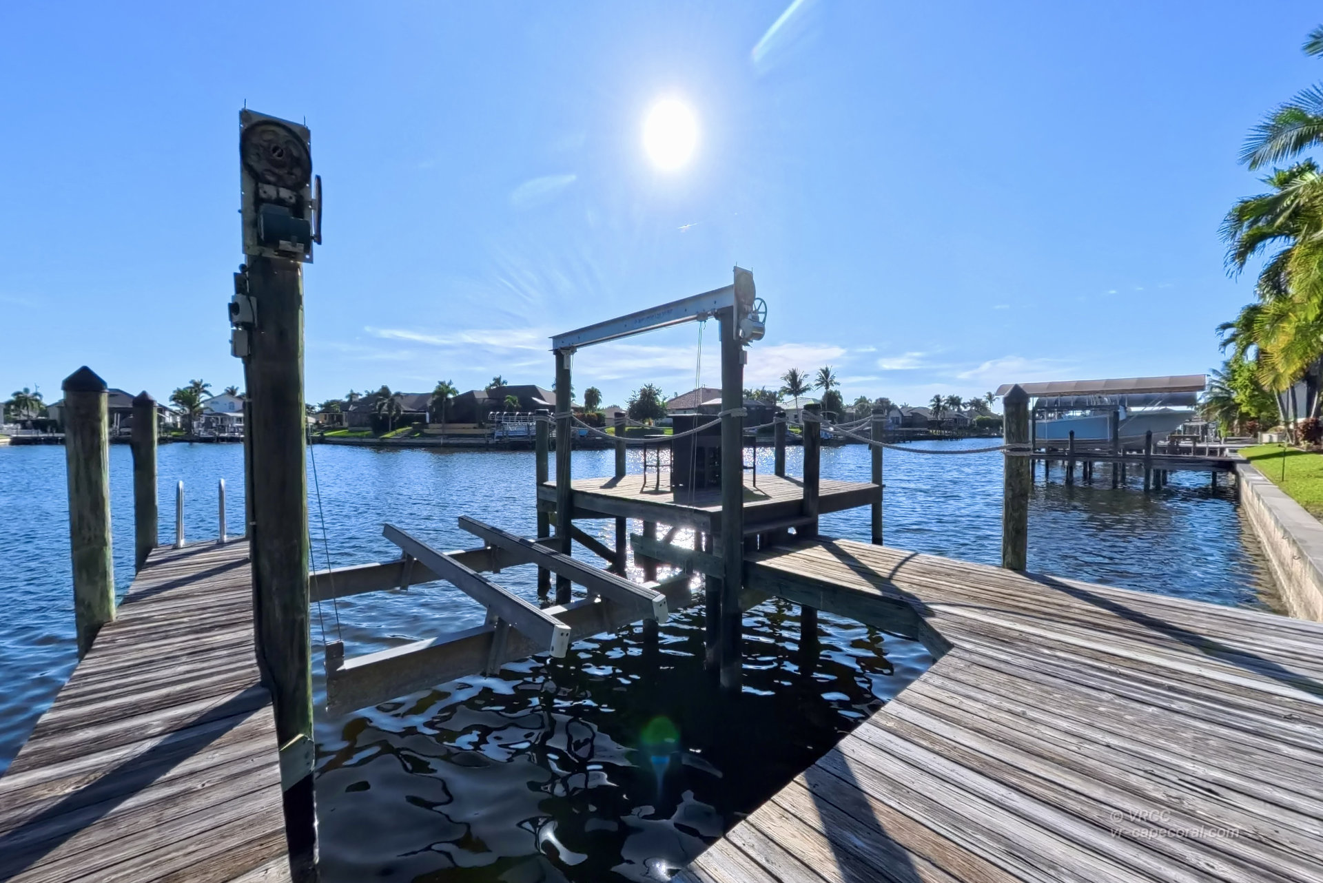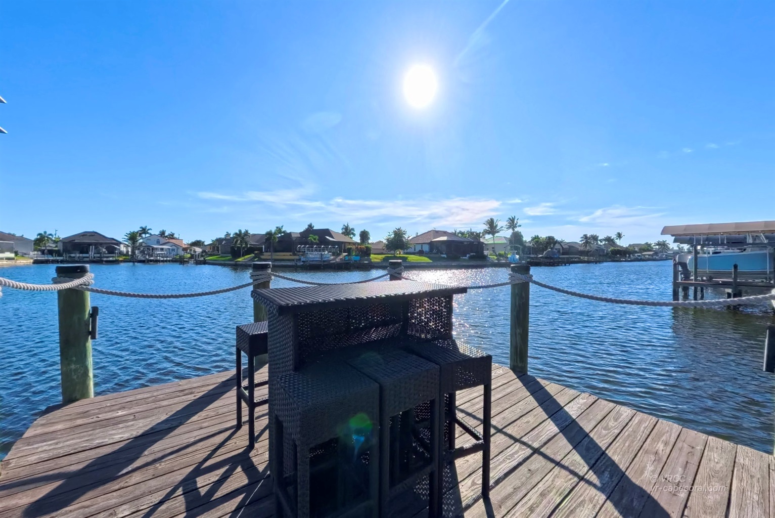 The south-facing location at the beginning of the canal is unique. There is a large water basin directly in front of the boat dock.