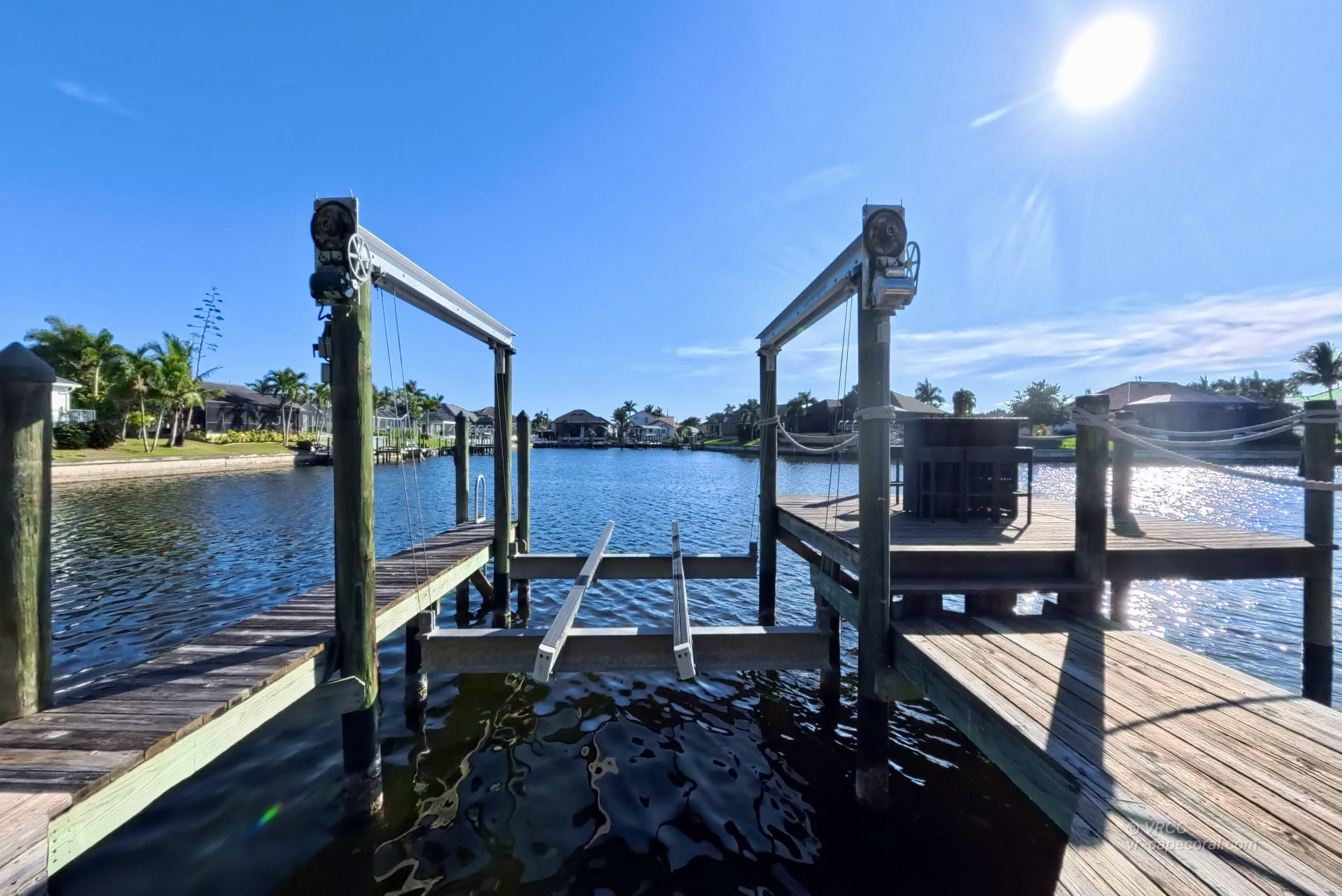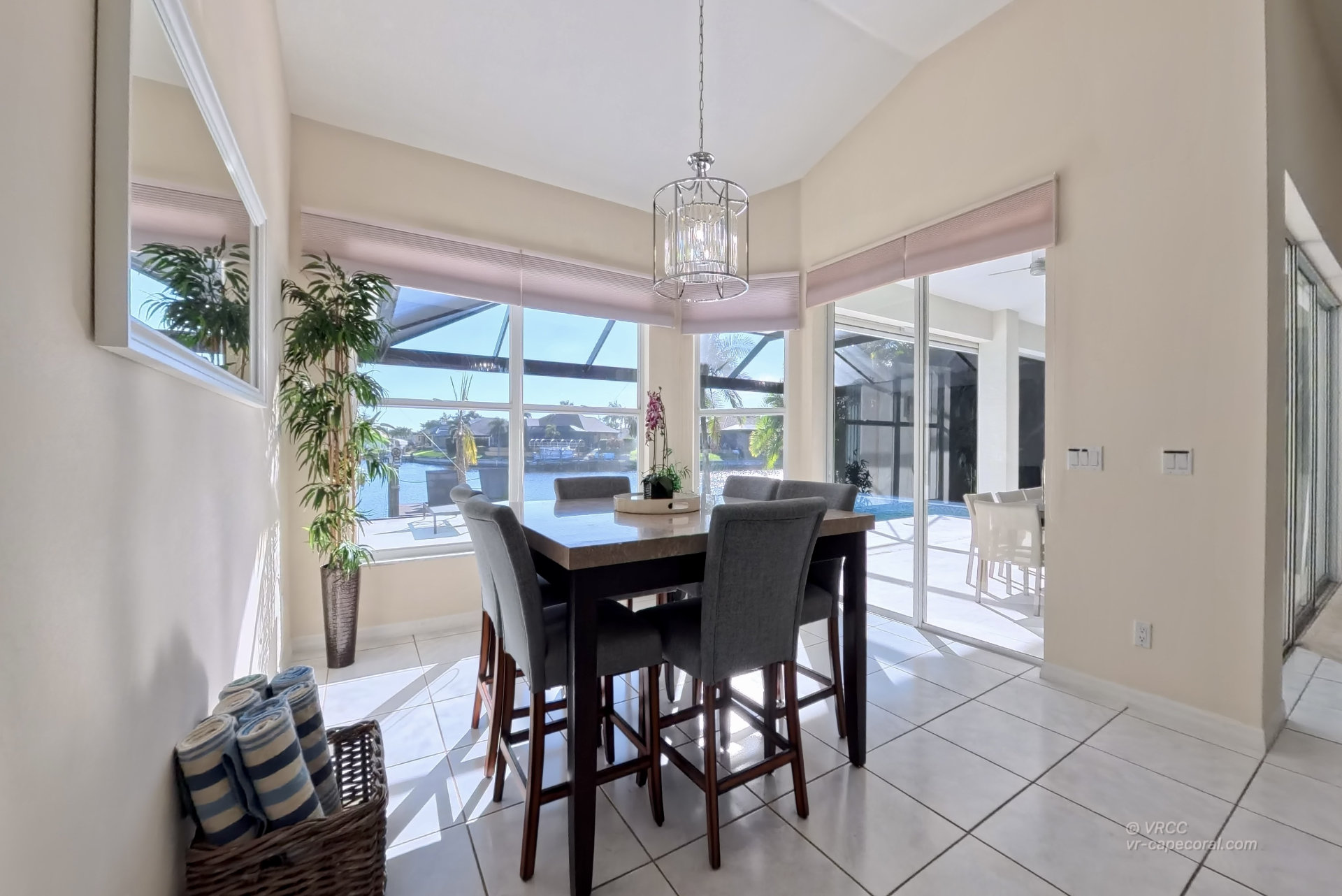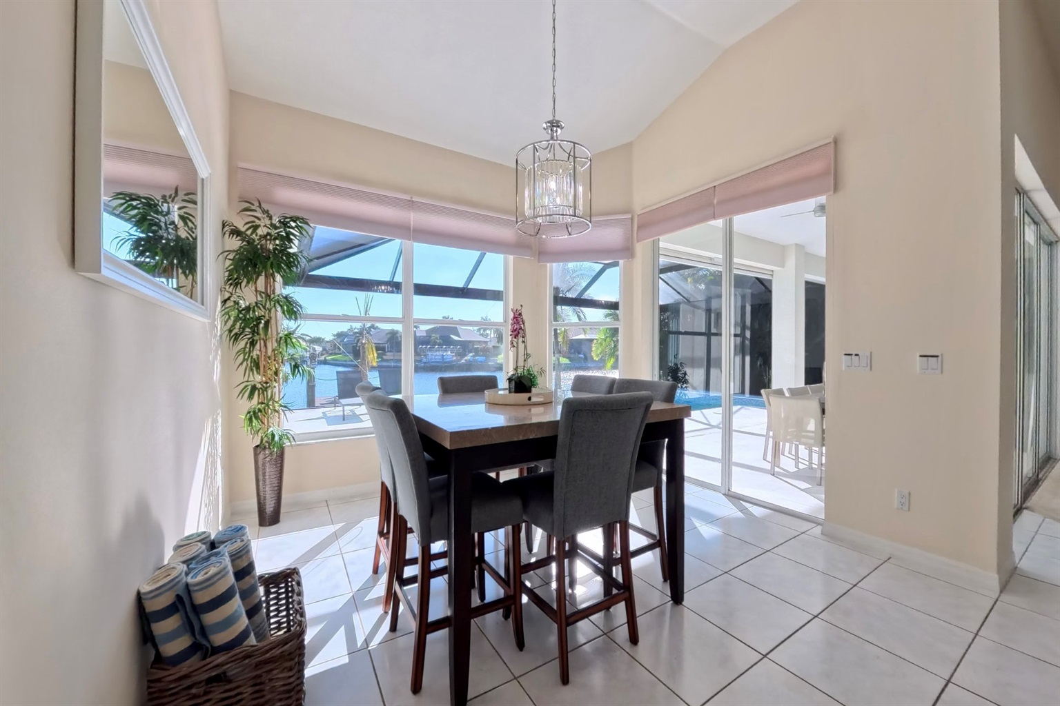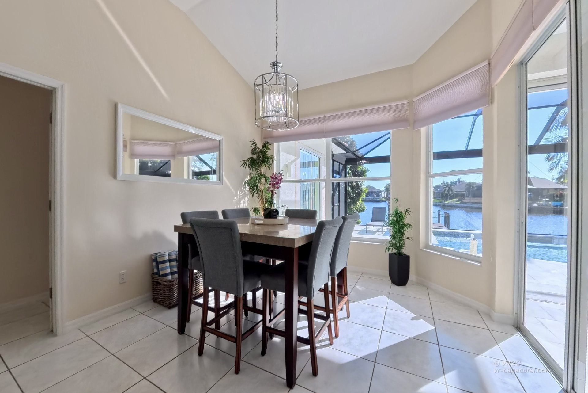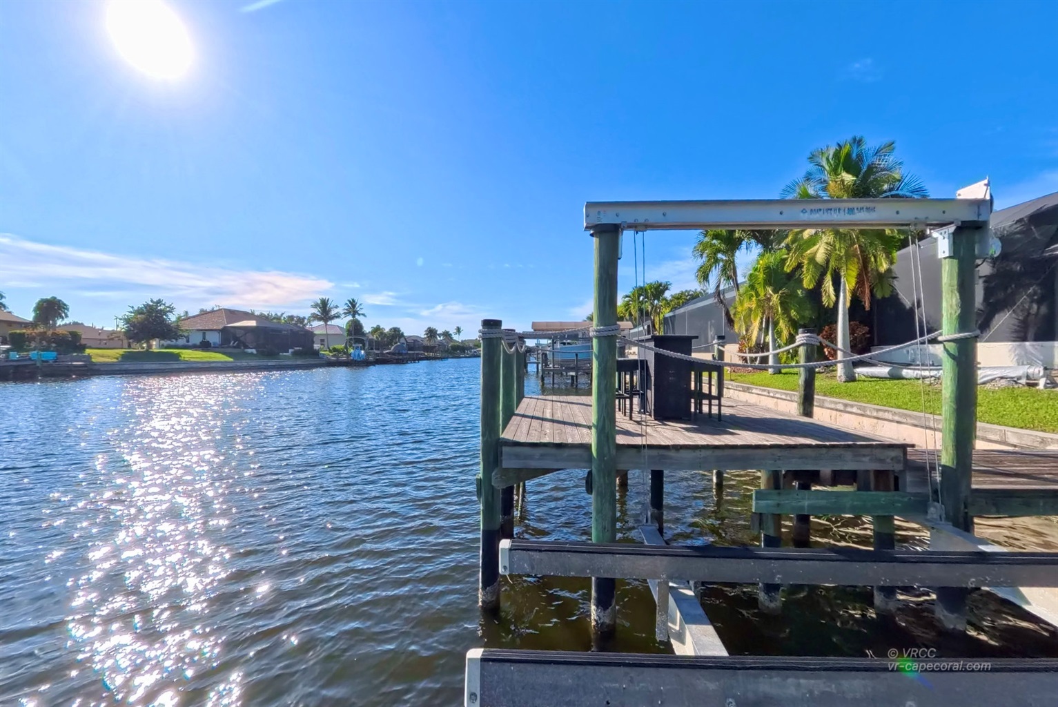 The south-facing location at the beginning of the canal is unique. There is a large water basin directly in front of the boat dock.