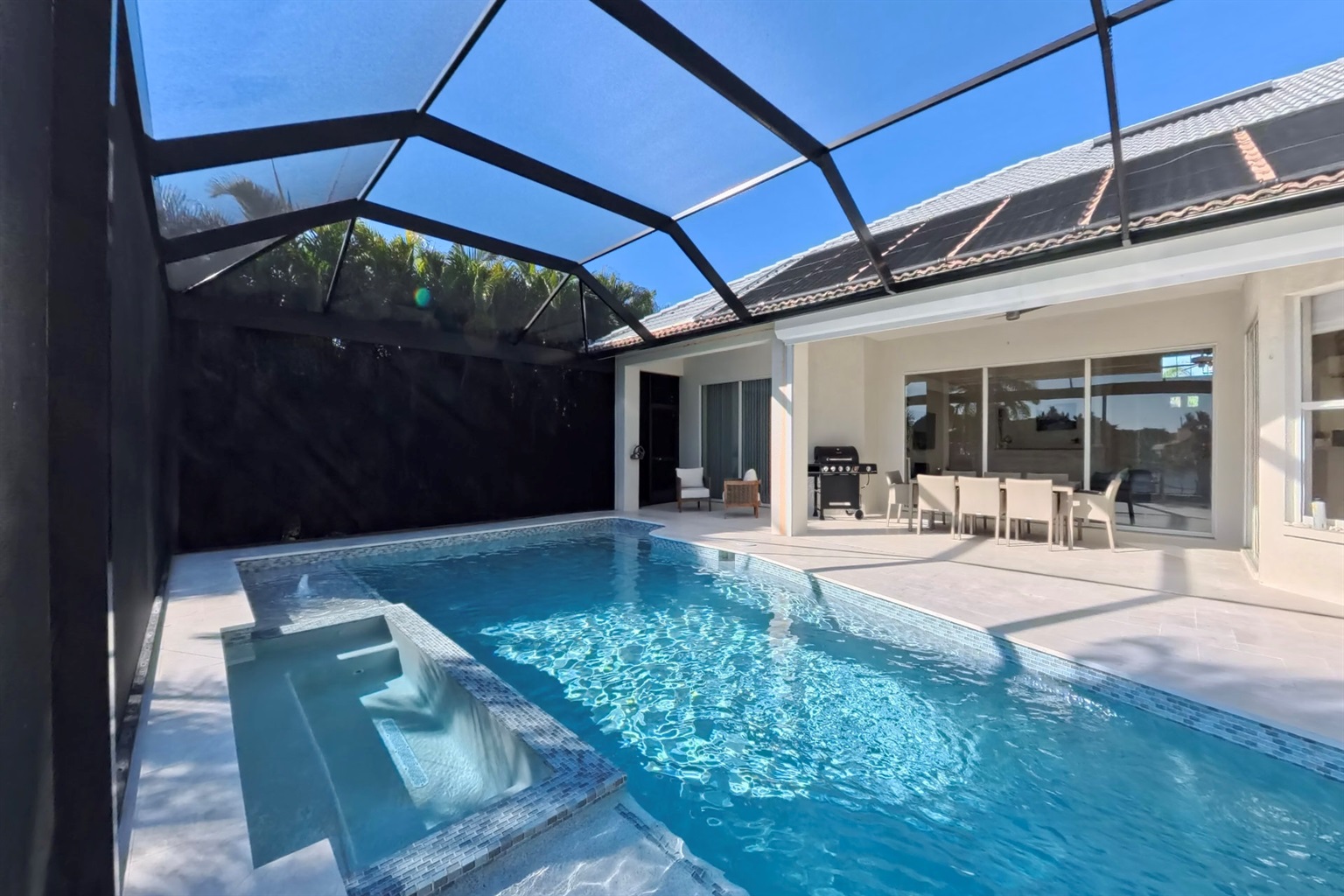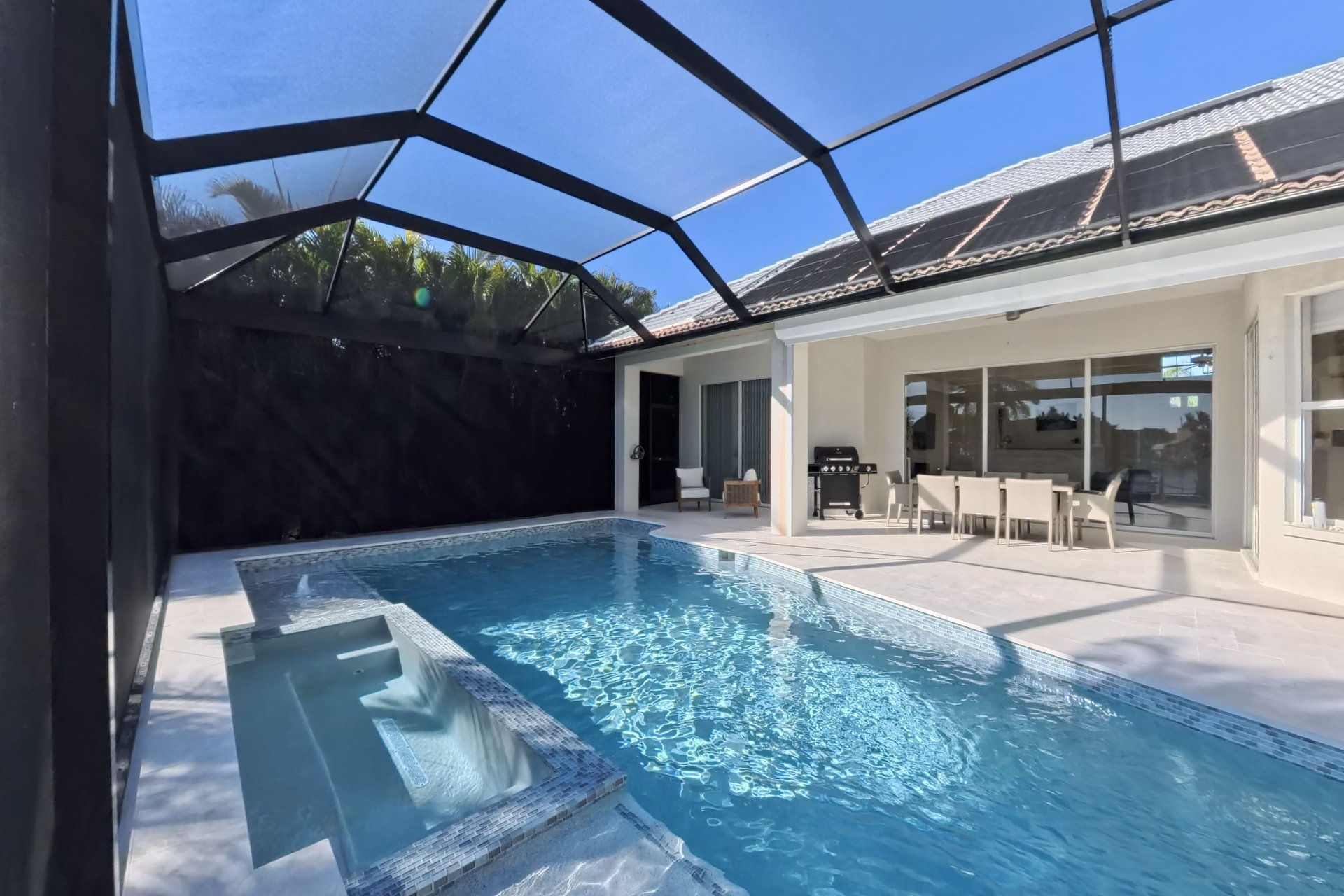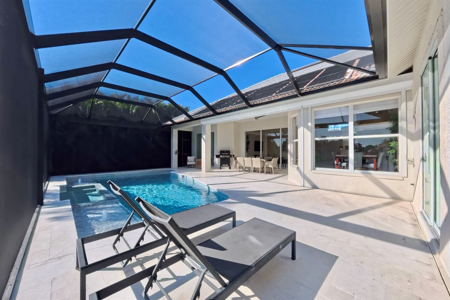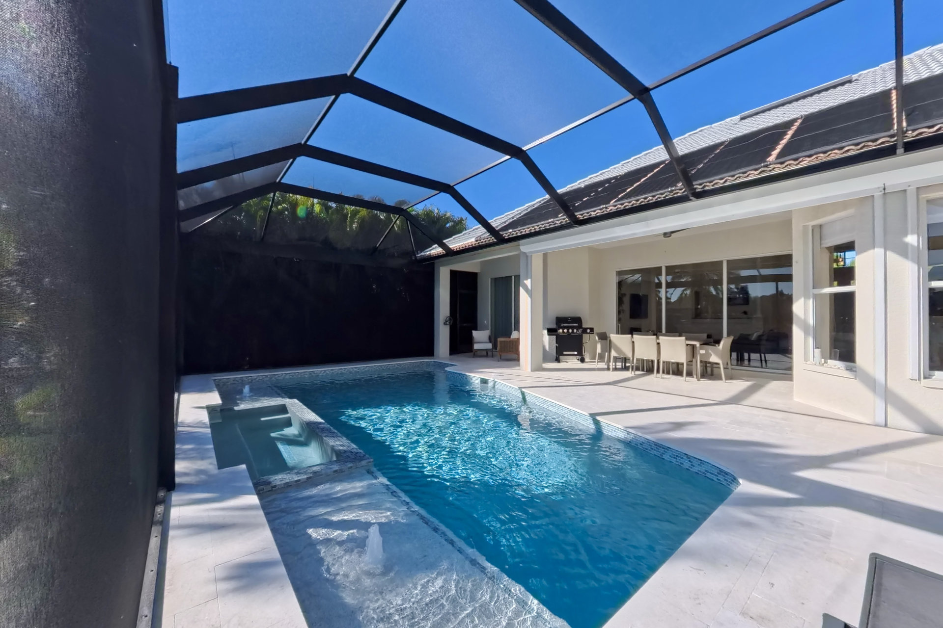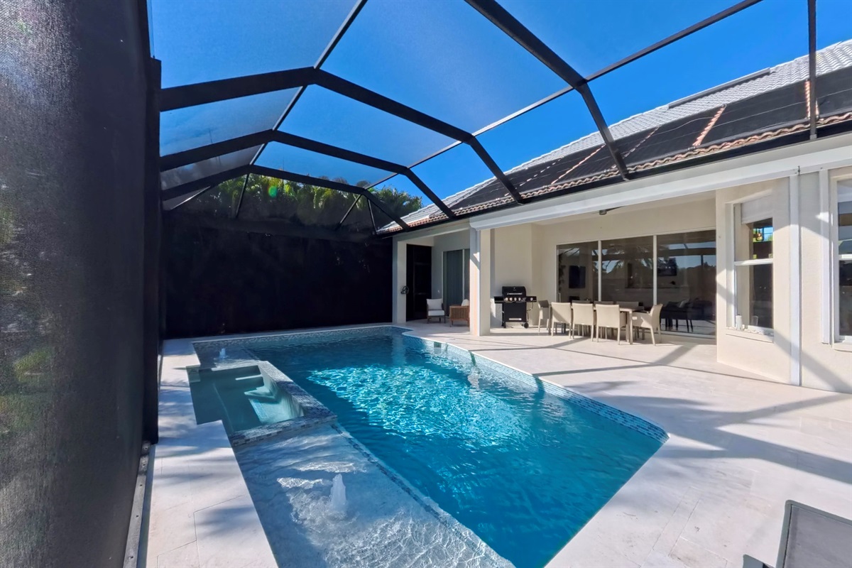 Our villa has all new furniture and appliances. The redesigned pool / outdoor area is the highlight of this house. From the boat dock and pool you can enjoy the fantastic view of the water basin. The heated pool brings the water to a comfortable temperature in every season of the year. The same goes for the whirlpool