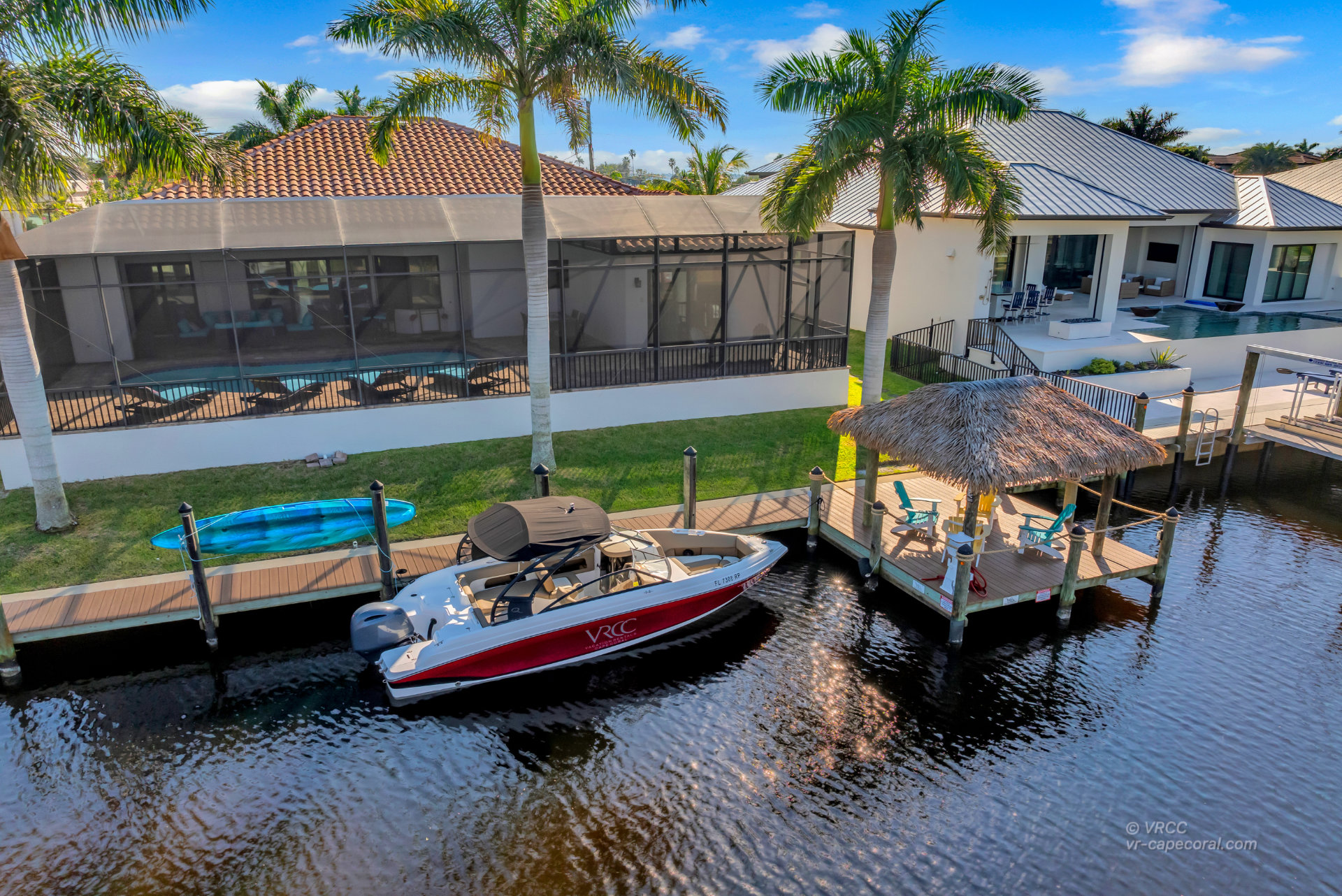 Wake up to the glow of Florida sunshine reflecting off the water, with palm trees swaying just beyond your private pool. Villa Anchors Aweigh is a bright, modern waterfront escape in Cape Coral, designed for relaxing days by the pool, boat trips on the canal, and cozy evenings under the tiki hut.