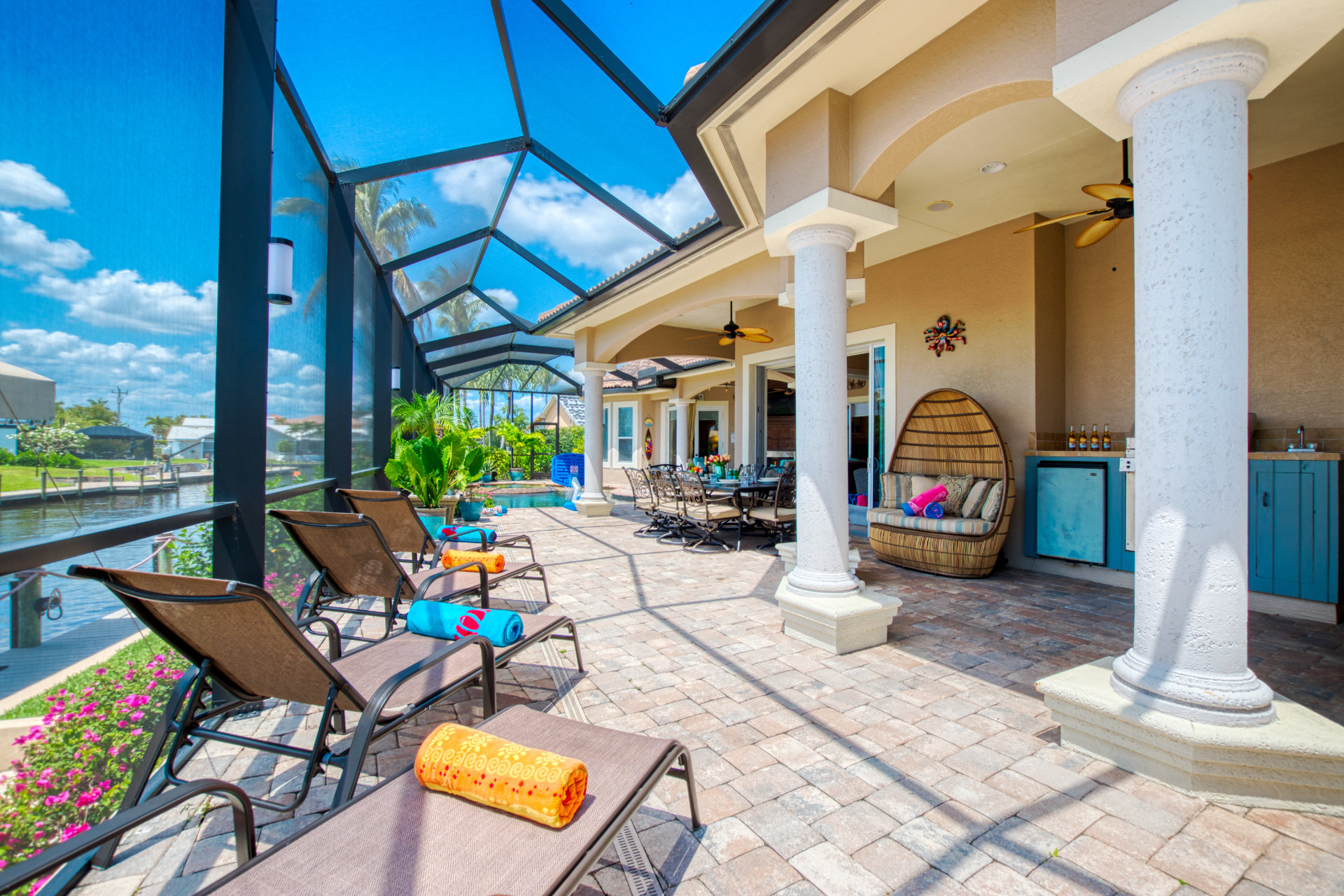 The villa itself is at the end of a street with no noticeable traffic. There is no quieter vacation. The Yachtclub is characterized above all by the many new villas on the river and the lovingly designed gardens. Restaurants and shops can be reached with the in-house bicycles as well as on foot. Cape Coral Beach is just a few minutes' walk away.