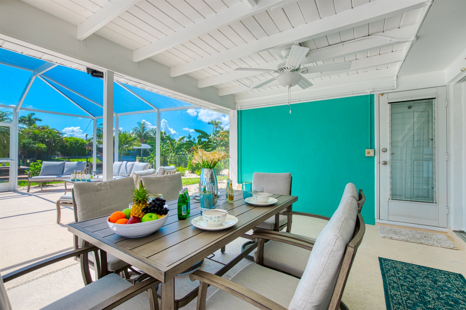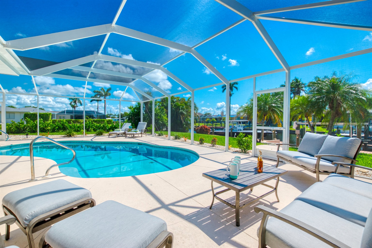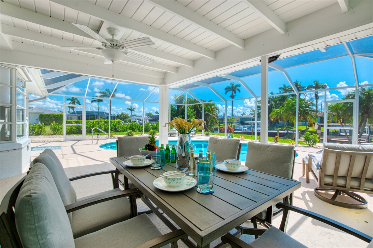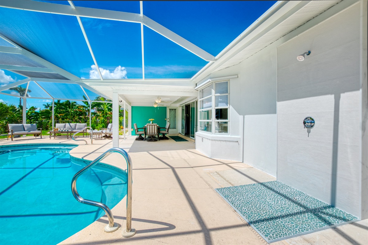 Venture outside to the large lanai, and spend the day by the sparkling pool in your truly private paradise. Here, a dining area is ready for you to enjoy meals or your morning coffee, while separate lounging and conversational areas invite laid-back chats or peaceful naps.