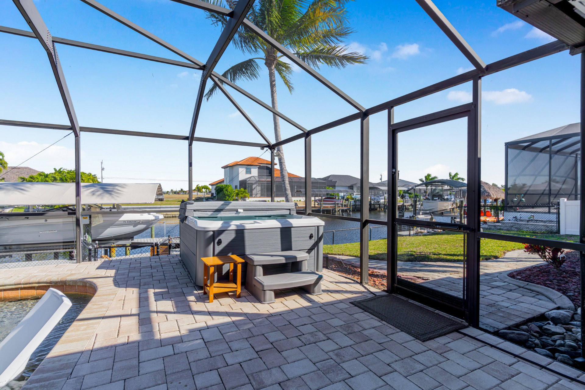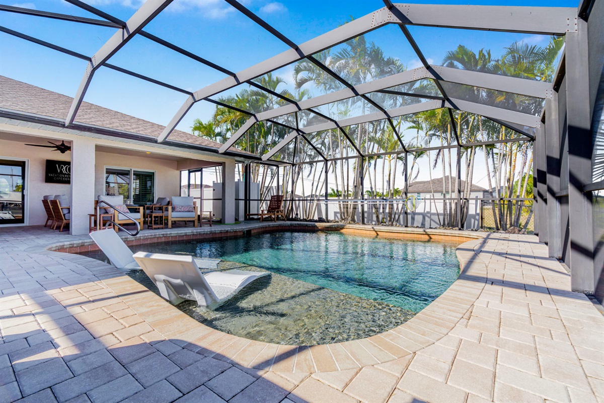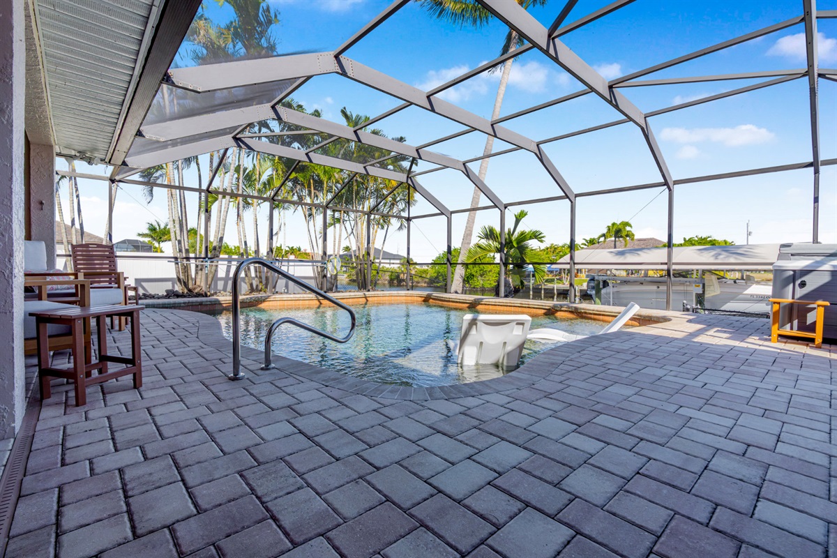 Outside, paradise unfolds. Take a dip in the heated, screened-in pool or relax in the soothing hot tub while the kids splash nearby.