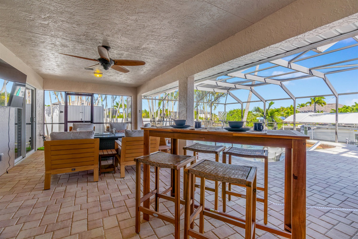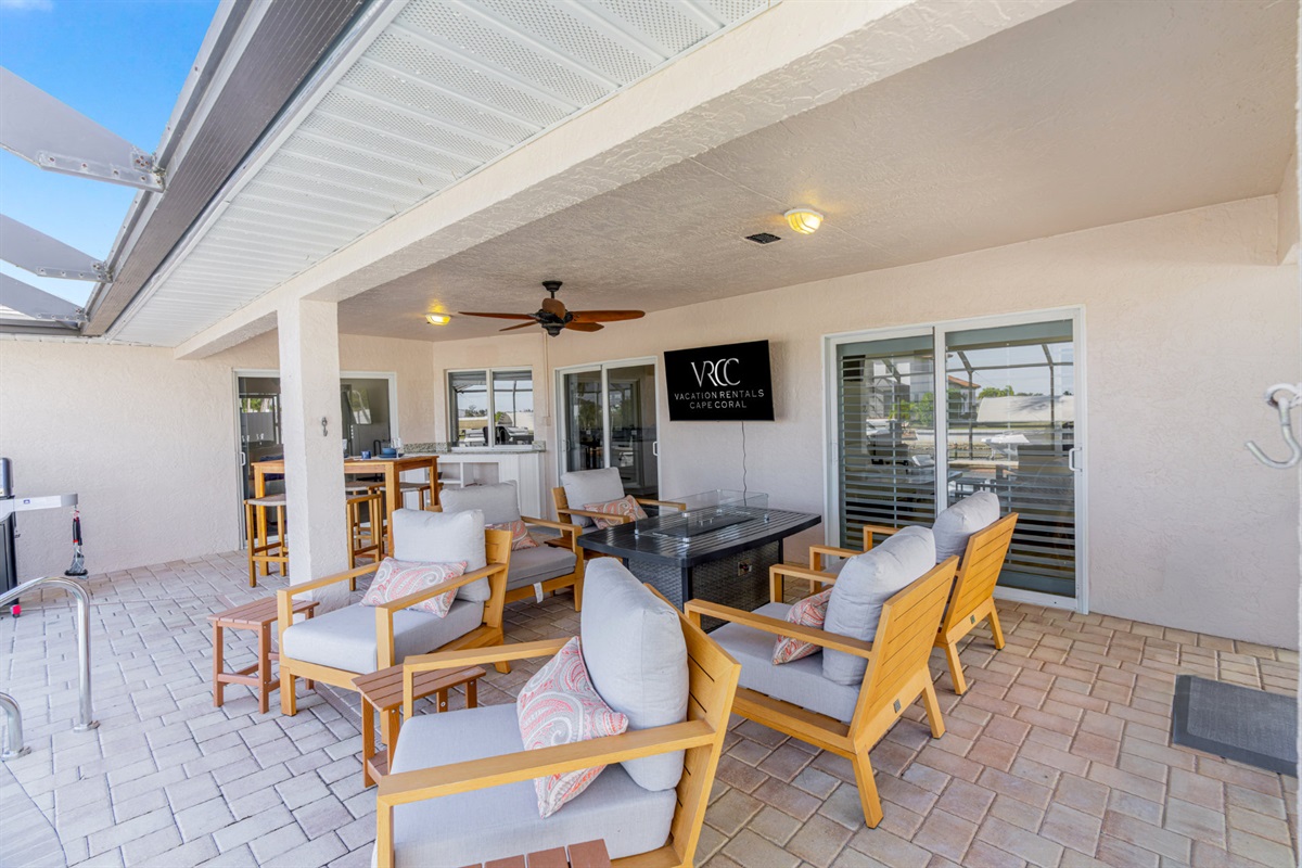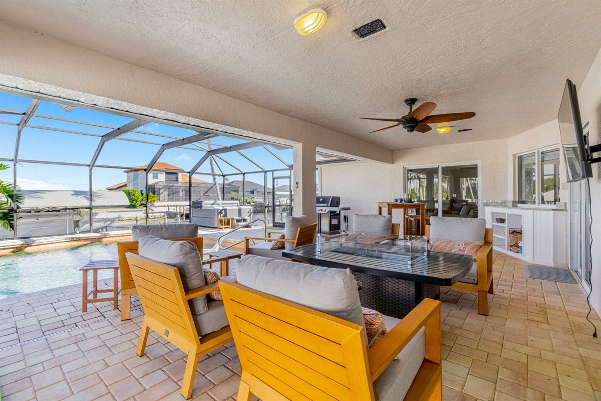 An outdoor shower, fire table, bar & grill, and inviting seating area make this space perfect for sunny afternoons or sunset dinners under the lanai. Six TVs mean plenty of entertainment when you need a quiet night in.