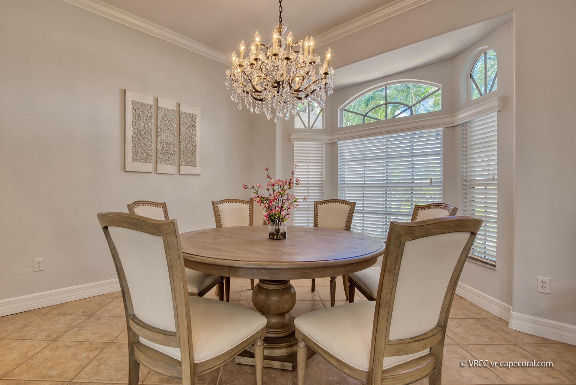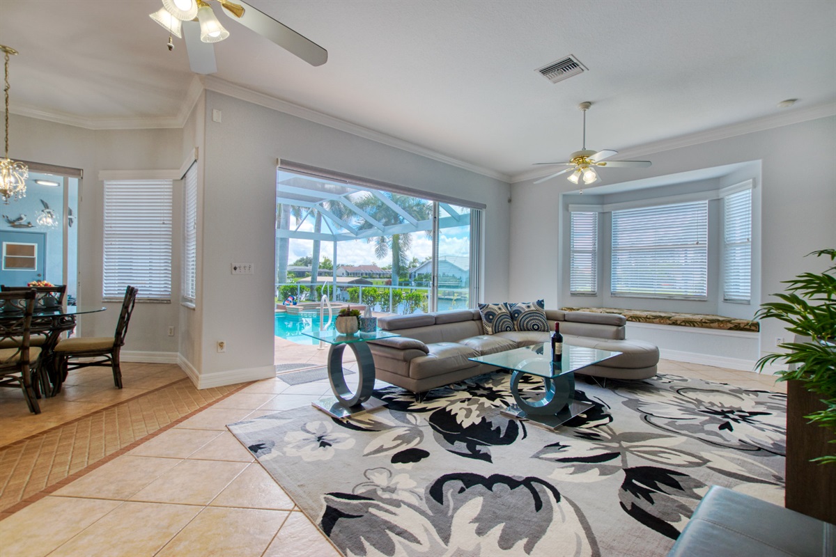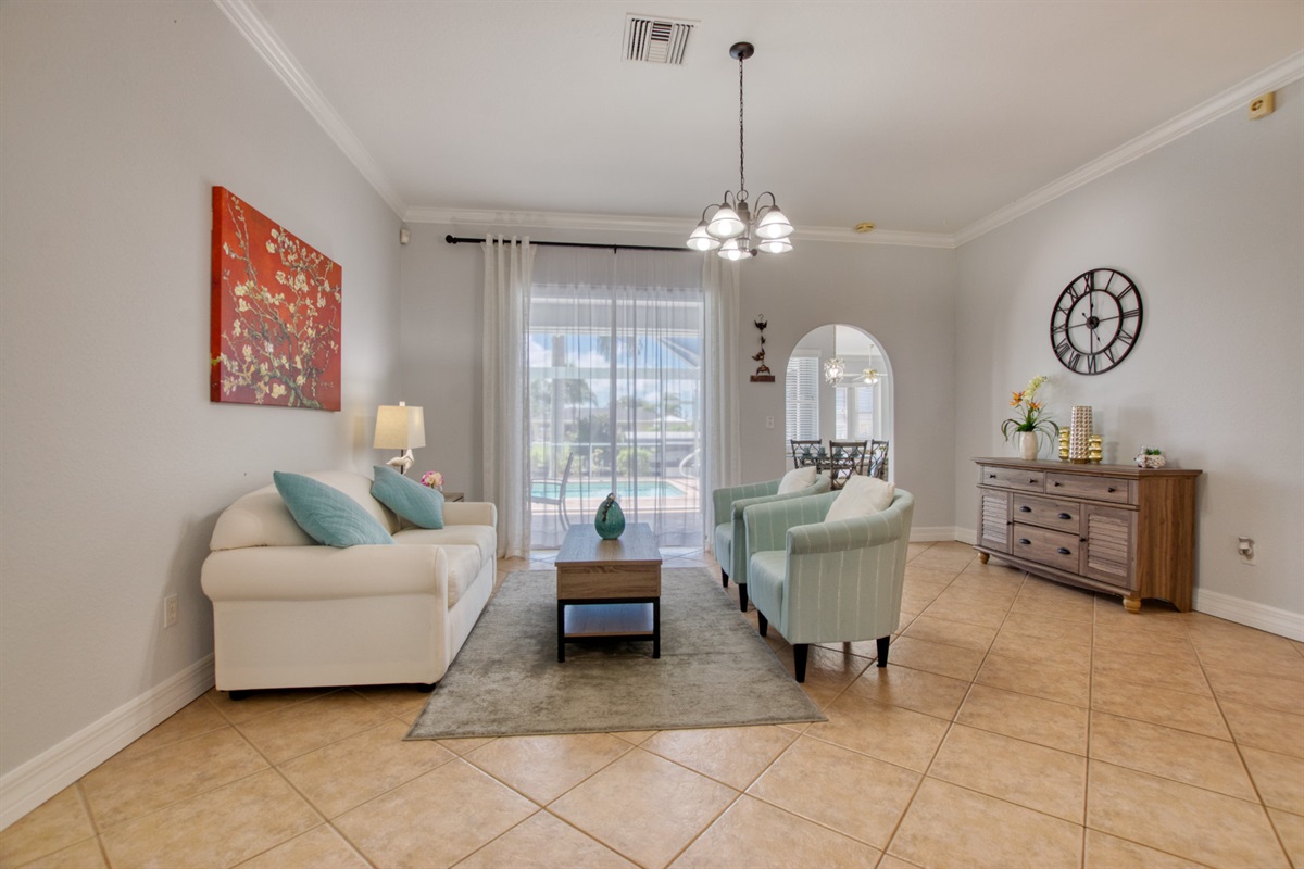 From this first class Villa, you will have quick boat access to the Caloosahatchee River leading out to the Gulf of Mexico and its many beautiful islands. This recently renovated and sophisticatedly furnished home is pleasantly color-matched throughout. A strong and harmonious fen Shui earth element is present in this home creating stability, nourishment, and calmness. The occasional blue color represents the water element bringing a refreshing energy of calm, ease, purity, and freshness into the home.