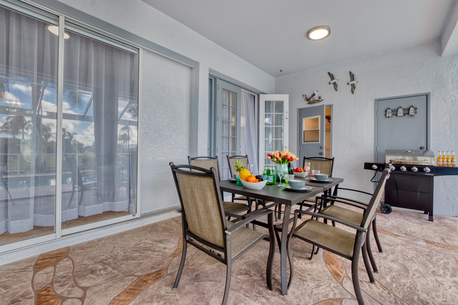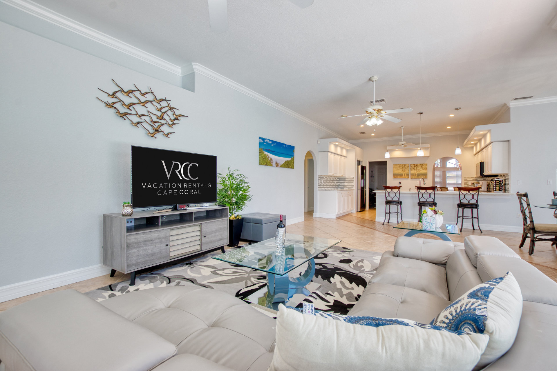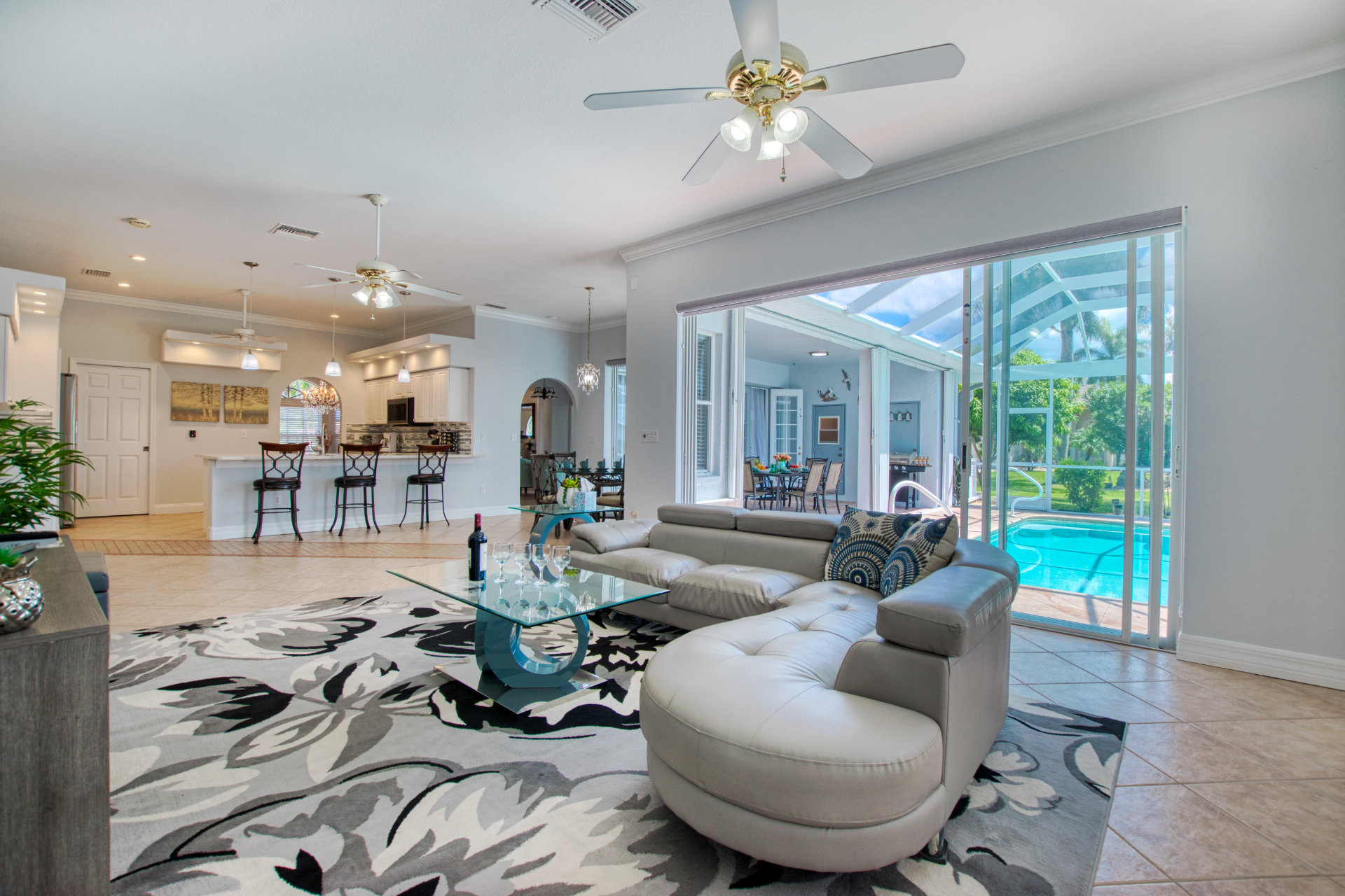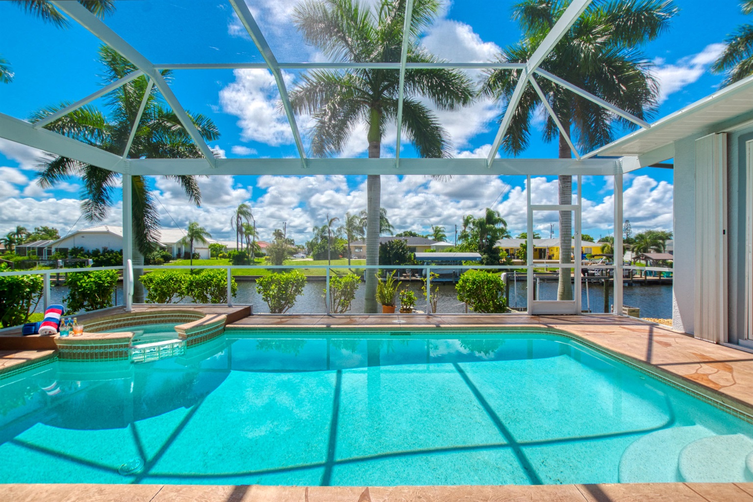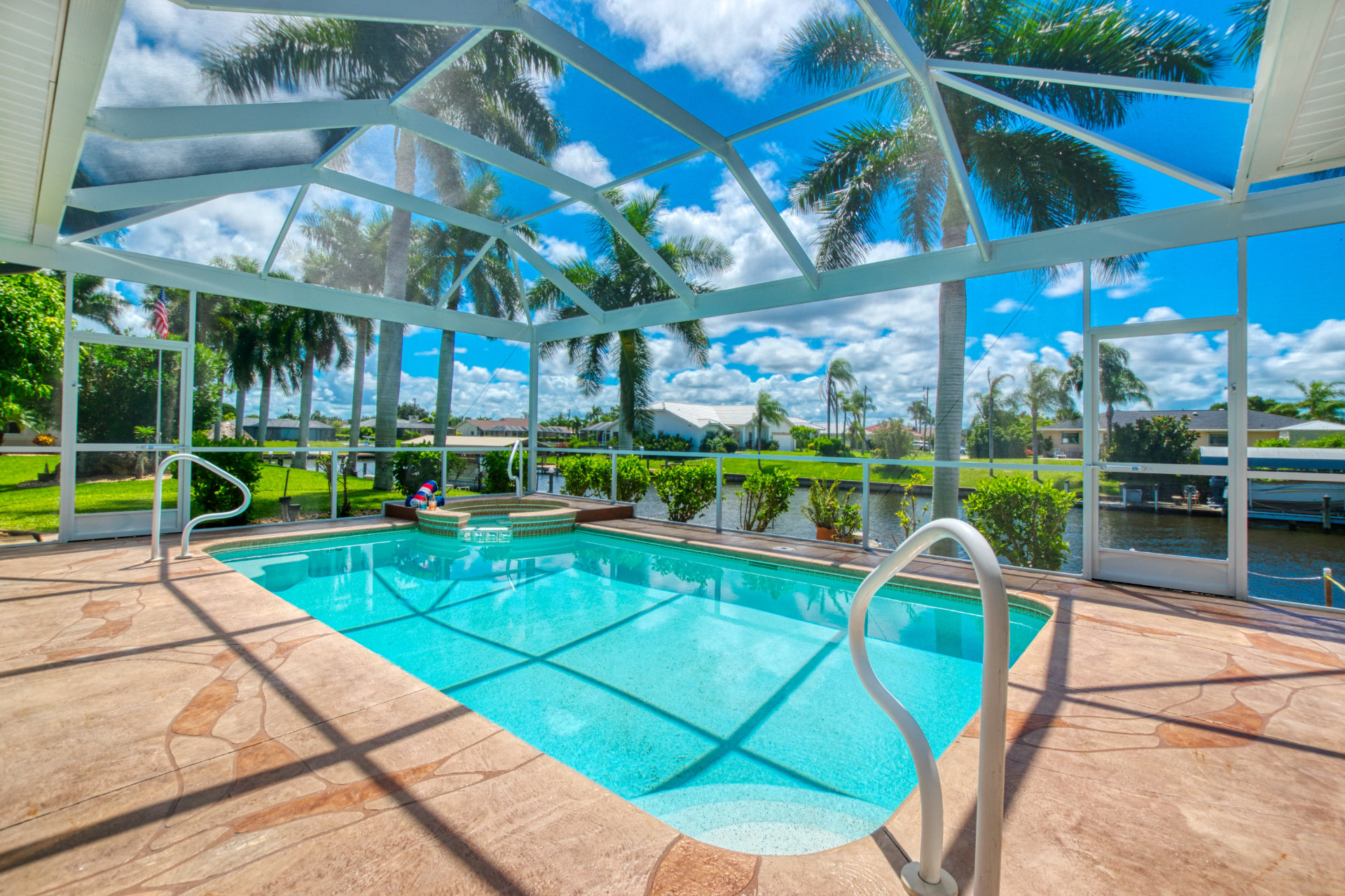 4 Bedrooms • 3 Bathrooms (2 full, 1 half) 3 Baths (2 full, 1 half) • Sleeps 5-8Villa Coral Cabana is a peaceful, beautifully furnished home at the end of a quiet street in the center of SE Cape Coral. Its lanai with heated pool and spa has a spectacular Southern exposure for you to enjoy the Florida sun from smooth sunrises to spectacular sunsets. The setting is ideal for boaters, anglers, and sunshine lovers.