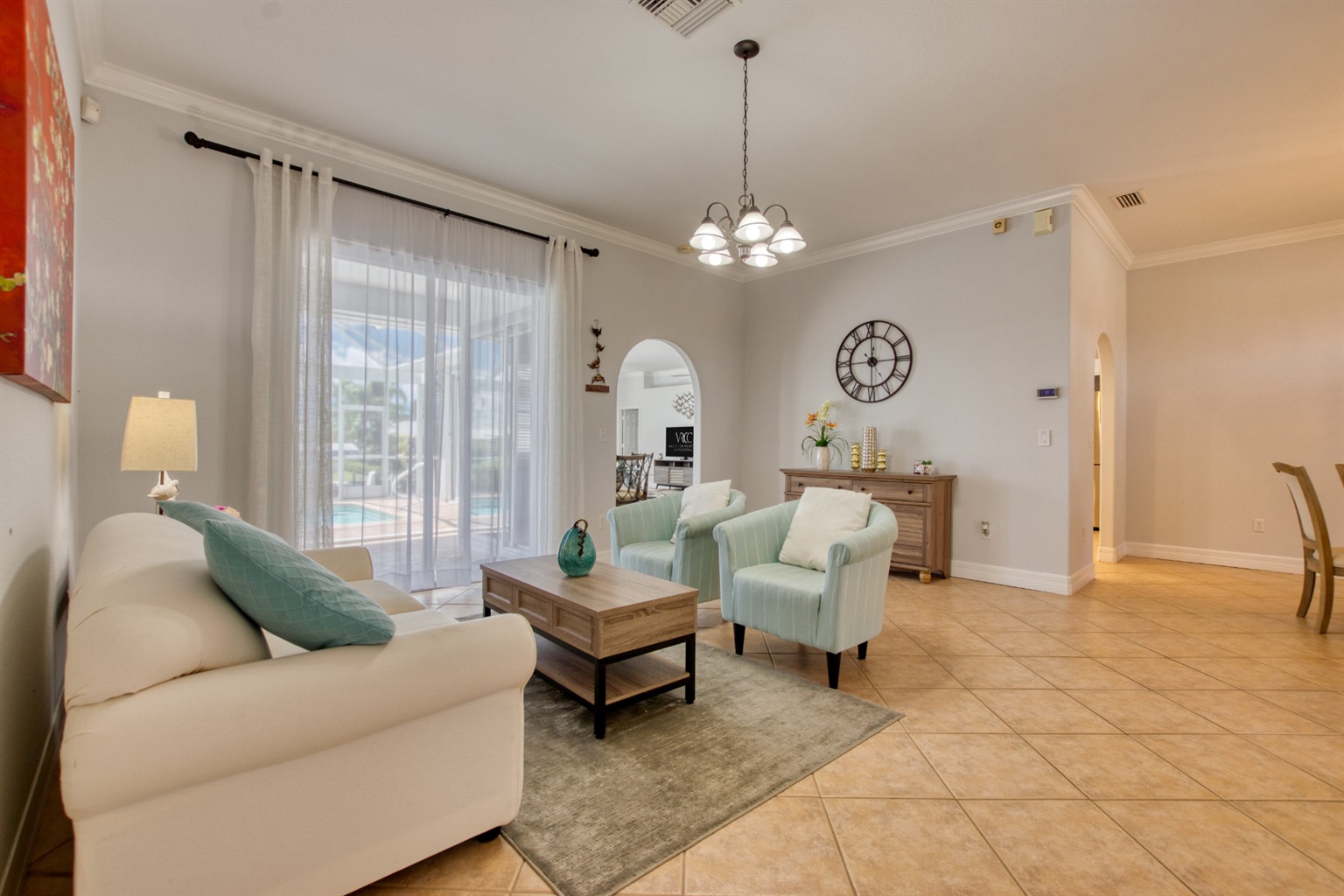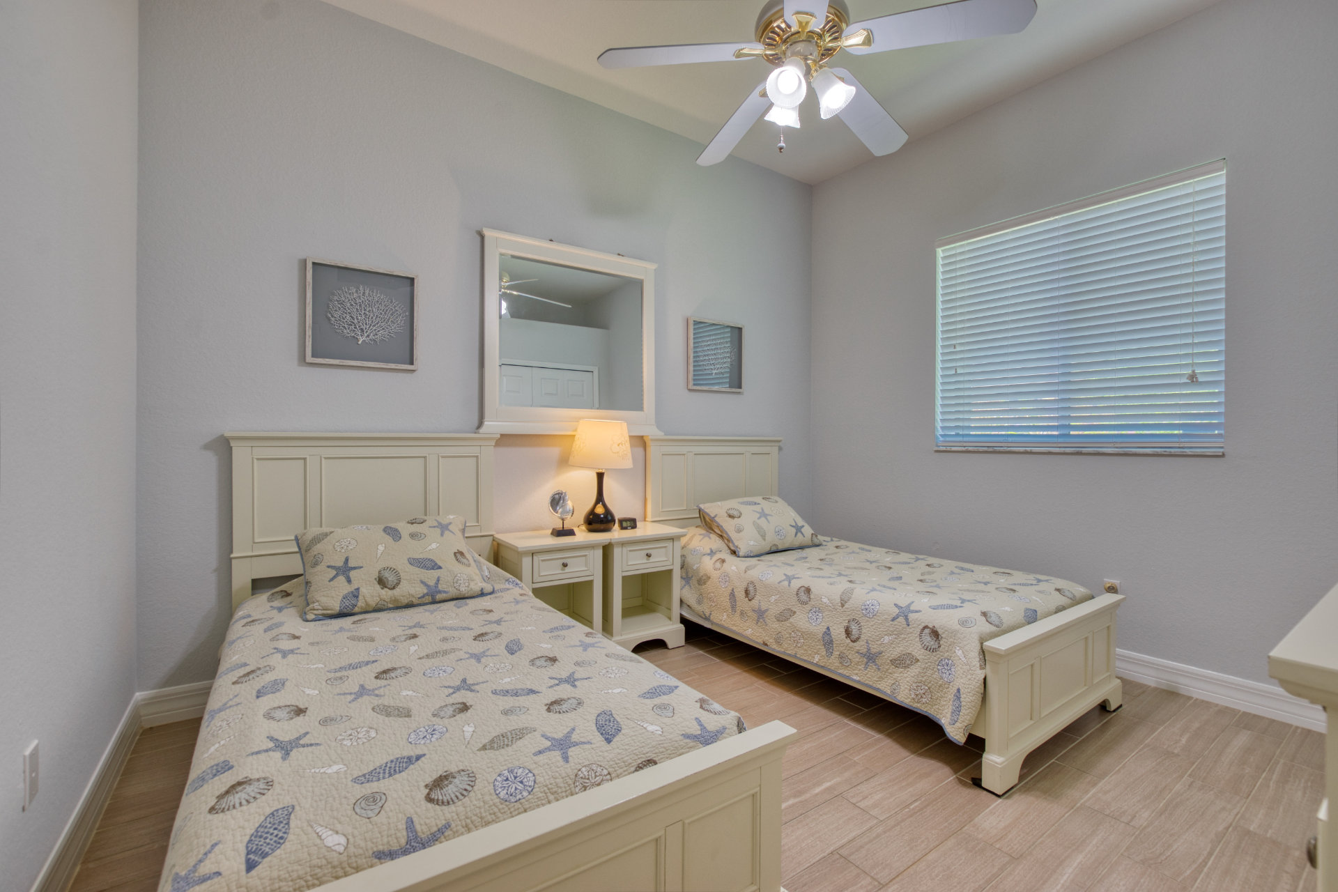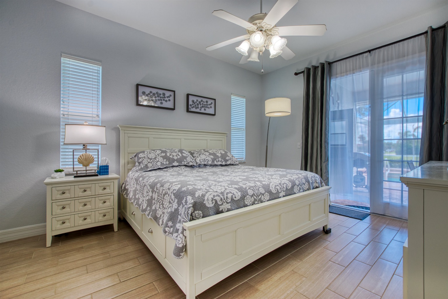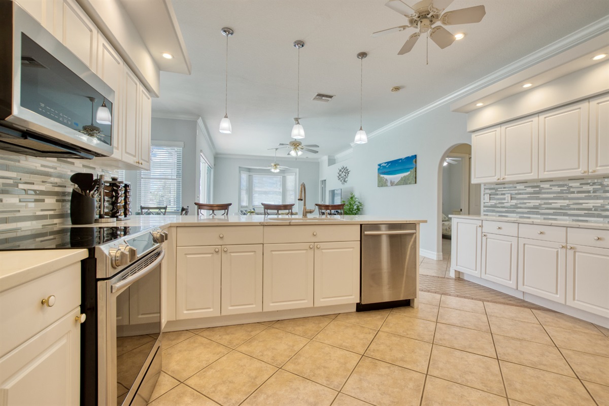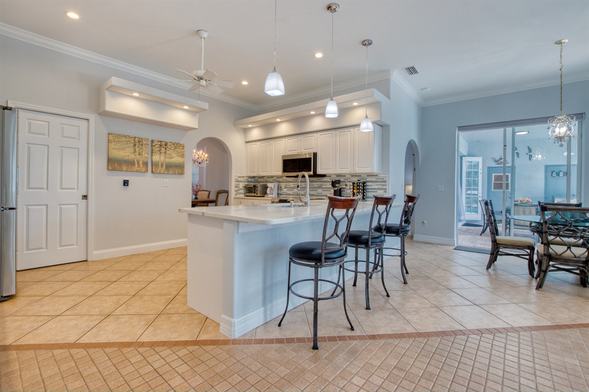 Villa Coral Cabana has four bedrooms with new furniture and comfortable mattresses and is perfect for a large family or group of friends. There are 2.5 bathrooms, a bright and fully stocked kitchen with modern appliances, a breakfast bar, and a nook with a lanai view.