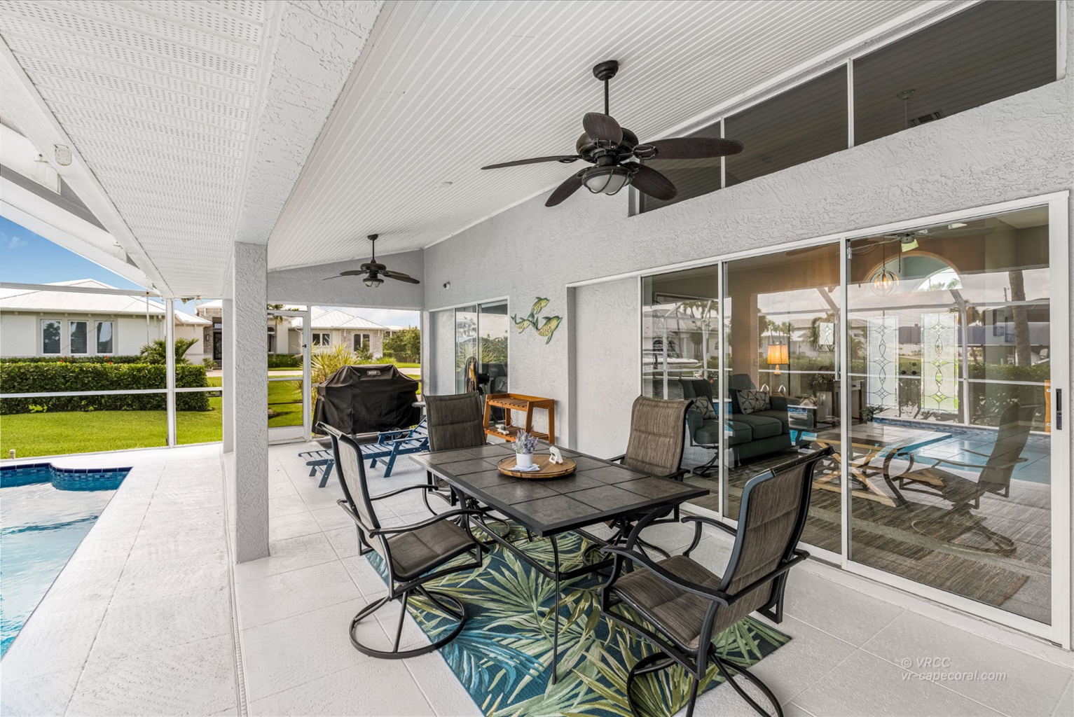 Outside you will find a screened pool, a nice seating area and of course, a gas grill. Down by the canal you'll find a cozy seating area at the boat dock.