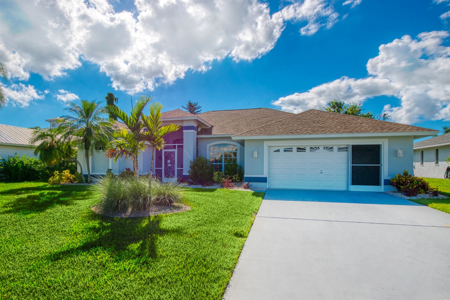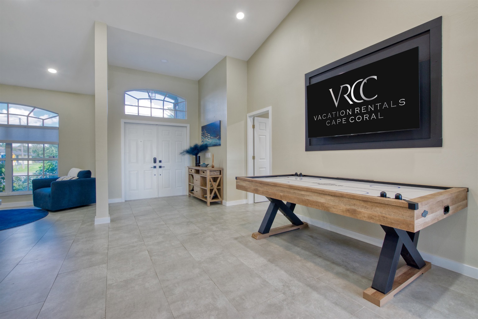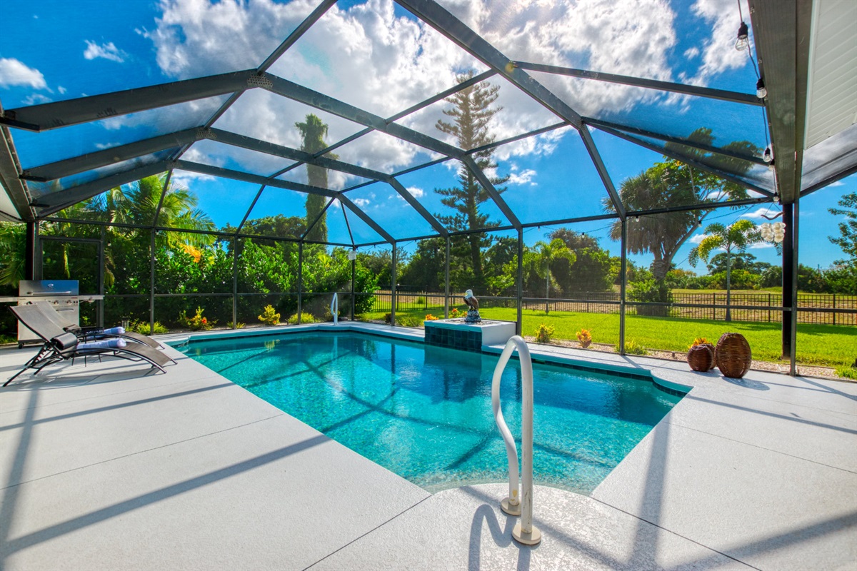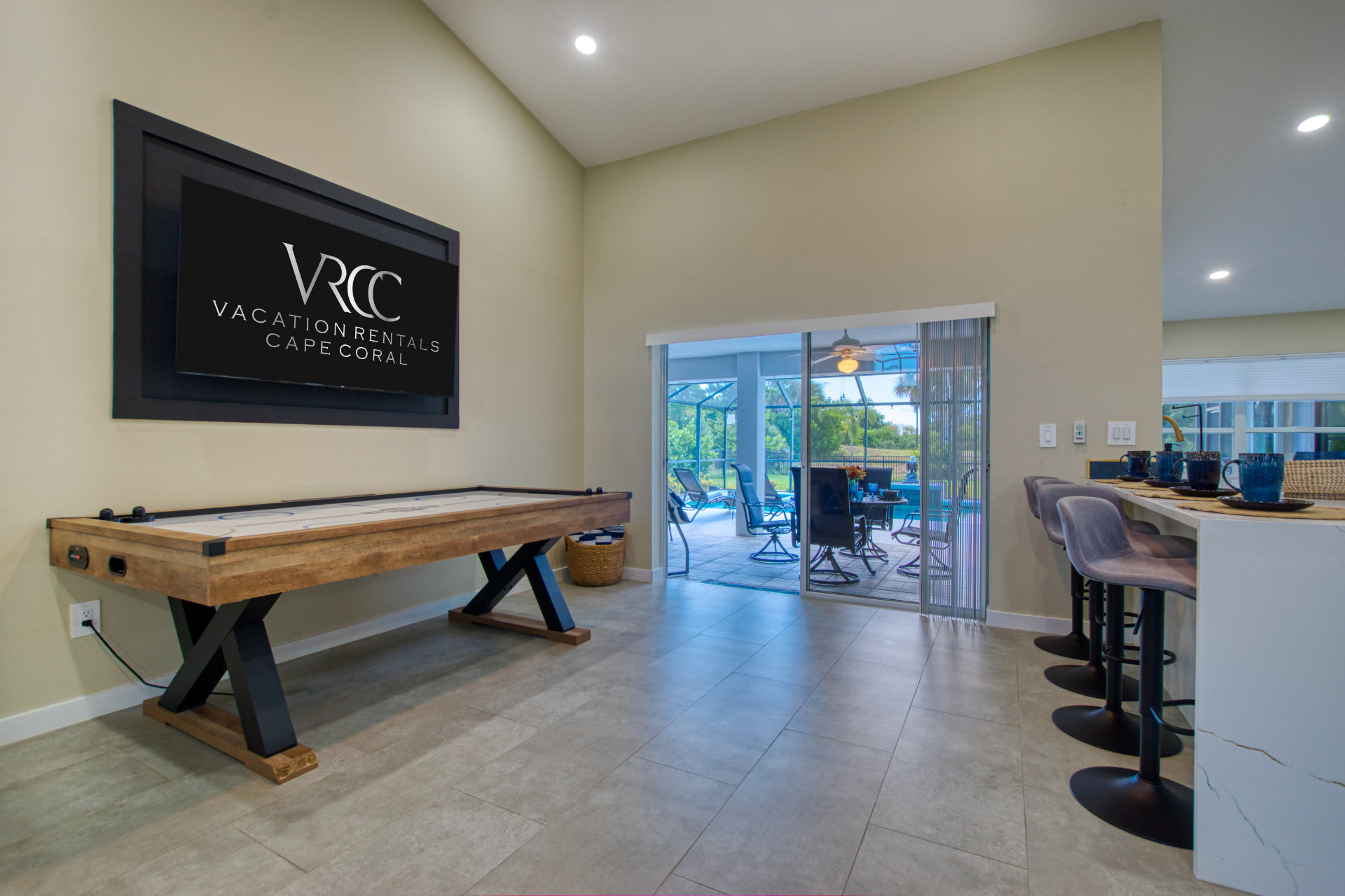 As you make your way through the house, you'll discover a large lanai that opens up to a sparkling pool and private backyard perfect for basking in the Florida sun and lounging by the poolside with your favorite drink in hand. The surrounding greenery creates a sense of serenity and privacy, making it the perfect place to unwind and enjoy your vacation.