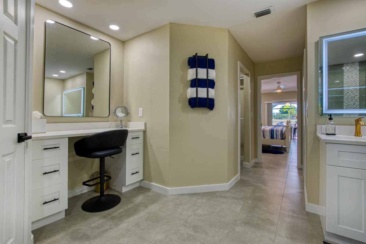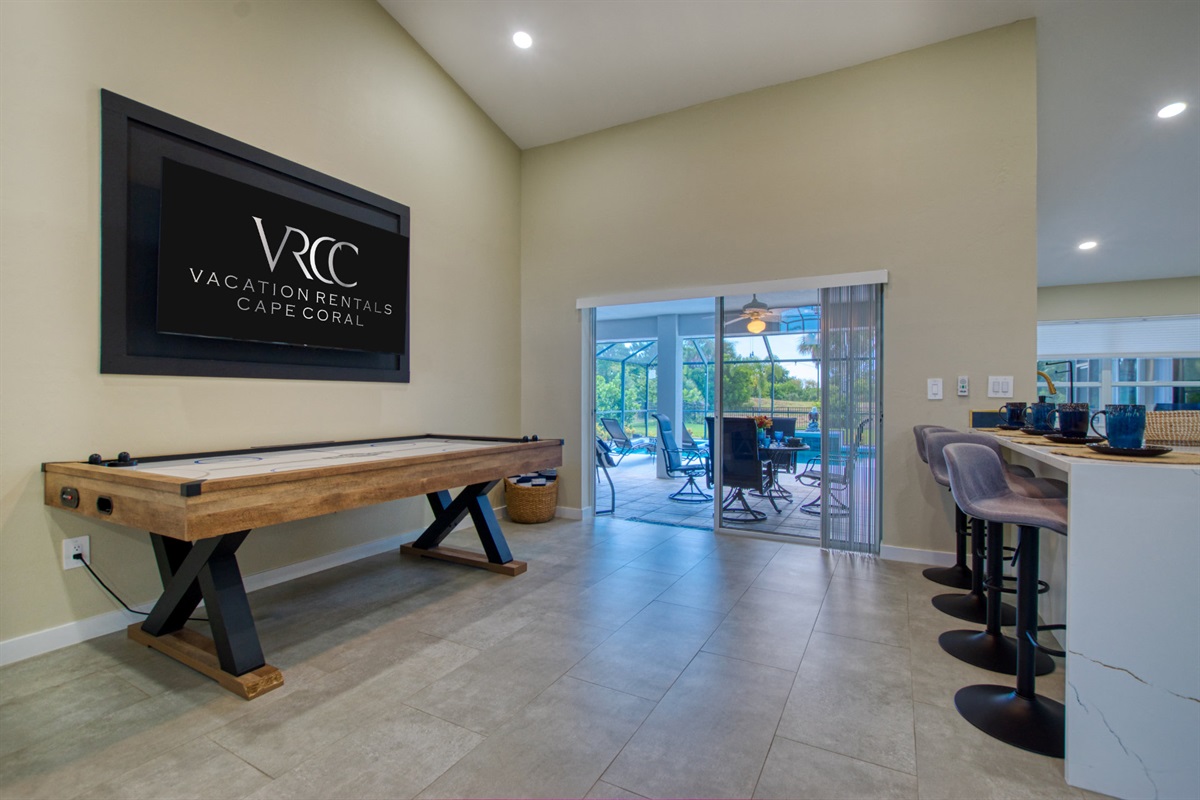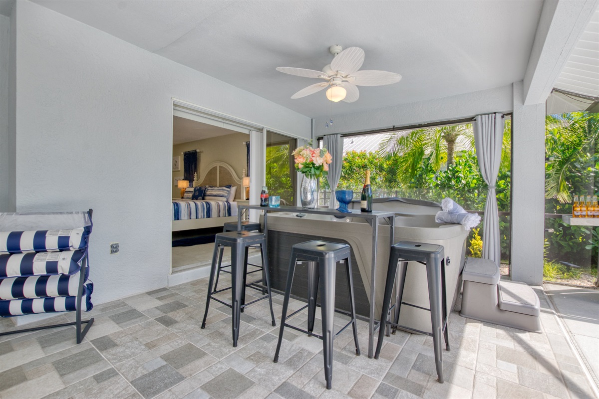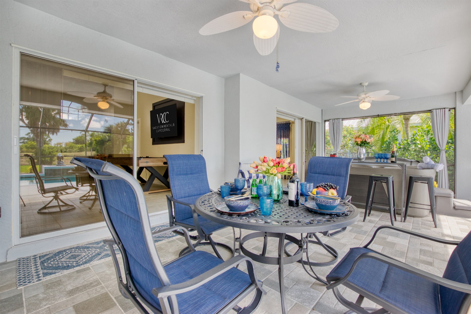 The kitchen boasts top of the line appliances and plenty of counter space, making it a pleasure to prepare meals for your family and friends. Whether you're whipping up a gourmet dinner or mixing up a cocktail to savor on the lanai, the kitchen has everything you need.