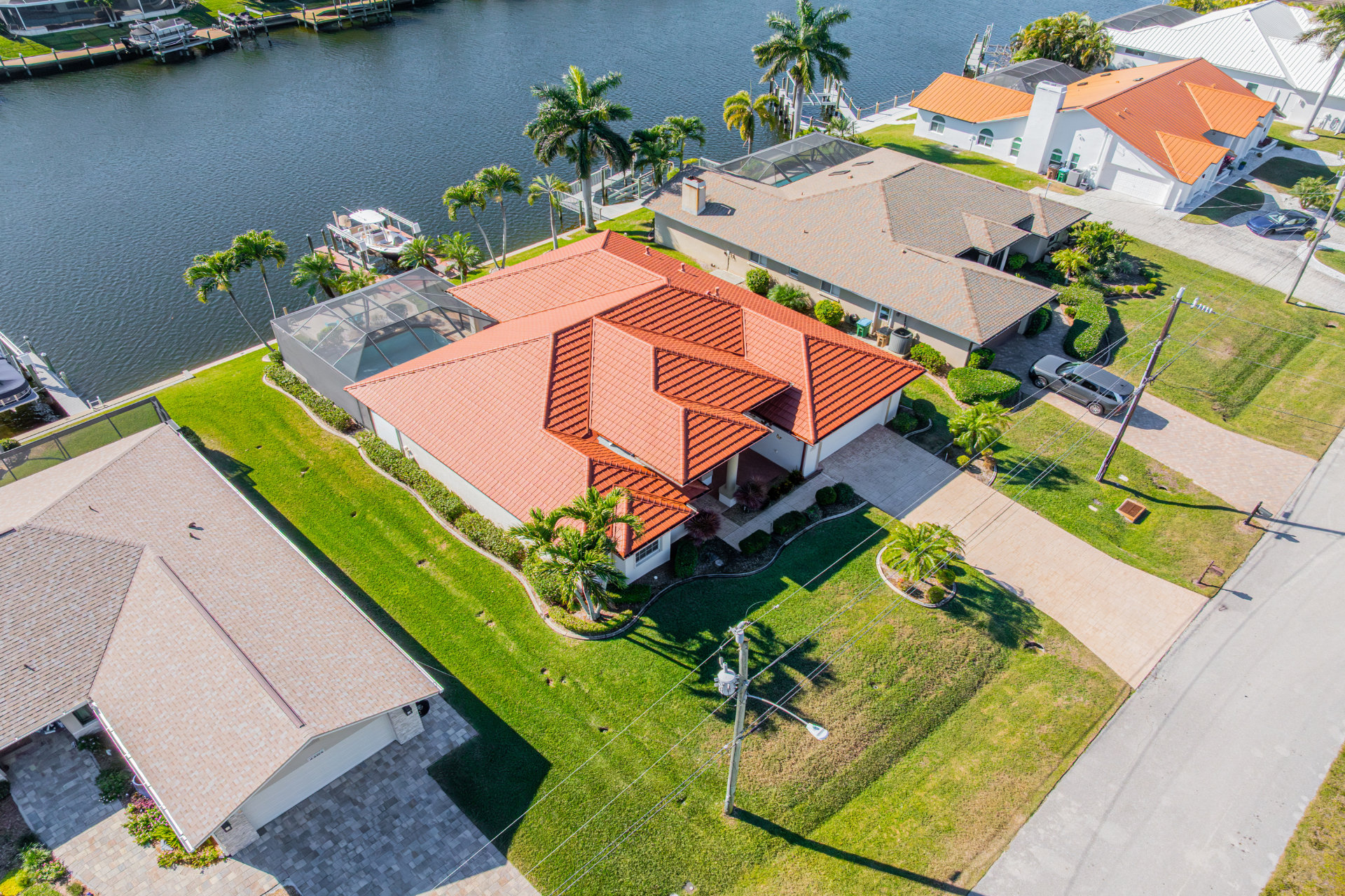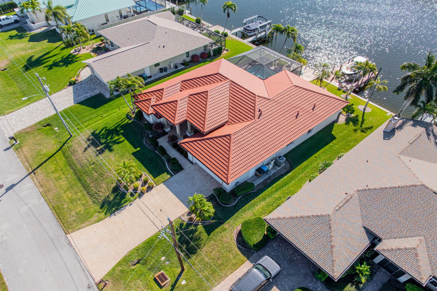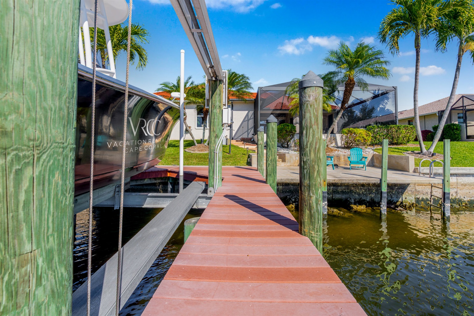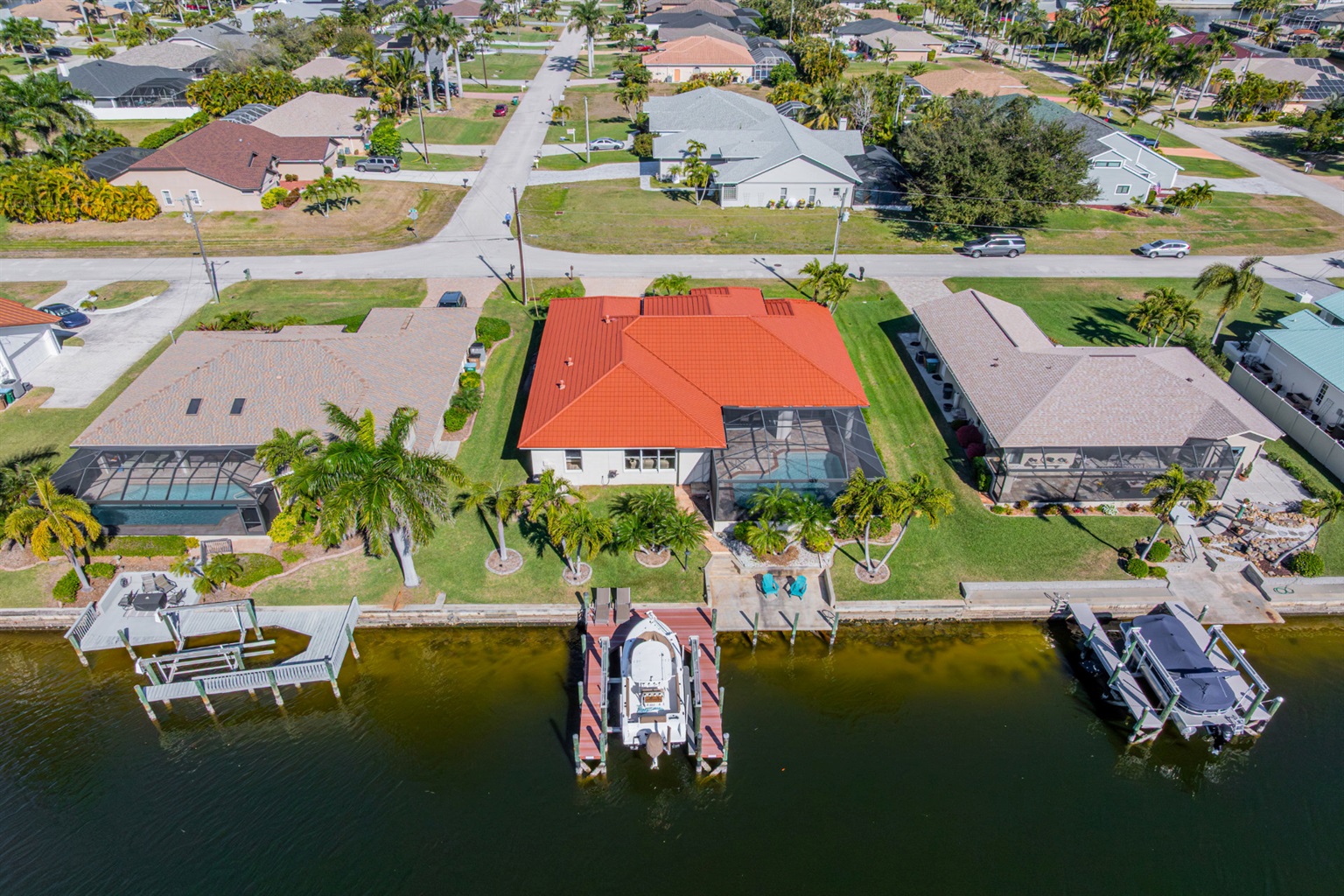 Step outside and discover your private paradise. The screened pool invites endless fun for kids and peaceful lounging for adults. The spacious outdoor seating area is perfect for sharing meals, watching boats pass by the canal, or enjoying the vibrant Florida sunsets. With direct water access and a private boat lift, you can set off for a day on the water whenever the mood strikes.