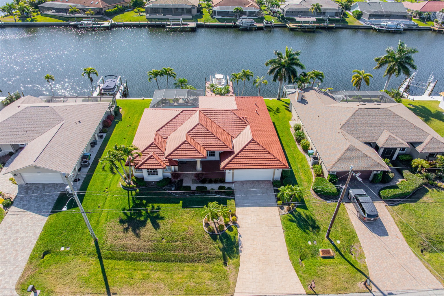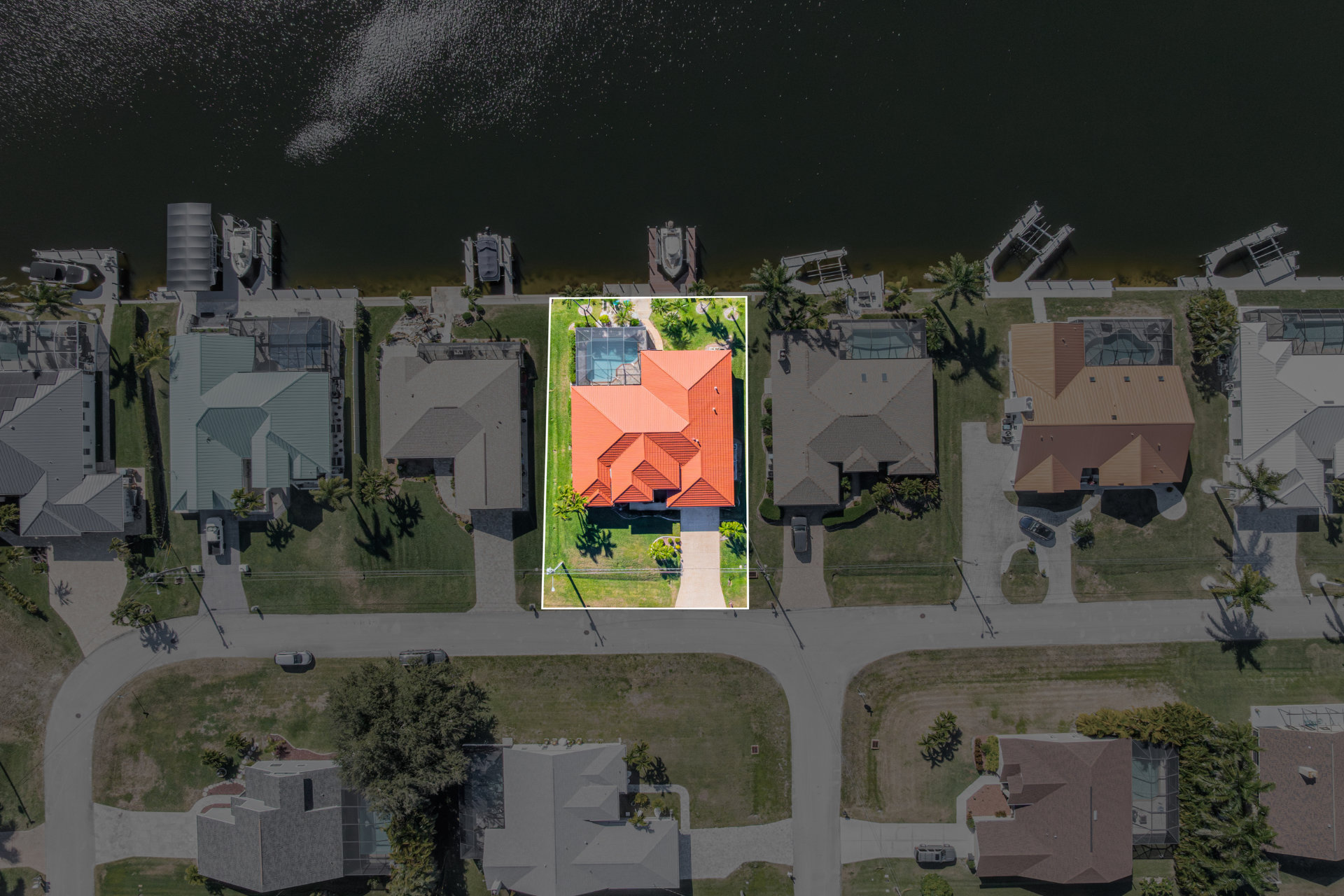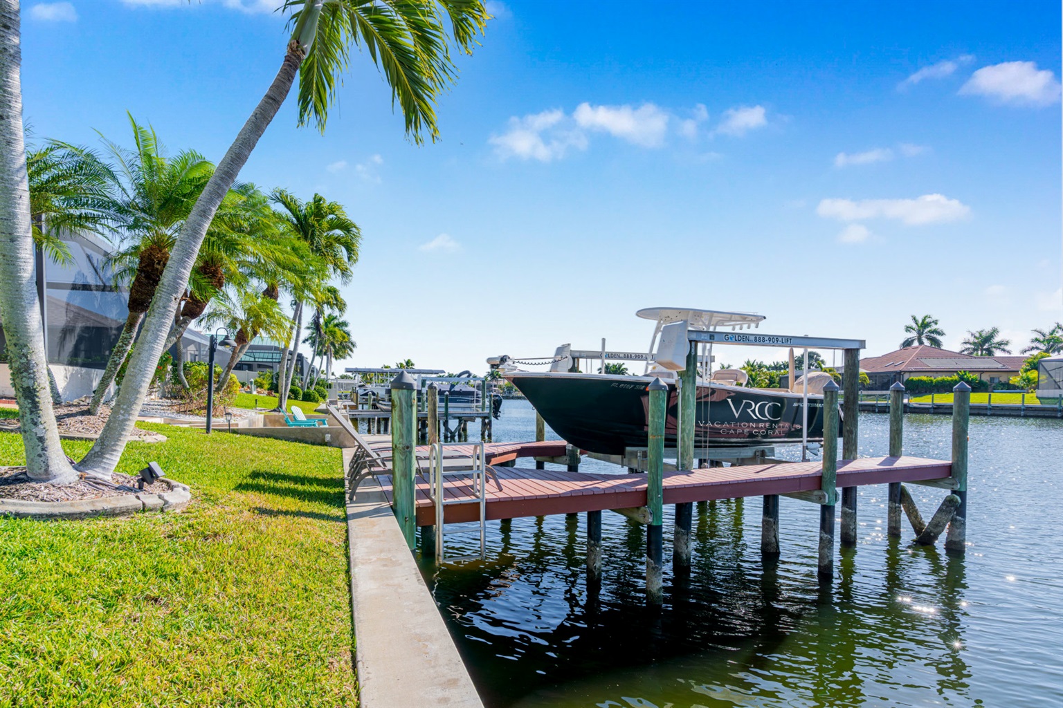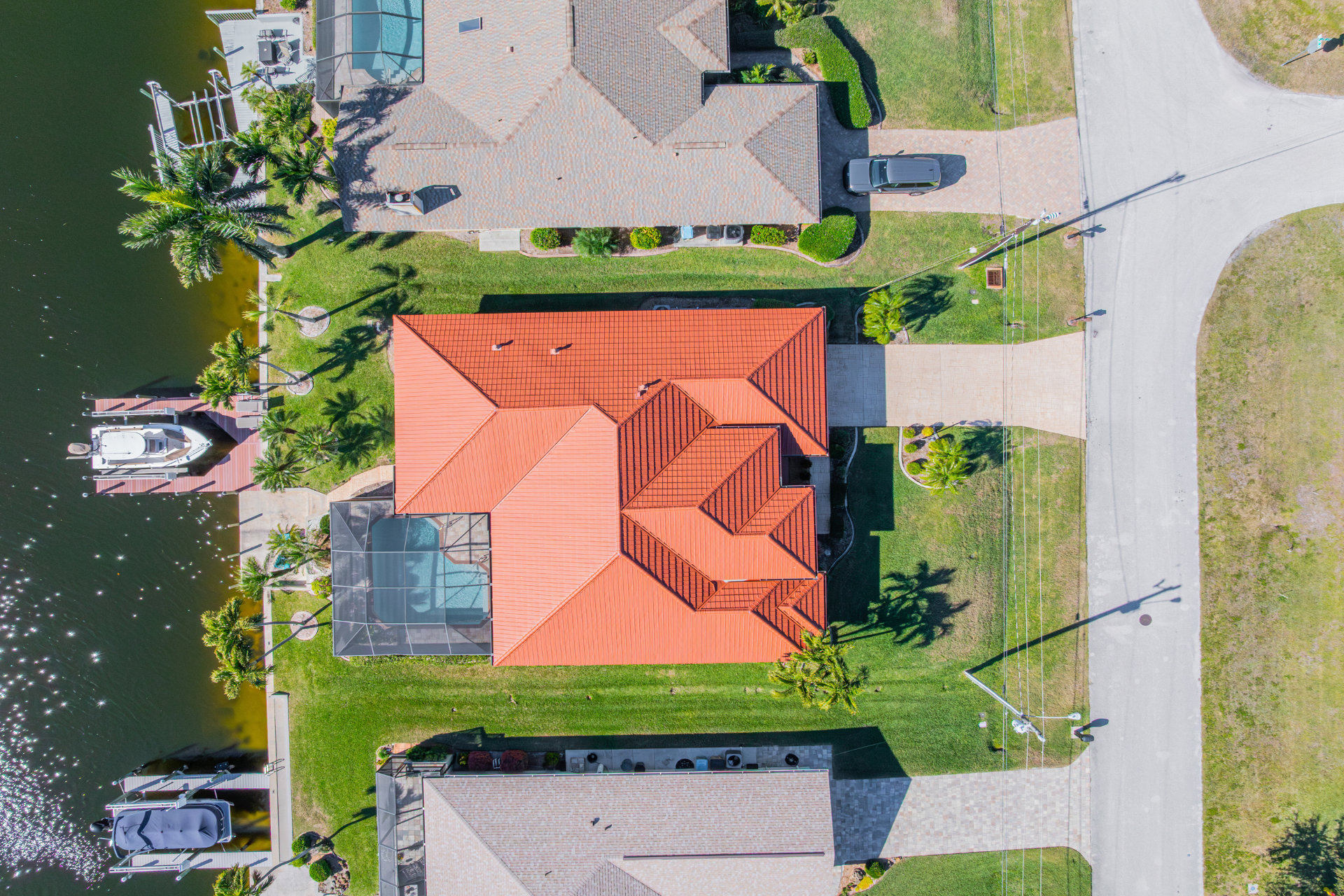 Step outside and discover your private paradise. The screened pool invites endless fun for kids and peaceful lounging for adults. The spacious outdoor seating area is perfect for sharing meals, watching boats pass by the canal, or enjoying the vibrant Florida sunsets. With direct water access and a private boat lift, you can set off for a day on the water whenever the mood strikes.