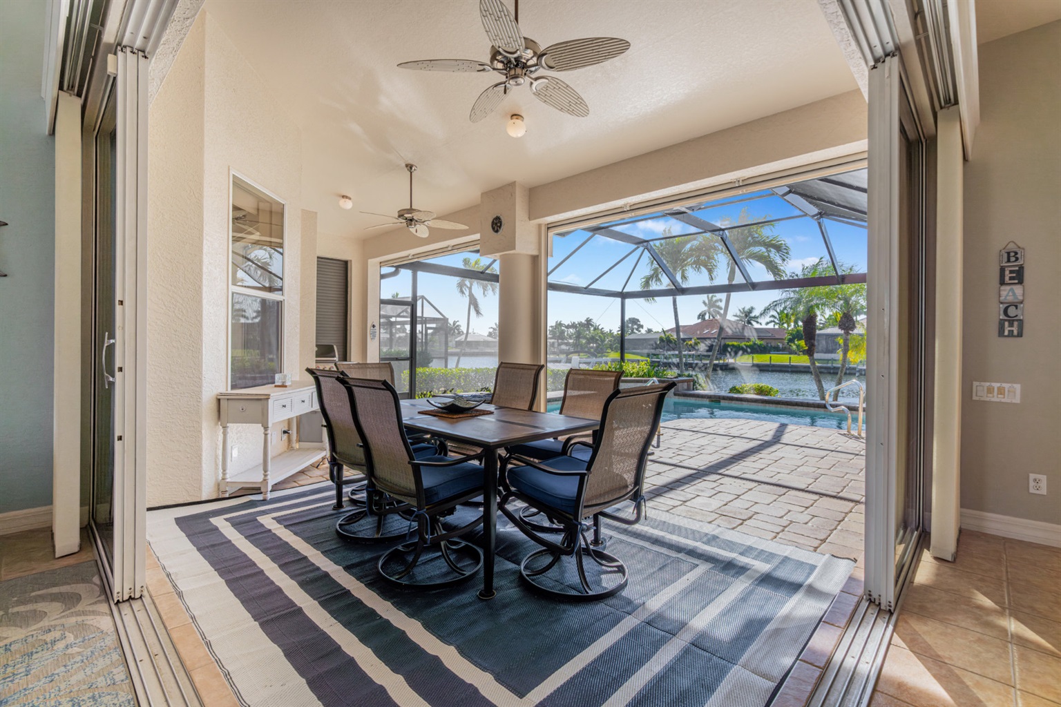 As evening falls, watch the sky turn brilliant shades of pink and gold, reflecting over the serene canal. Villa Eternity Blue isn’t just a place to stay—it’s where unforgettable family moments take shape, wrapped in sunshine, laughter, and the timeless beauty of Florida’s waterfront life.
