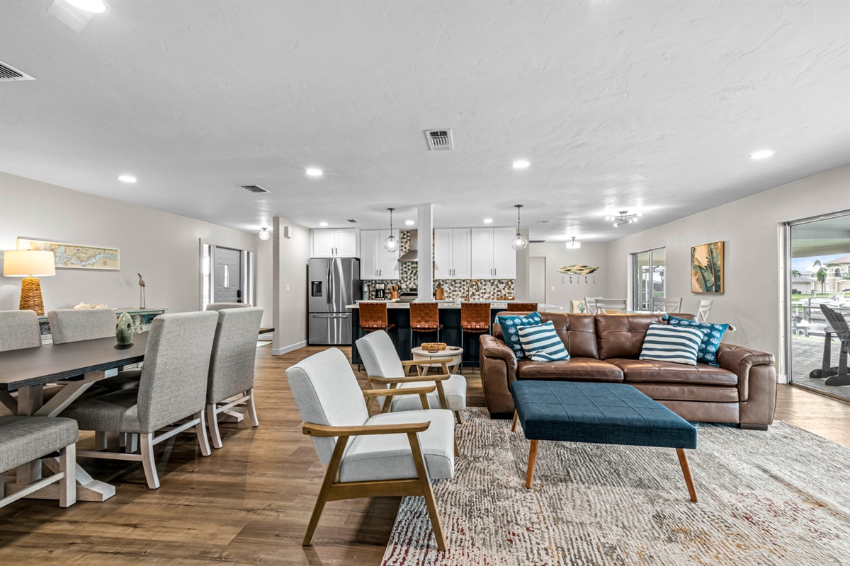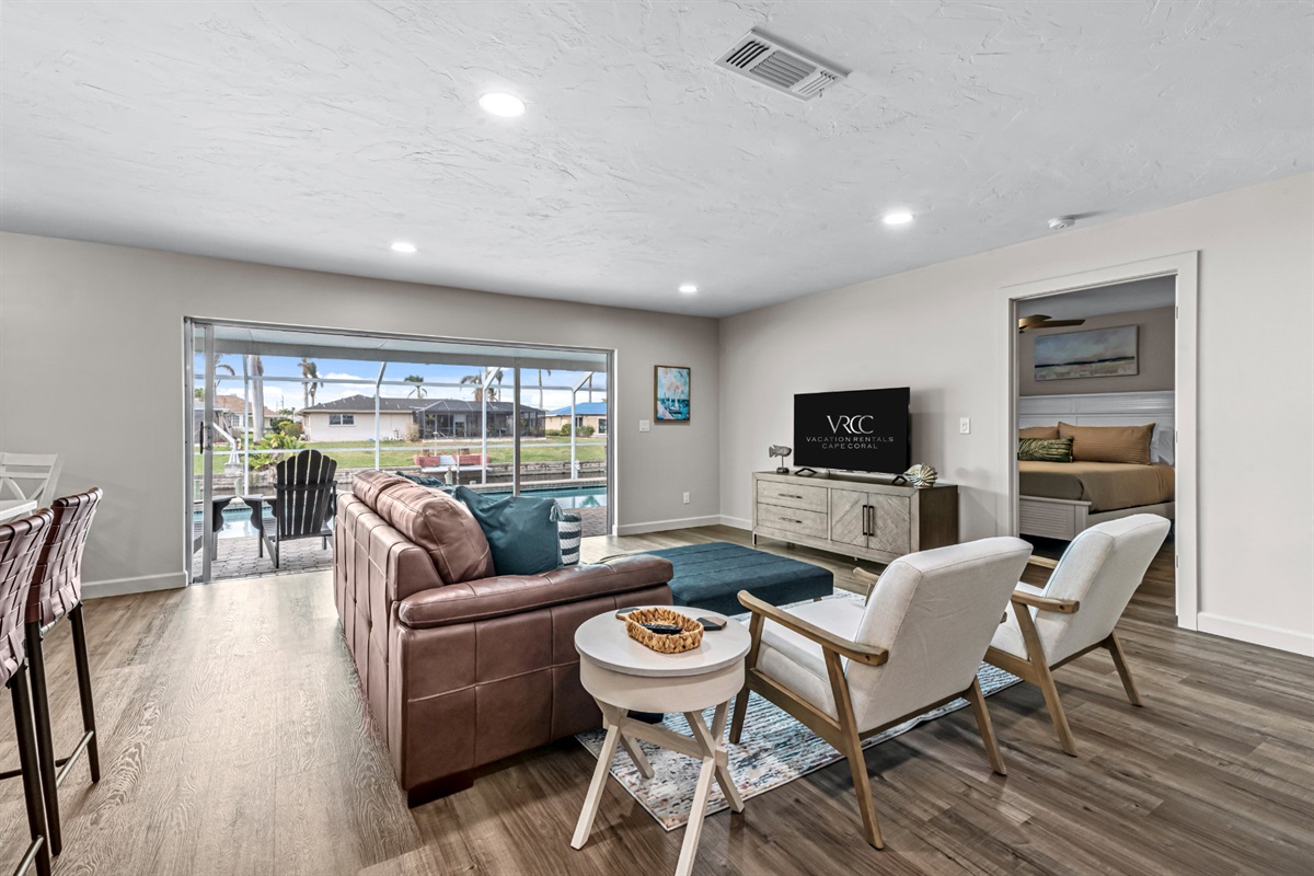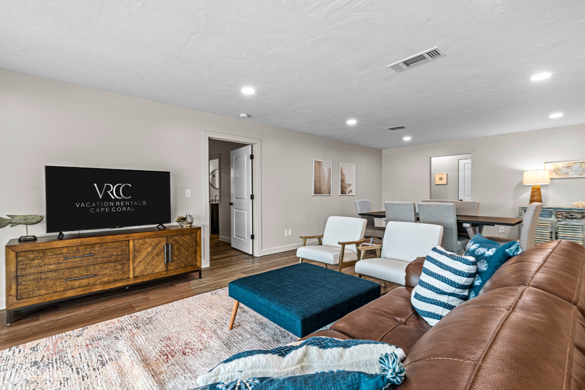 3 Bedrooms • 2 Bathrooms 2 Baths • Sleeps 3-6Take ten steps into this beautifully redone villa and you’ll never want to leave! Sure to be a favourite for many, this waterfront home is situated close to everything in Southeast Cape Coral, with easy access to Fort Myers and beyond, by boat or car.