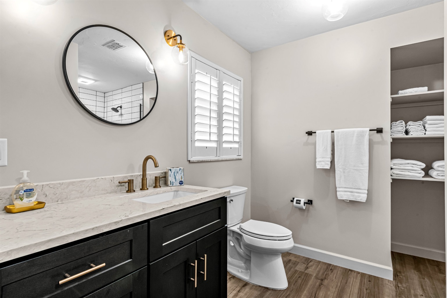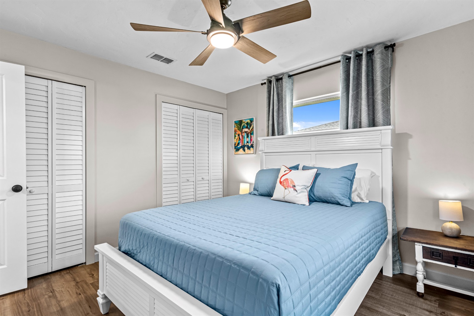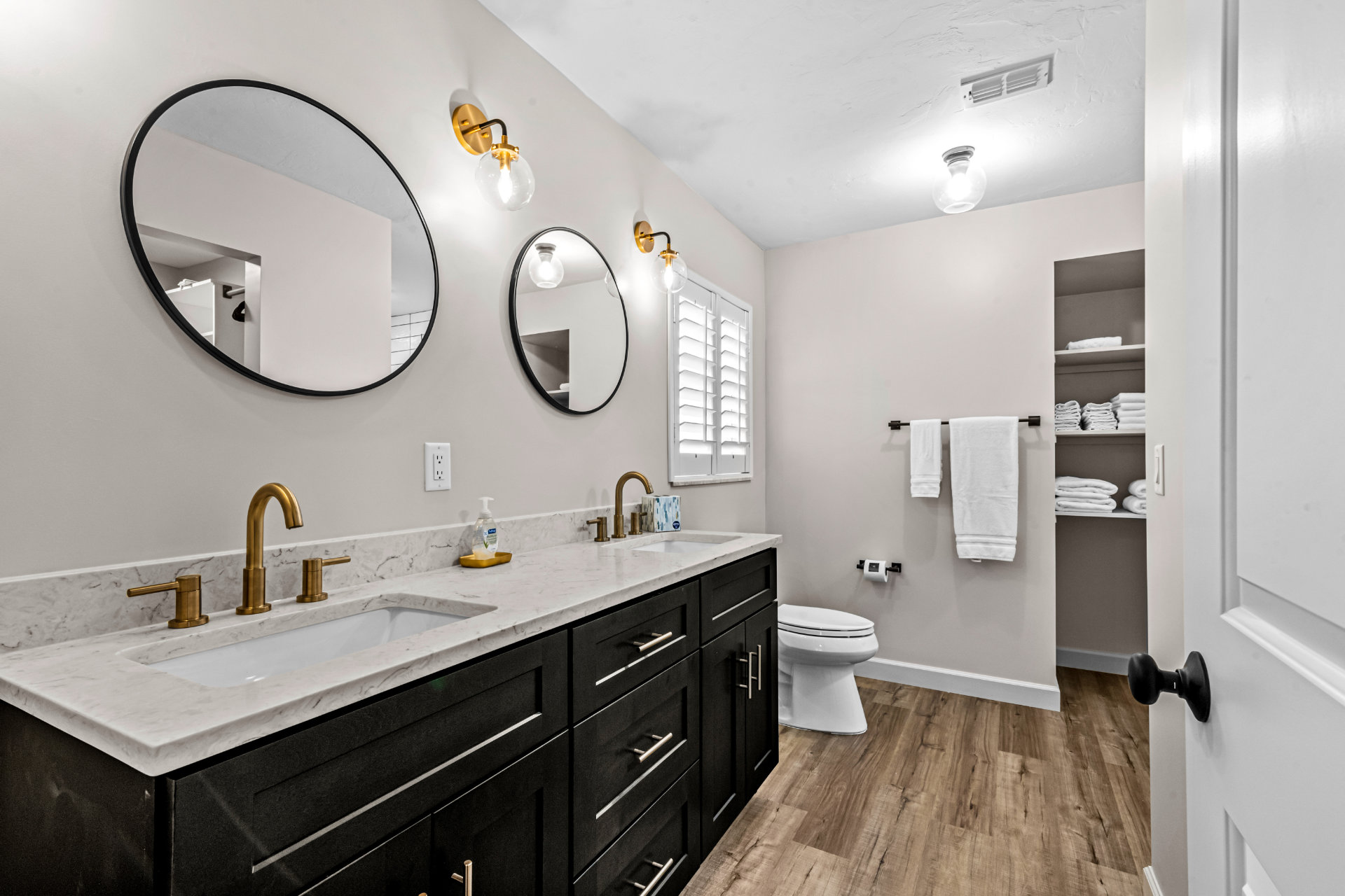Layout: This wide open, split layout offers a great room with comfy seating, large marble island and dining table that seats 6. The master bedroom offers a plush king sized bed, soft linens, walk-in closet and a full ensuite bathroom. The guest suites are nestled into their own little section, right off of the dining area and have comfy queen sized beds and soft linens with a full bathroom tucked between them. Right off the kitchen you’ll find the laundry room and garage.