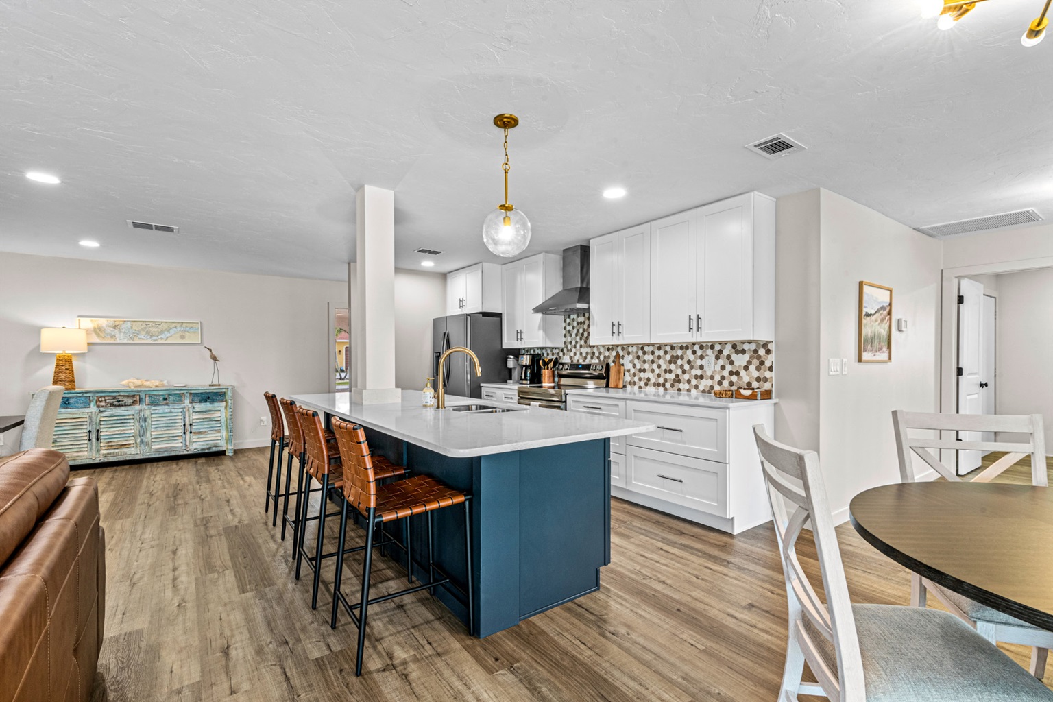 Indoor living: Overstuffed leather couch, smart tv’s in every room, dining table for 6, breakfast nook, gorgeous marble island with seating, tons of incredible sunlight