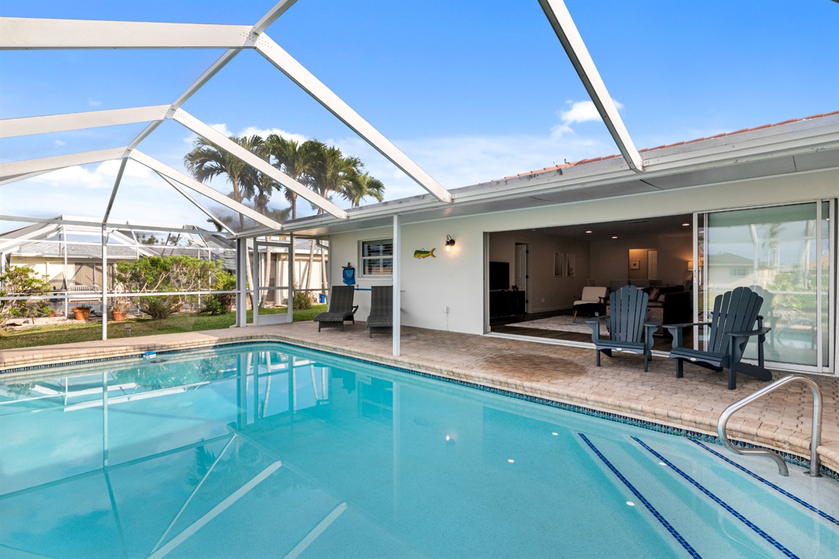 Step out onto the lanai through the huge hideaway slider and soak up the Florida sun while the kiddos splash in the family sized pool. Go beyond the lanai and you’ll find a dock perfect for catching some of our native fish or the beautiful Southwest Florida sunset.