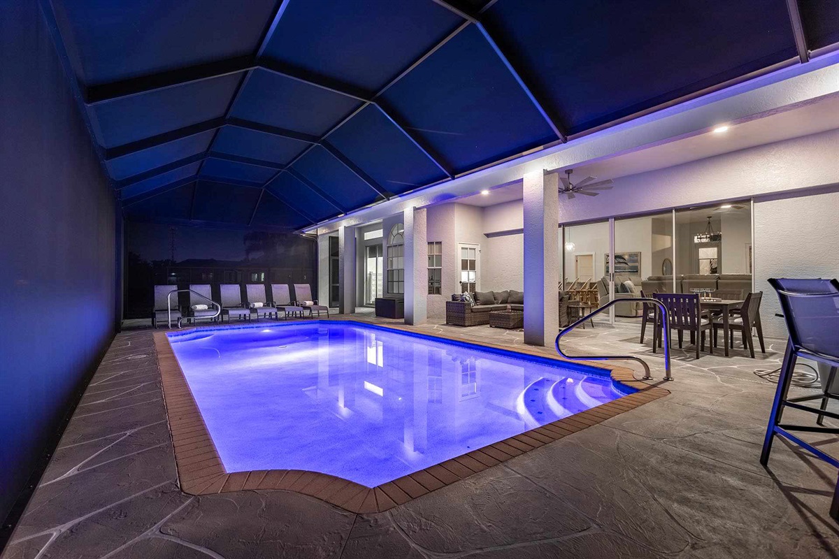 Your culinary adventures won't be confined to the indoors. With an outdoor kitchen and dining area, you can prepare meals and entertain while the rest of your guests enjoy the large heated pool and lounging areas. Afterward, enjoy great conversation under the stars with the lanai’s built in bar.