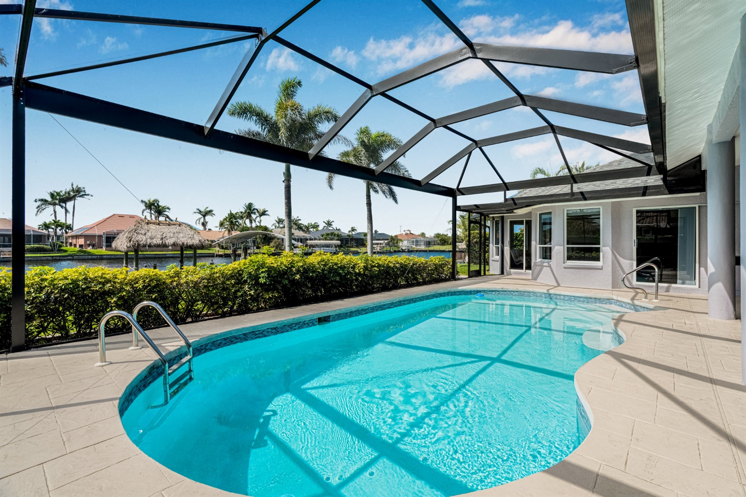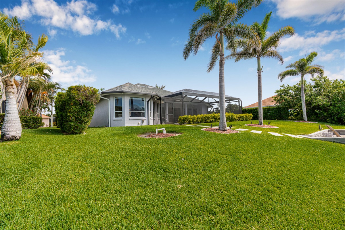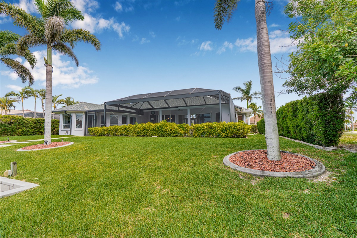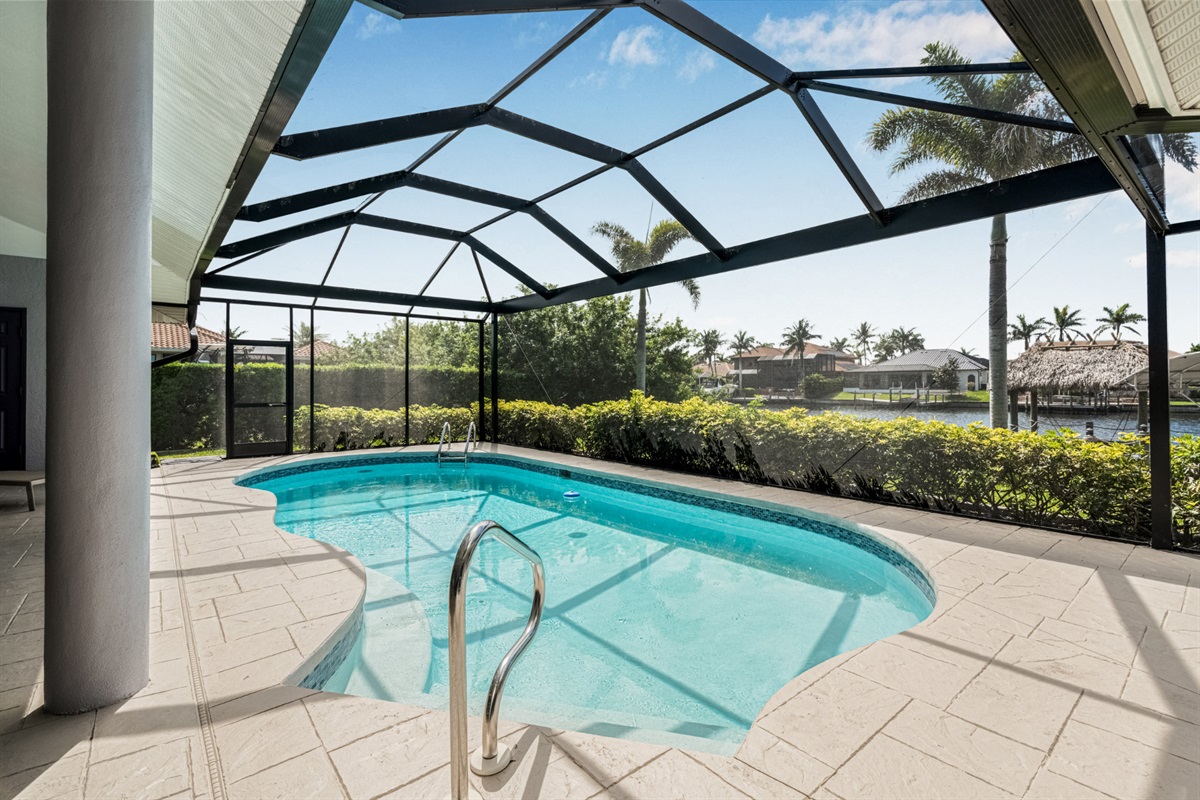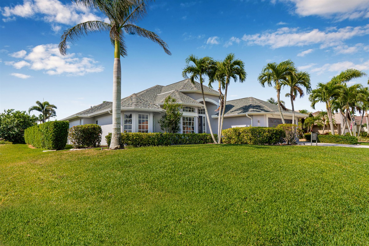 4 Bedrooms • 3 Bathrooms (2 full, 1 half) 3 Baths (2 full, 1 half) • Sleeps 6-8Villa Mango is located in Cape Coral's southwestern location, very quiet and away from other major streets. The southern exposure allows you to enjoy beautiful sunsets in the evenings and sunshine all day on the pool deck. The adjoining canal has the maximum width in Cape Coral. Privacy to the neighbors is given not only on land side by the beautifully landscaped garden, but by the wide channel also water side.