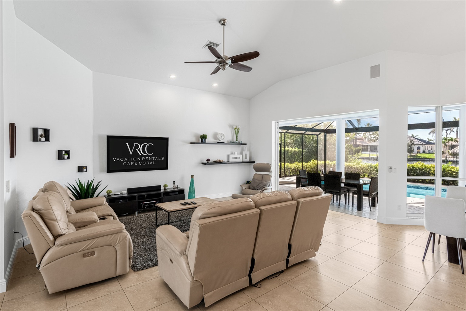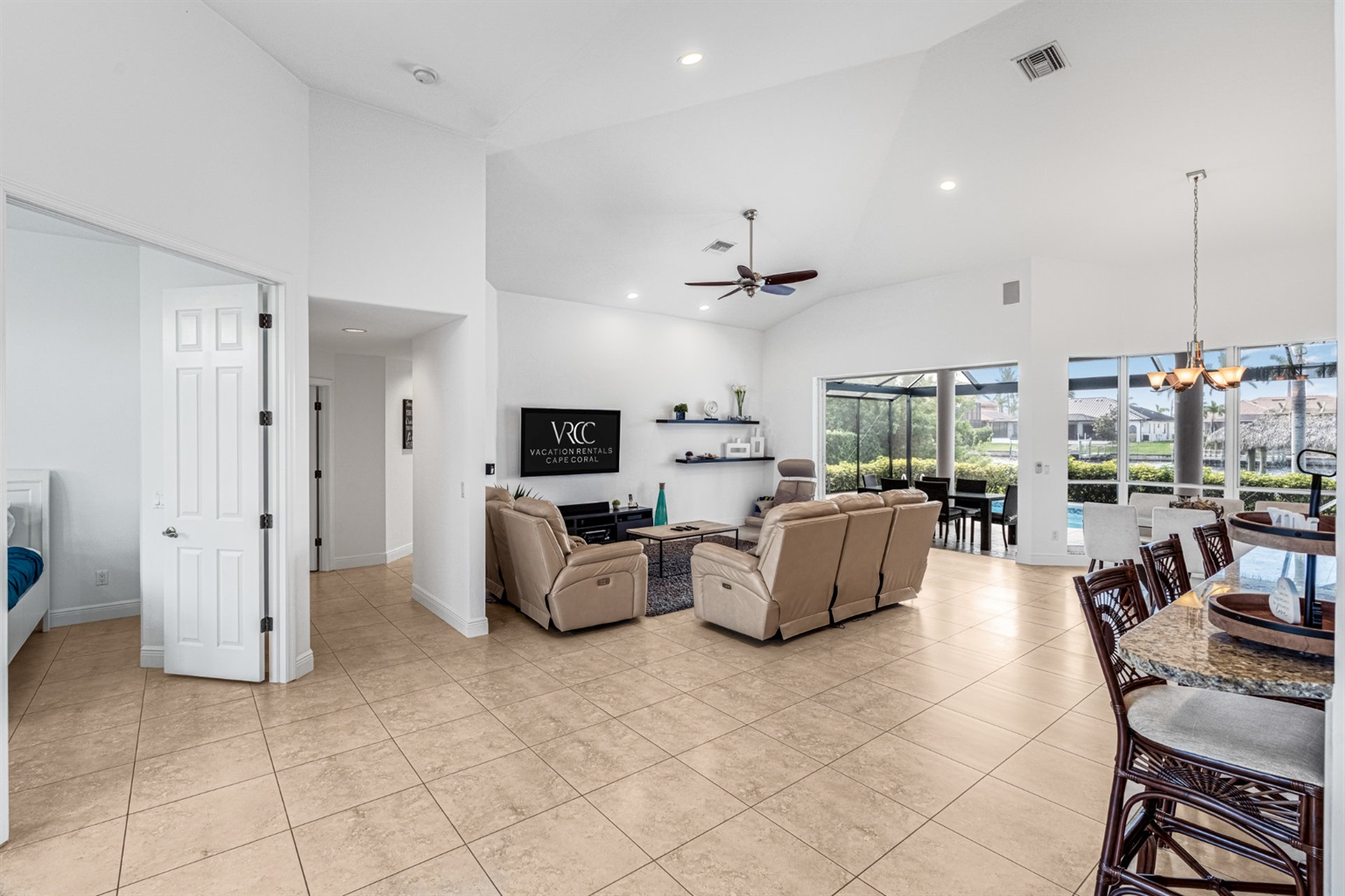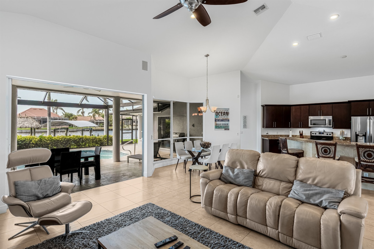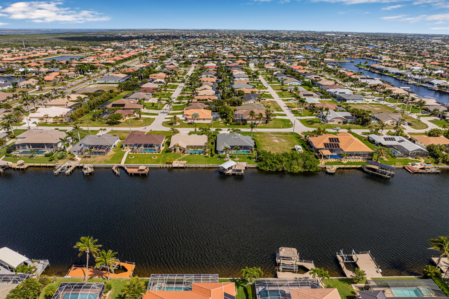 4 Bedrooms • 3 Bathrooms (2 full, 1 half) 3 Baths (2 full, 1 half) • Sleeps 6-8Villa Mango is located in Cape Coral's southwestern location, very quiet and away from other major streets. The southern exposure allows you to enjoy beautiful sunsets in the evenings and sunshine all day on the pool deck. The adjoining canal has the maximum width in Cape Coral. Privacy to the neighbors is given not only on land side by the beautifully landscaped garden, but by the wide channel also water side.