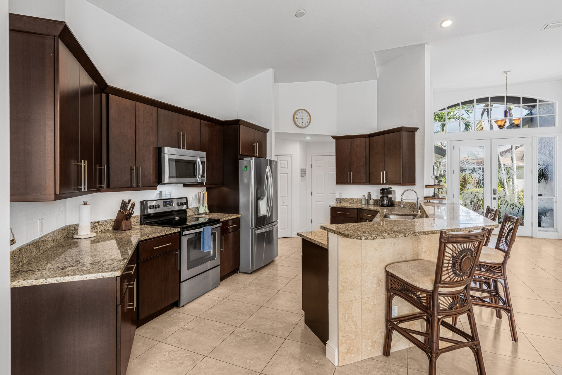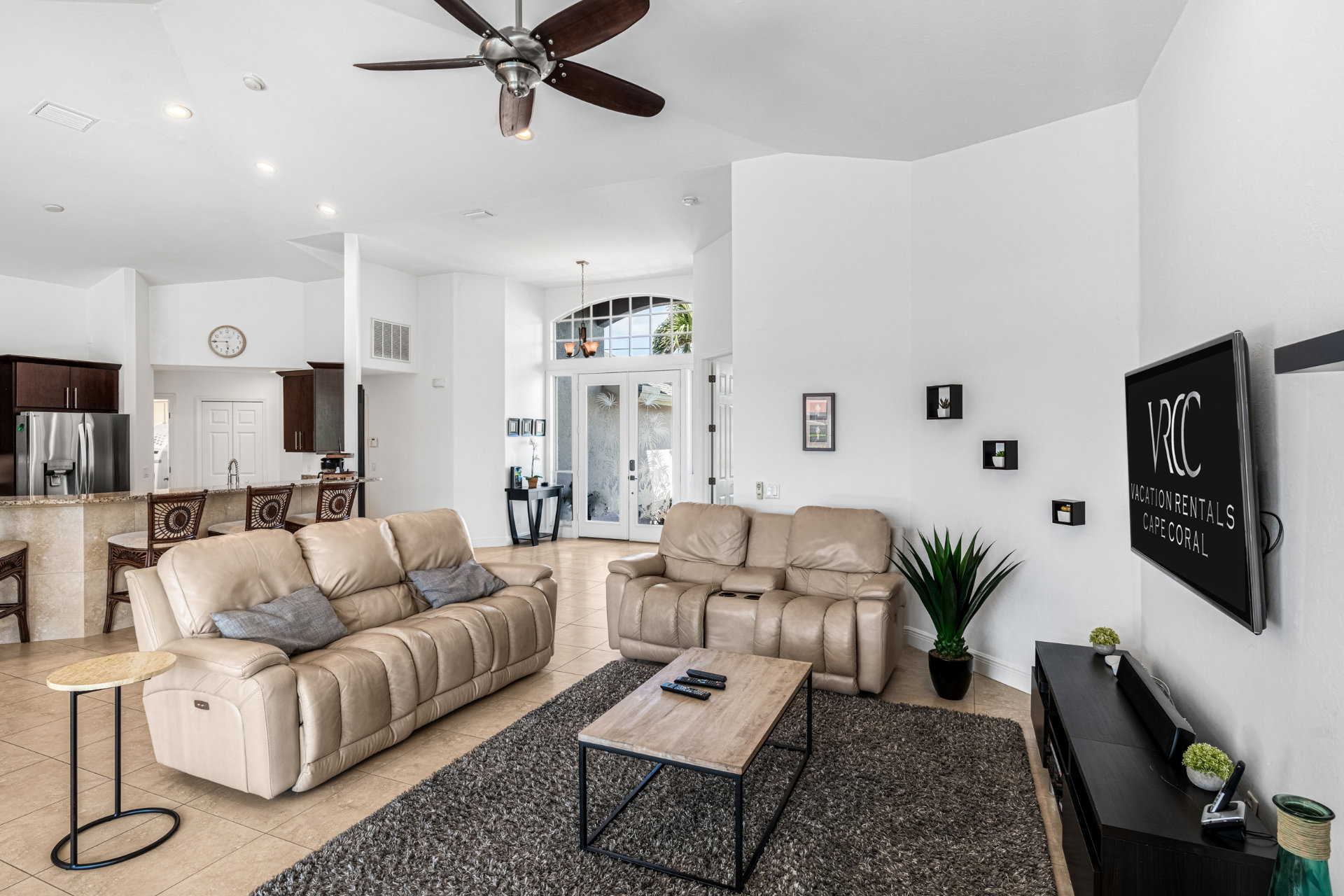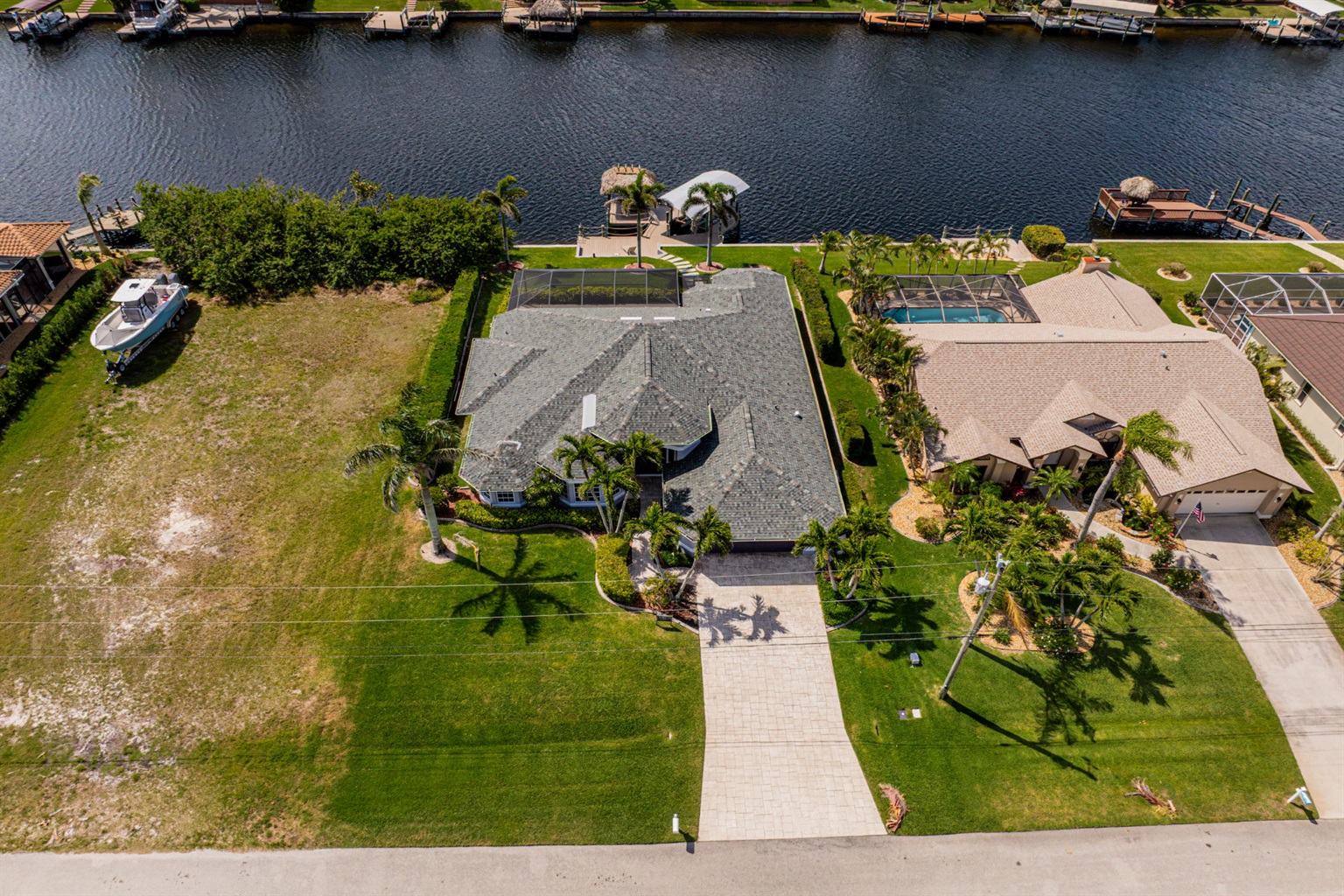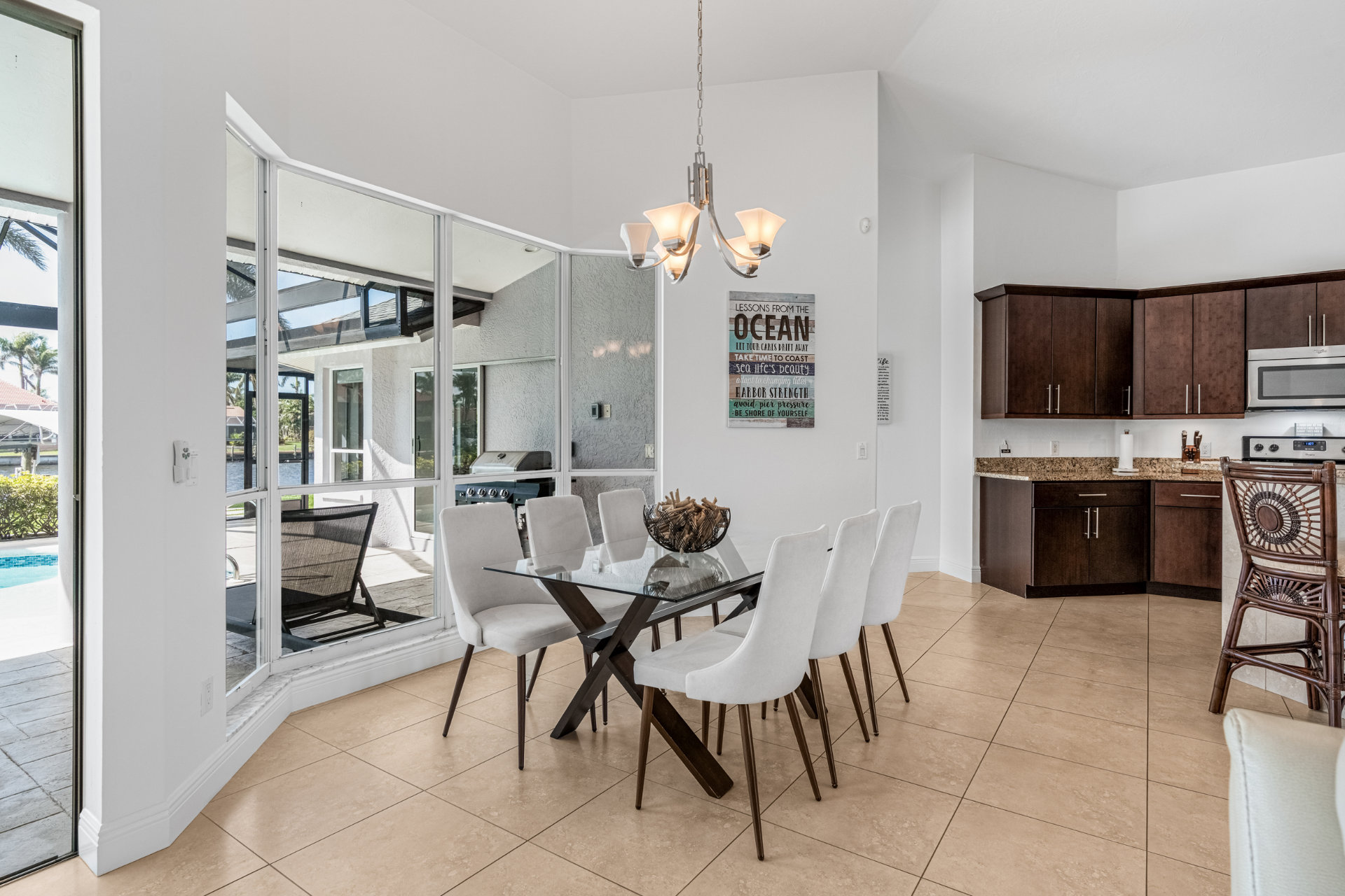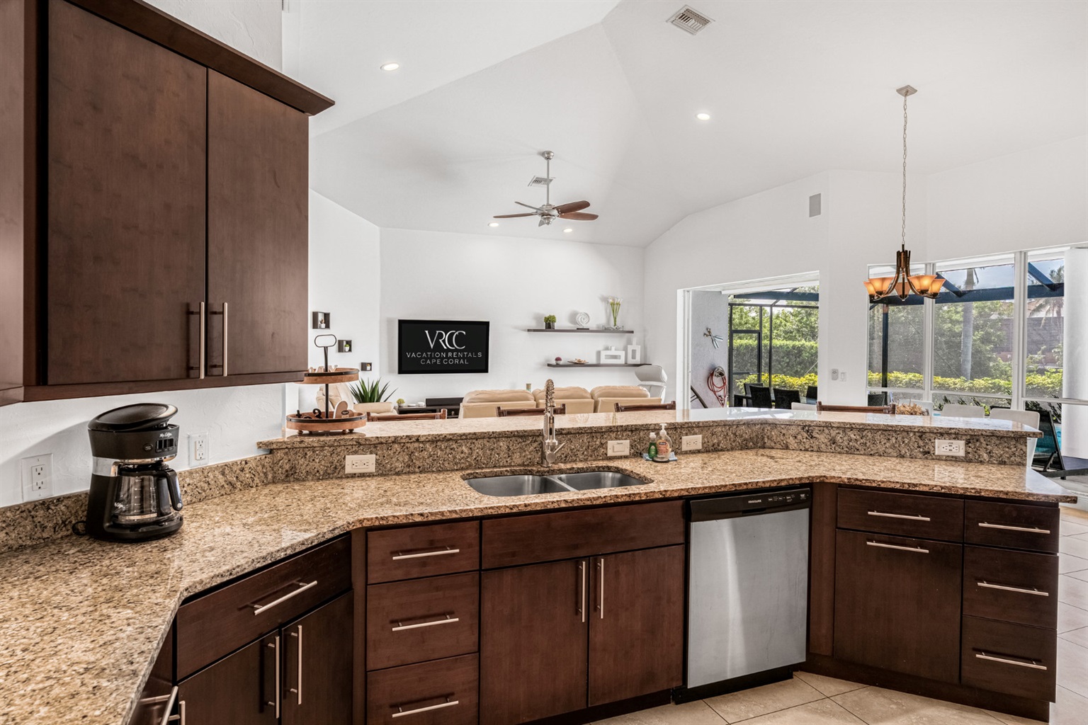 4 Bedrooms • 3 Bathrooms (2 full, 1 half) 3 Baths (2 full, 1 half) • Sleeps 6-8Villa Mango is located in Cape Coral's southwestern location, very quiet and away from other major streets. The southern exposure allows you to enjoy beautiful sunsets in the evenings and sunshine all day on the pool deck. The adjoining canal has the maximum width in Cape Coral. Privacy to the neighbors is given not only on land side by the beautifully landscaped garden, but by the wide channel also water side.