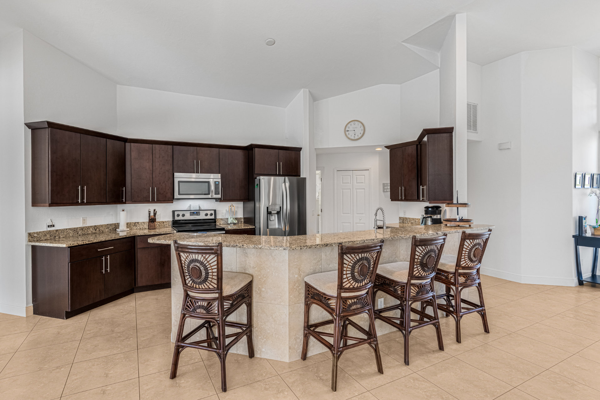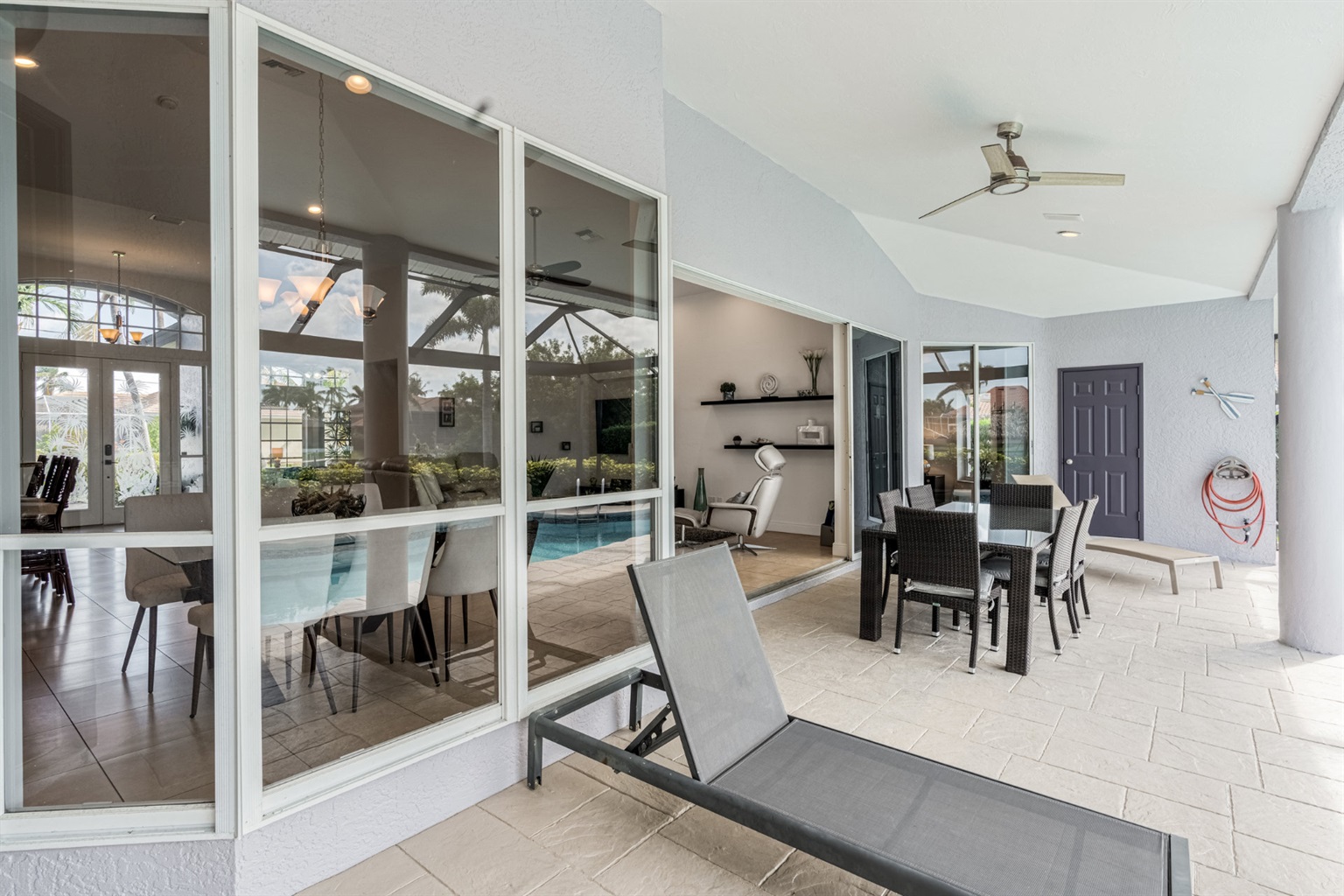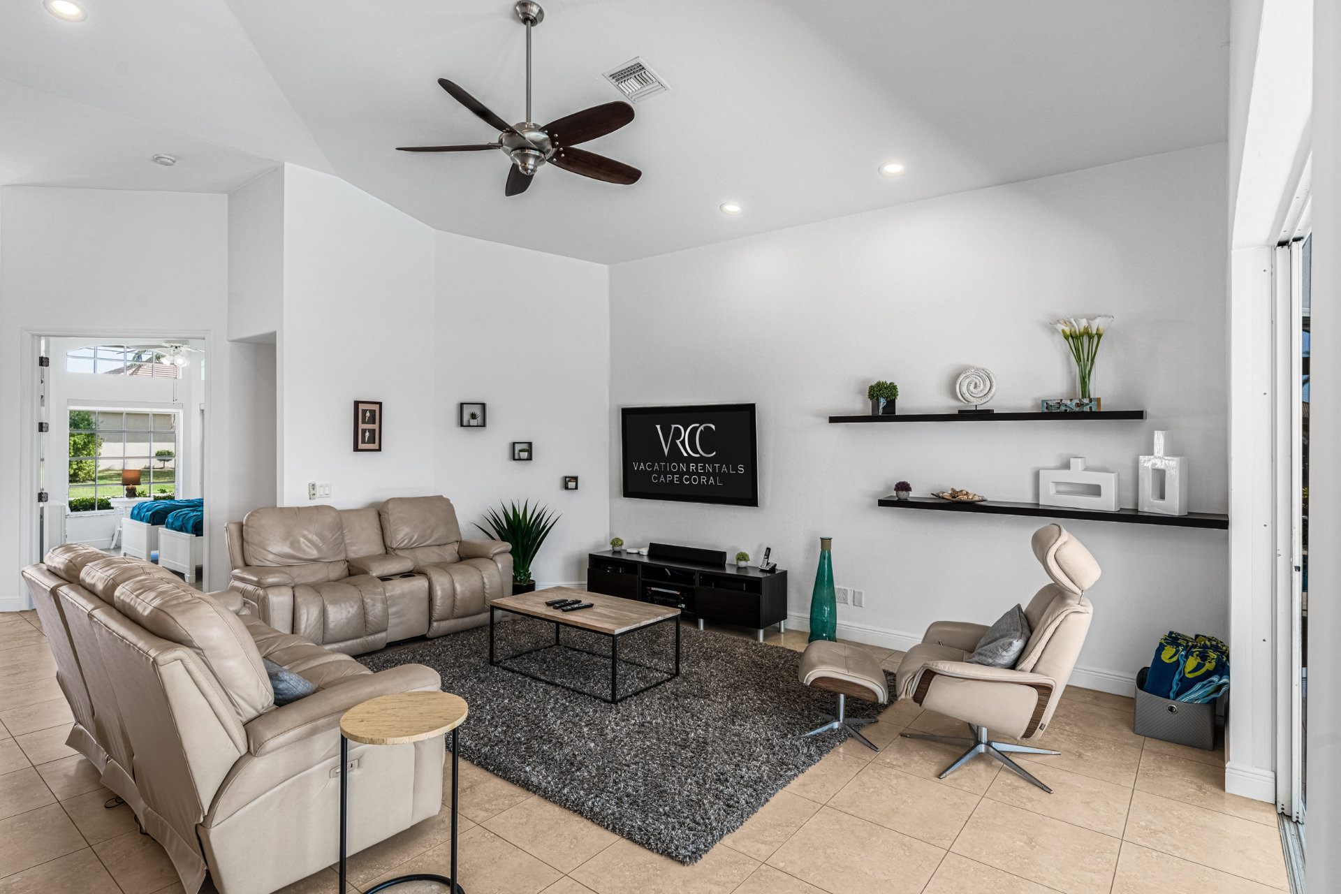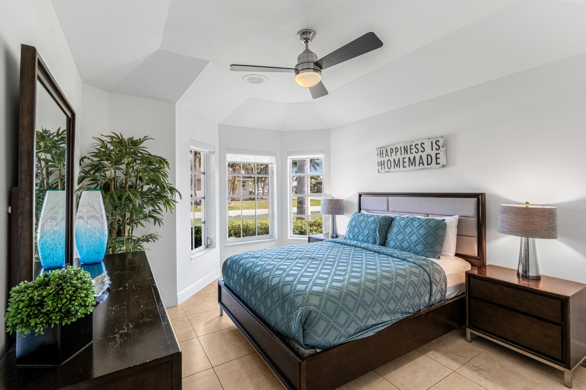 4 Bedrooms • 3 Bathrooms (2 full, 1 half) 3 Baths (2 full, 1 half) • Sleeps 6-8Villa Mango is located in Cape Coral's southwestern location, very quiet and away from other major streets. The southern exposure allows you to enjoy beautiful sunsets in the evenings and sunshine all day on the pool deck. The adjoining canal has the maximum width in Cape Coral. Privacy to the neighbors is given not only on land side by the beautifully landscaped garden, but by the wide channel also water side.