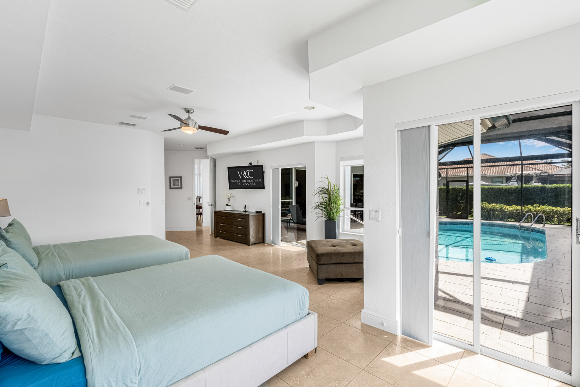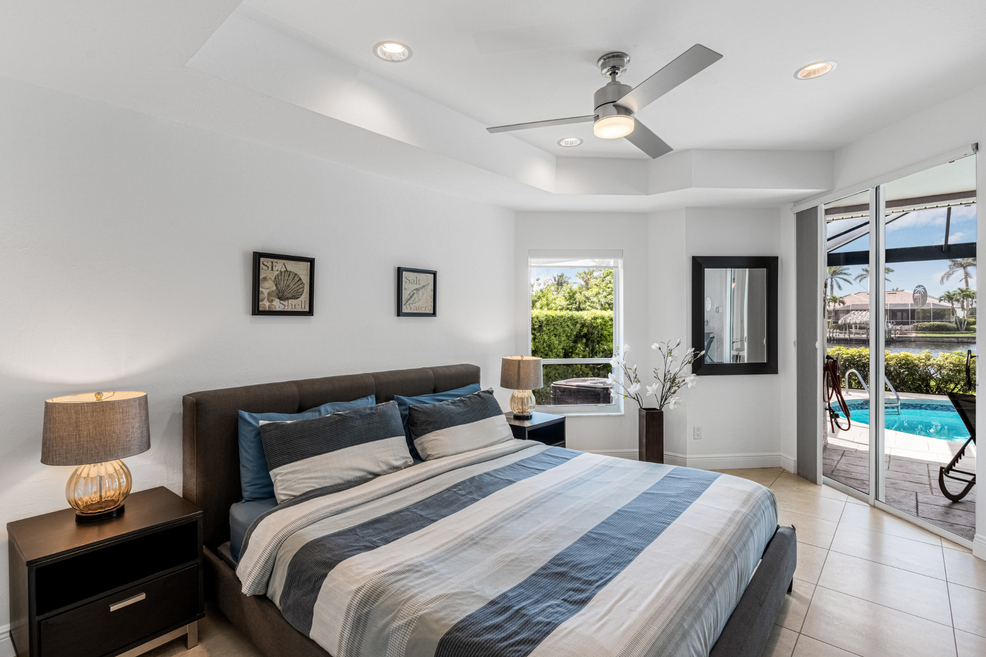 The second bedroom also provides best water views and direct access to the pool.