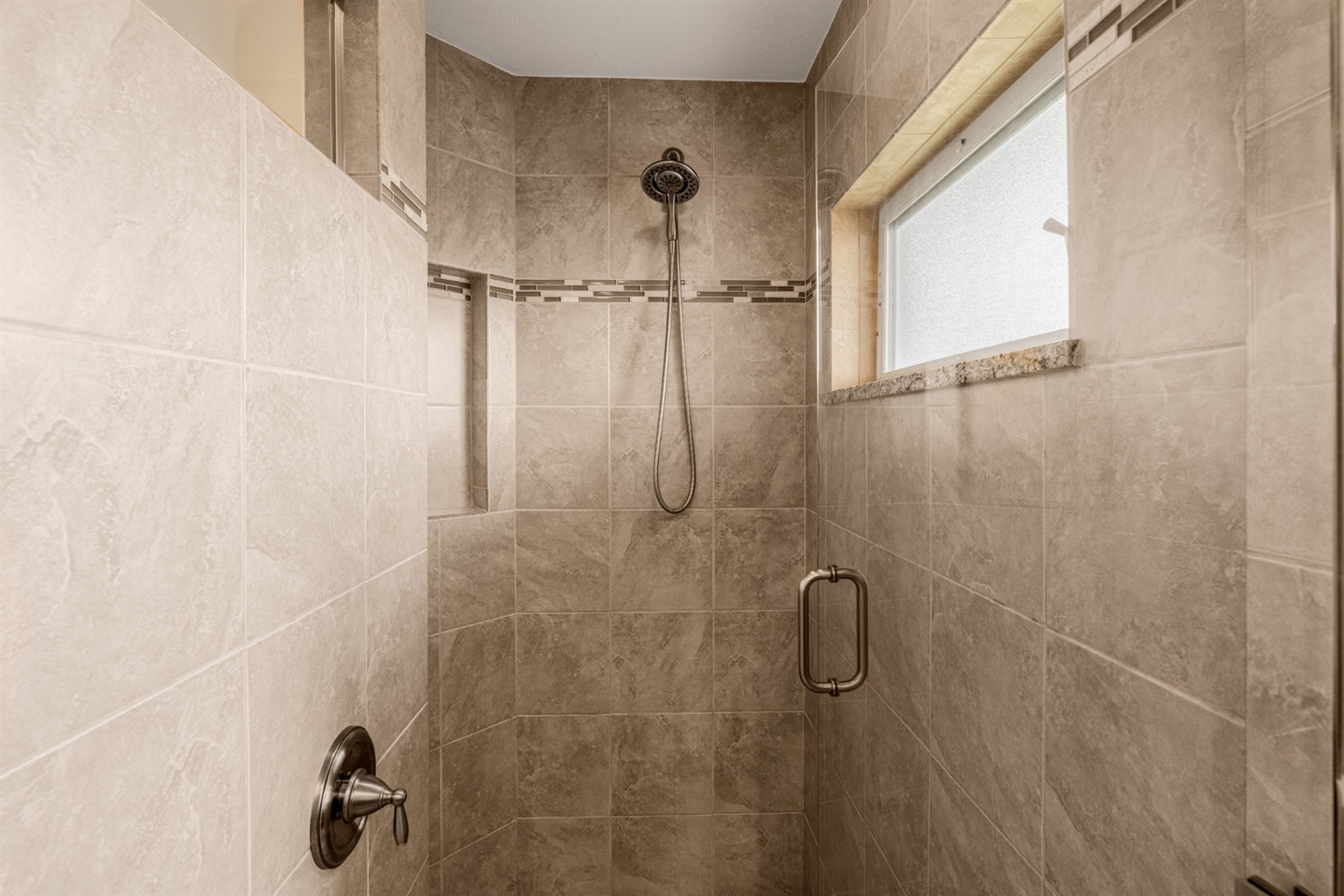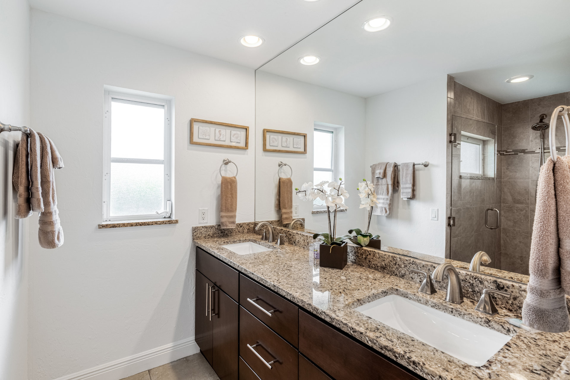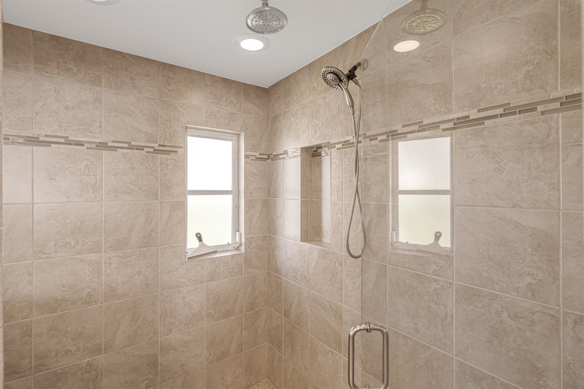 The second bathroom has a large shower and is located between the other two bedrooms.