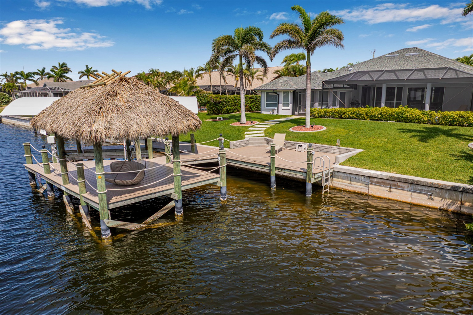 Our vacation villa was extensively renovated in 2020 and has a generous 2400 sqf floor space. The pool area extends the width of the house and offers sun lovers a lot of space. The pool has been built a bit further from the house to guarantee sunshine on the pool from morning to evening. If you are looking for shade, there is enough space to relax under the large canopy on the terrace. For excessive sun lovers we have a big sun deck down by the tiki hut. Fishermans will have a great time here. The mangroves are just 500ft from here. You can expect all the various fish species the Gulf of Mexico offers.