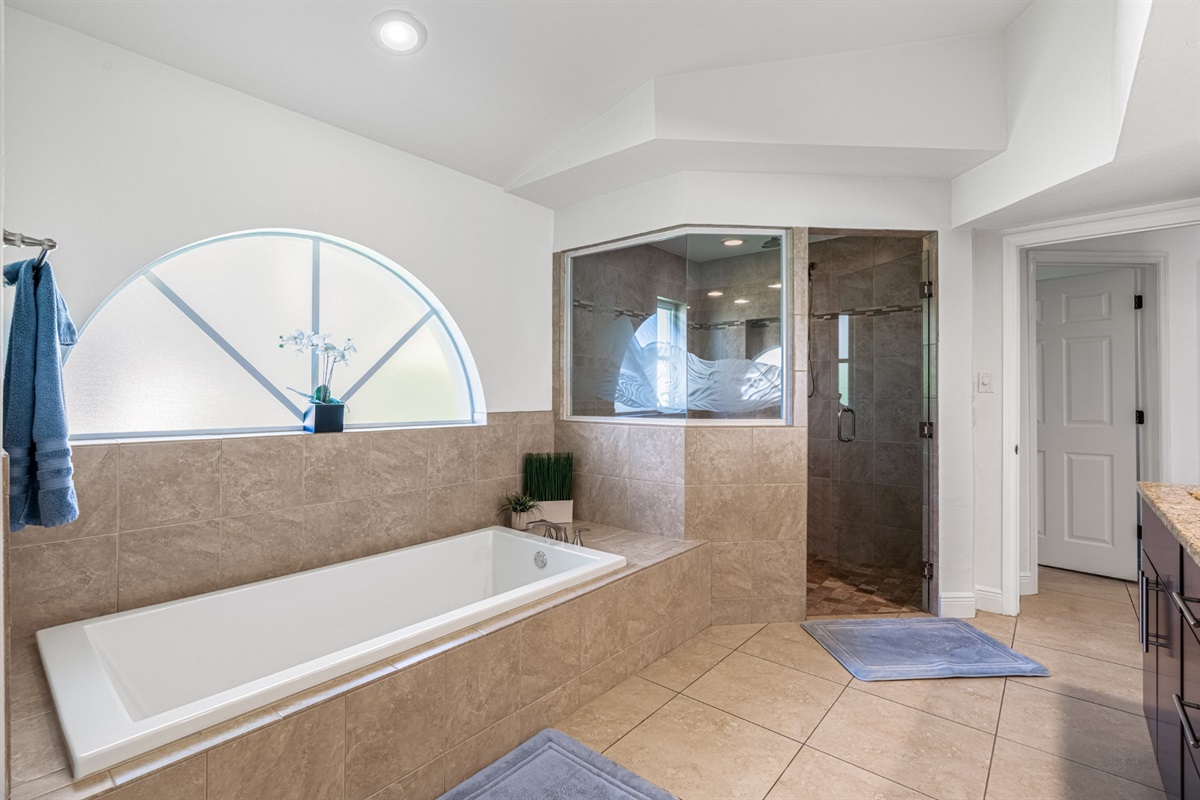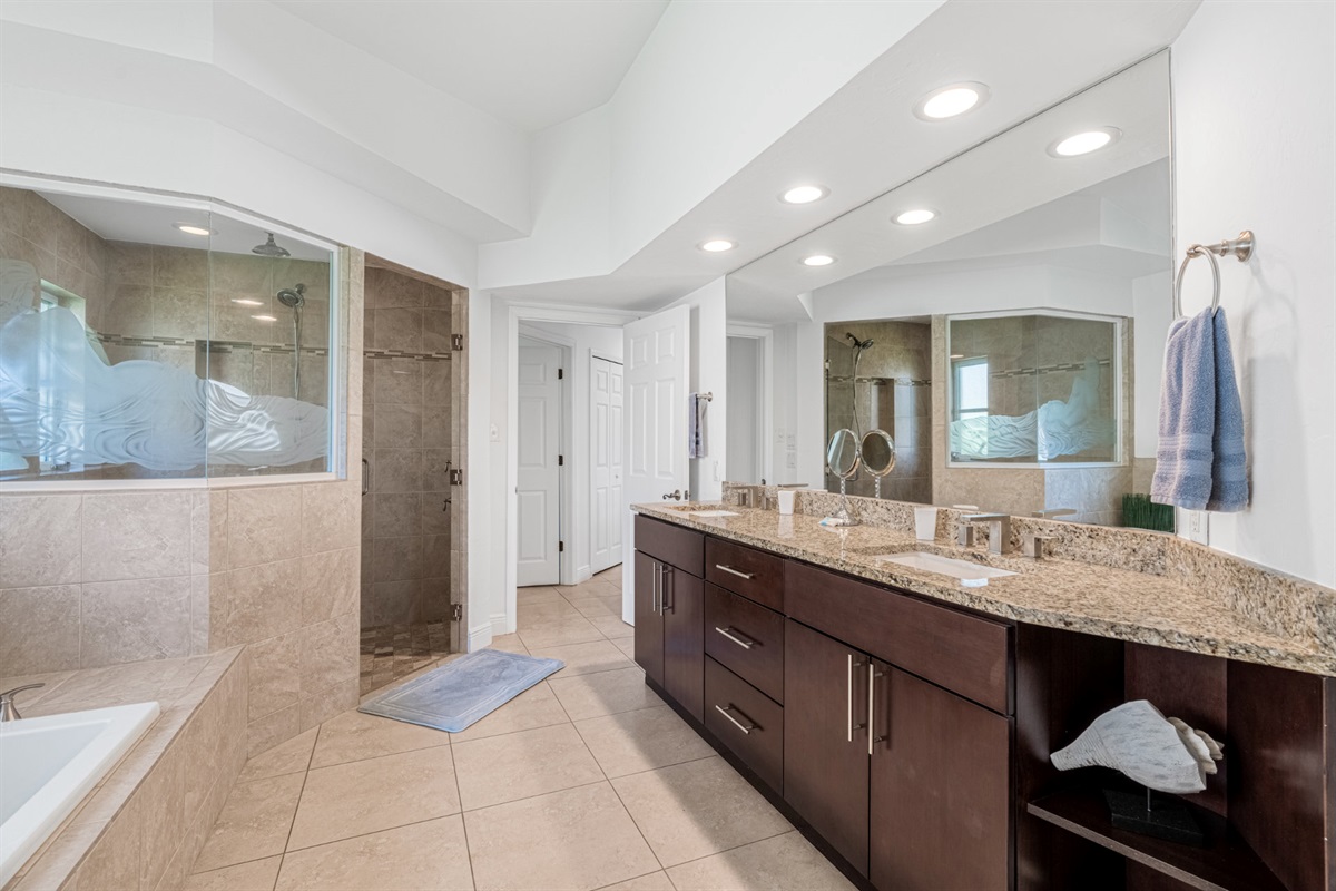 The 2 master bedrooms also have their own TV. The master bedroom number 1 is very spacious and offers a great view down the canal. With 2 queen size beds it gives you the opportunity to host 4 guests in this bedroom or a couple can have 2 big beds without sleeping separated. The associated master bathroom also leaves nothing to be desired. Equipped with a large shower and bath, it offers plenty of space.