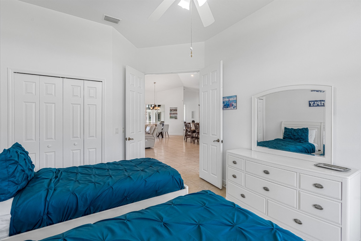 Bedroom number four has 2 twin beds and no tv.
