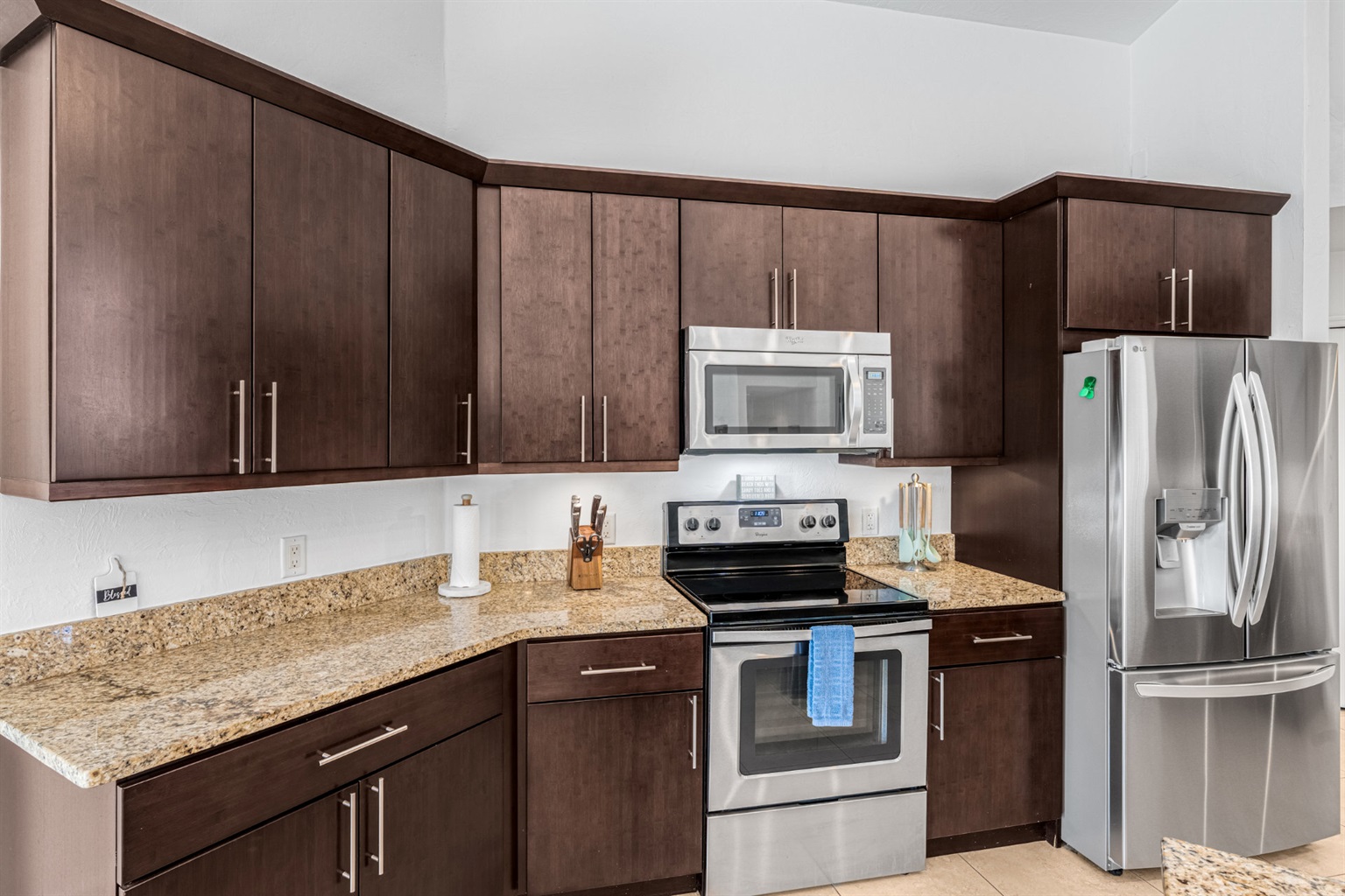 The conversion of the villa was characterized by the idea to make the house bright, spacious and open. From the light-flooded living area you get into all rooms. Our kitchen has been designed to be open and offers all the amenities you could wish for, including espresso machine, icemaker and all new kitchen appliances. In the living area you will find a large TV with Comcast cable TV.