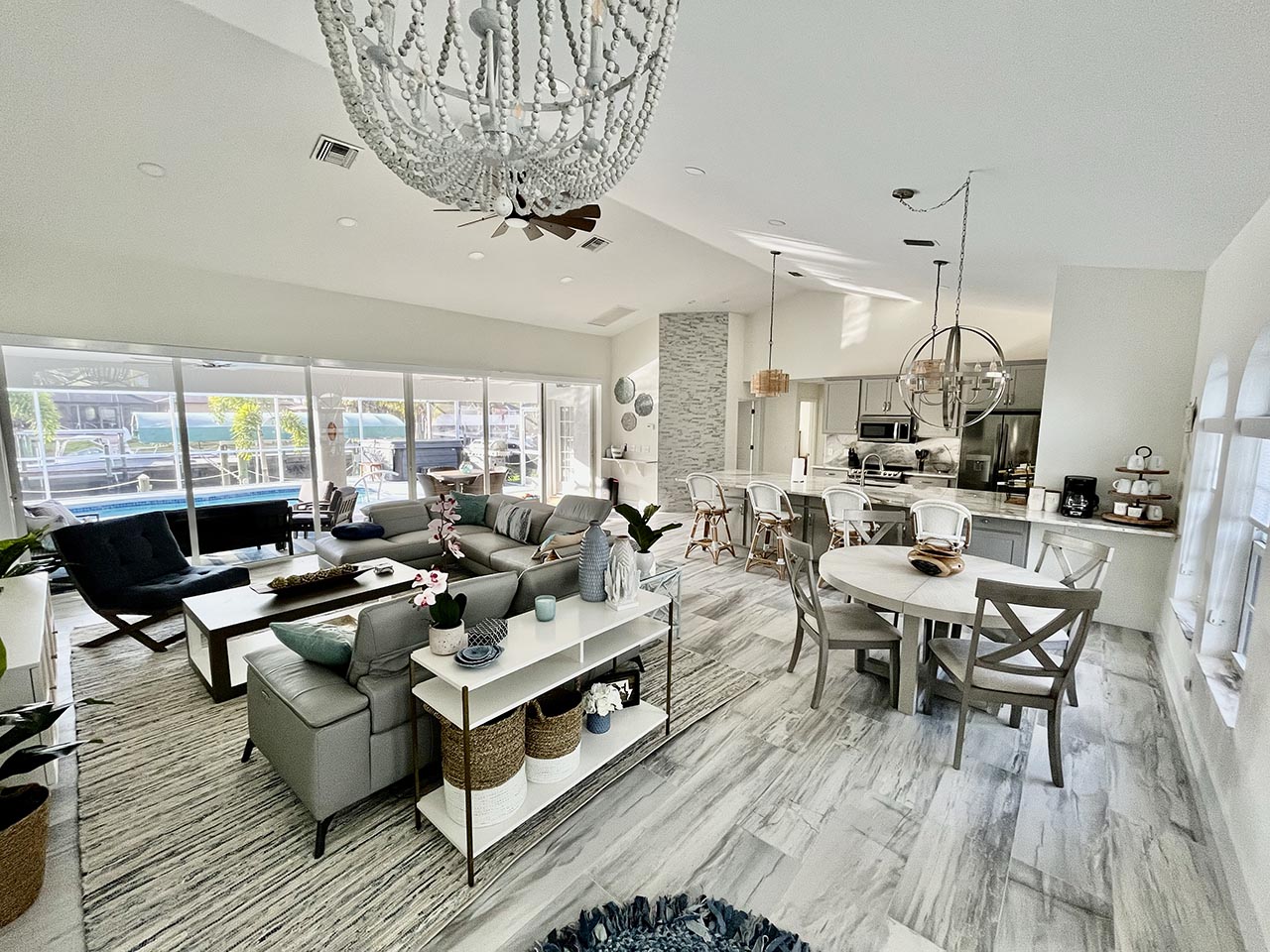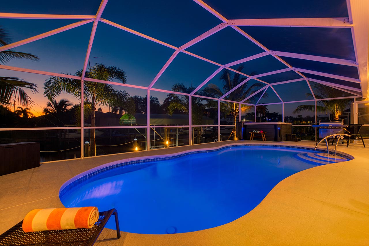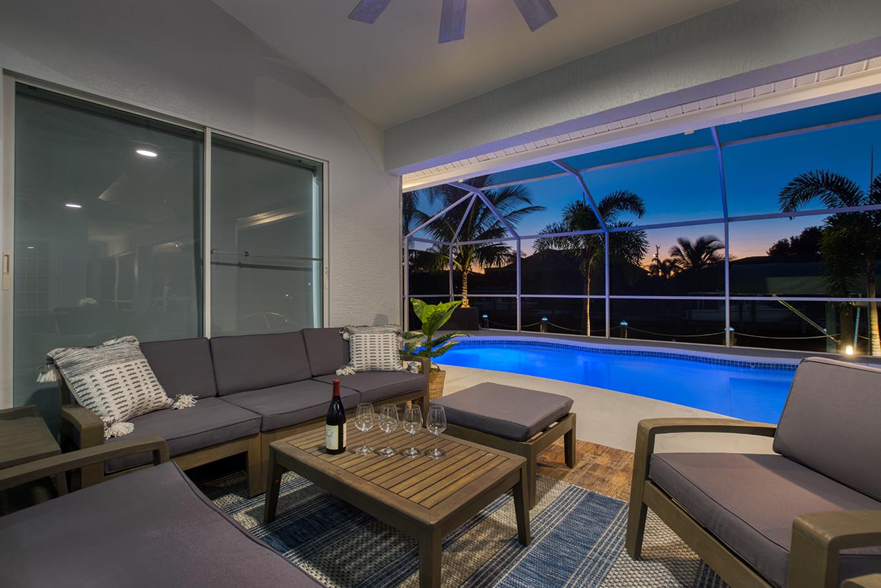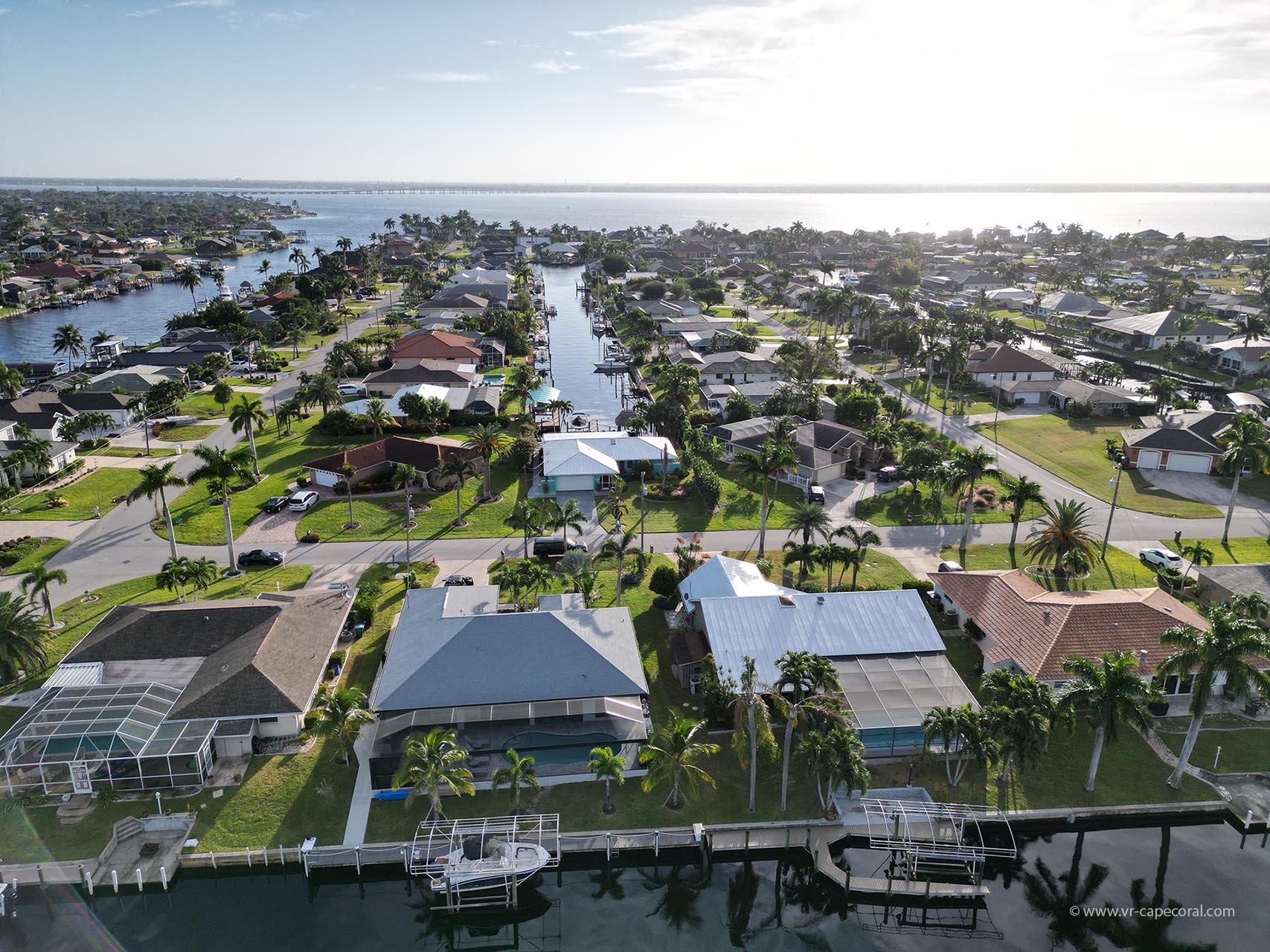 Villa Mosa is located in Cape Coral's most desired Yacht Club location and was remodelled from the scratch until 2022. The villa is located in a quiet neighbourhood and away from other major streets. The western exposure allows you to enjoy beautiful sunsets in the evenings and sunshine all day on the pool deck. The adjoining canal has the maximum width in Cape Coral and on top of that you can enjoy the sunsets from the beginning of this intersection. Privacy to the neighbours is given not only on land side by the beautifully landscaped garden, but by the wide channel also water side. Very often you also can see dolphins and manatees right at the dock.
