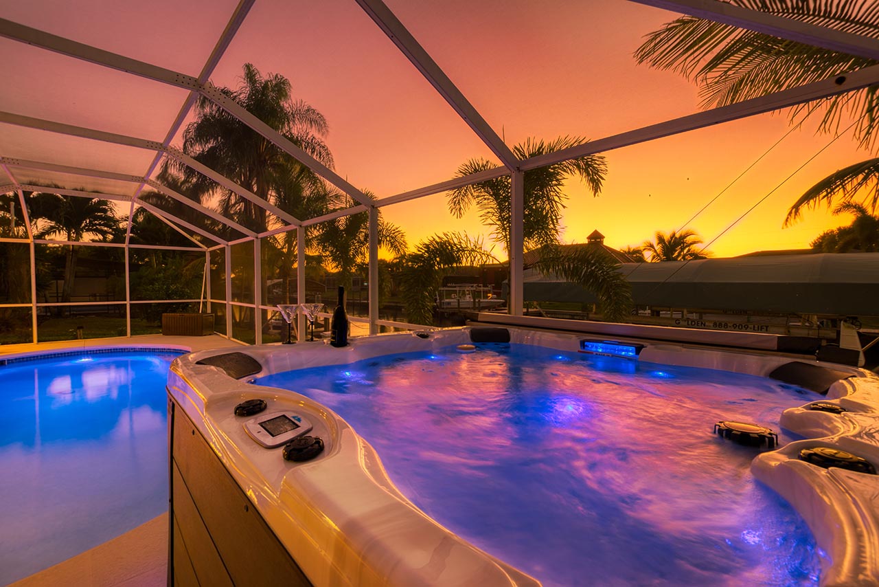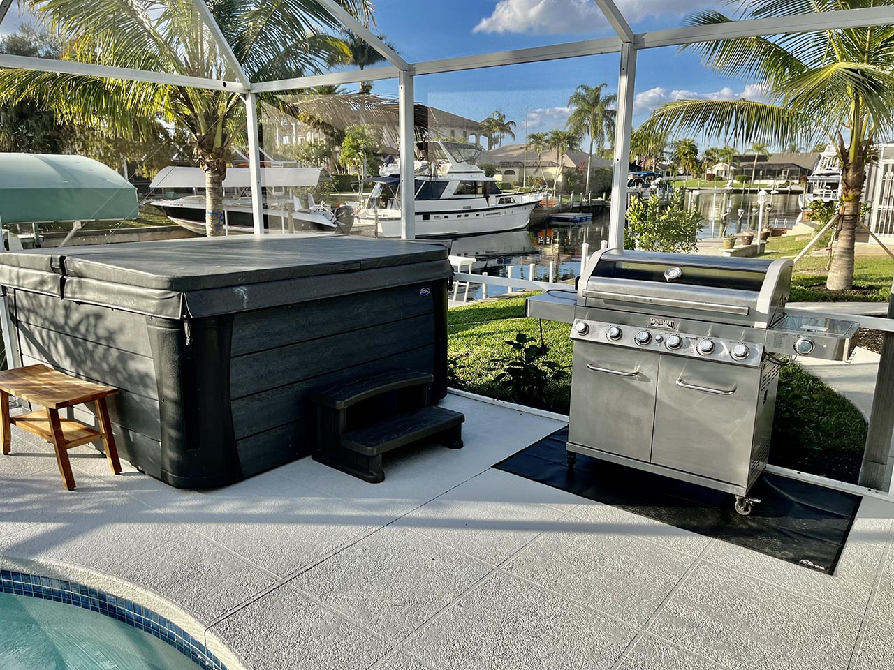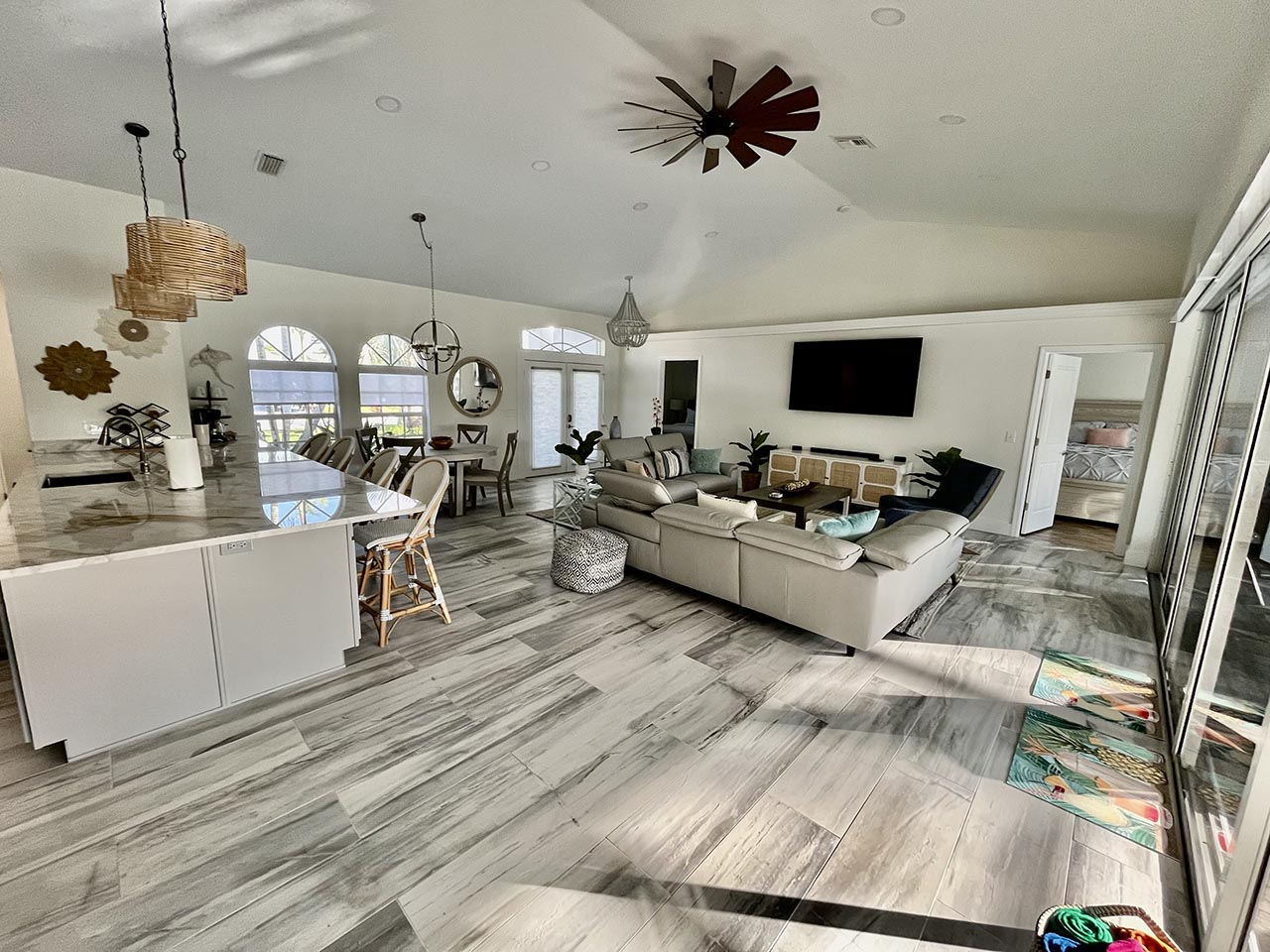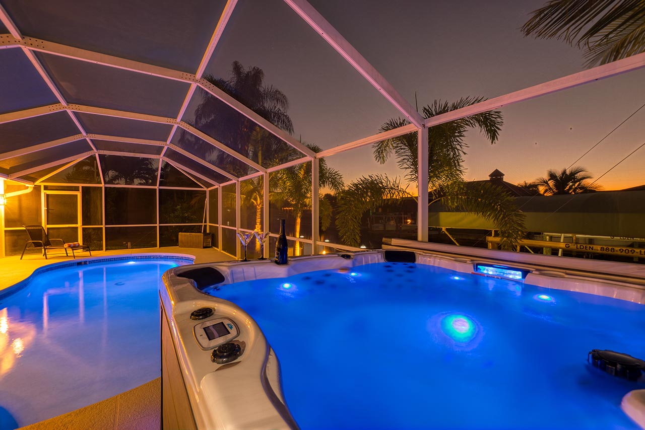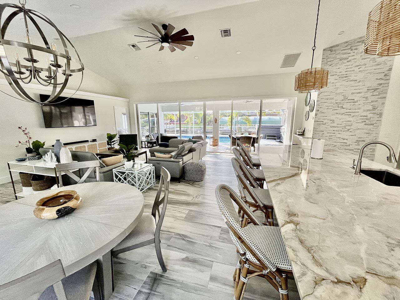 Villa Mosa is located in Cape Coral's most desired Yacht Club location and was remodelled from the scratch until 2022. The villa is located in a quiet neighbourhood and away from other major streets. The western exposure allows you to enjoy beautiful sunsets in the evenings and sunshine all day on the pool deck. The adjoining canal has the maximum width in Cape Coral and on top of that you can enjoy the sunsets from the beginning of this intersection. Privacy to the neighbours is given not only on land side by the beautifully landscaped garden, but by the wide channel also water side. Very often you also can see dolphins and manatees right at the dock.