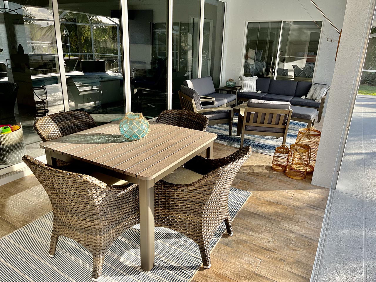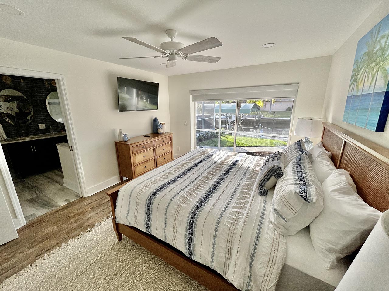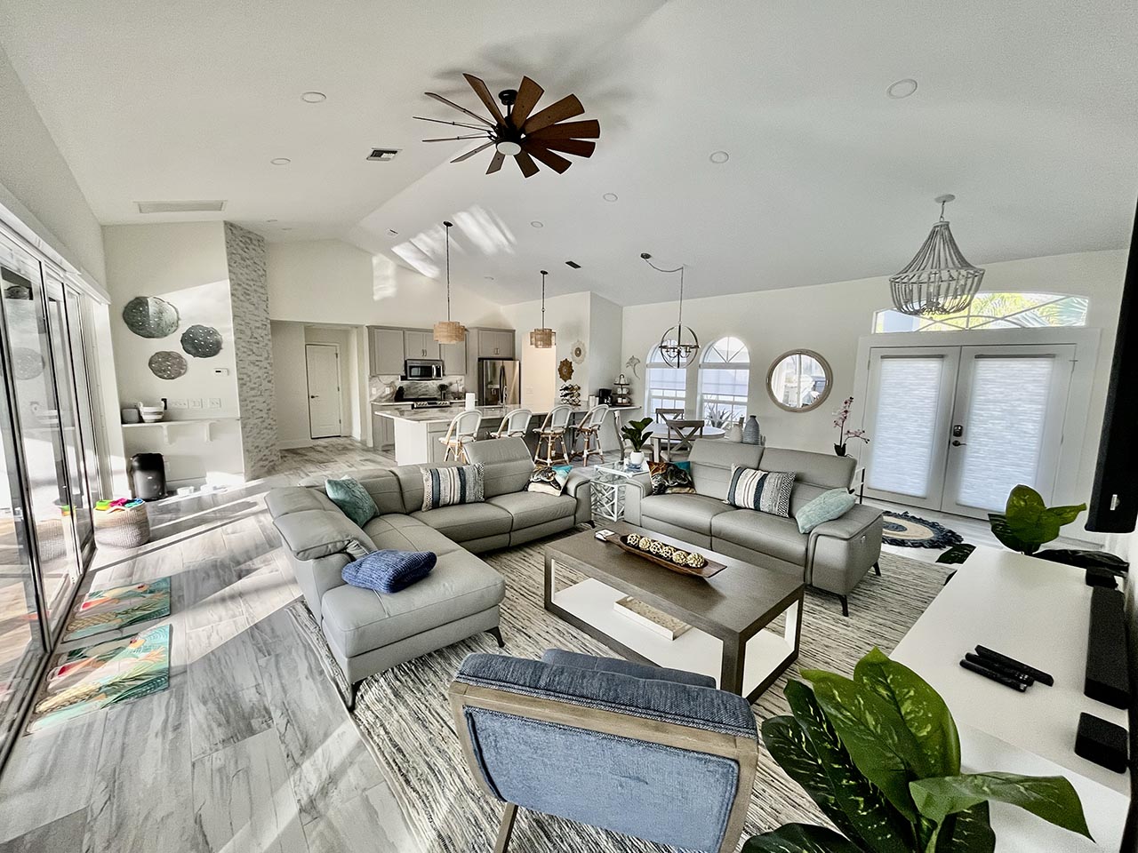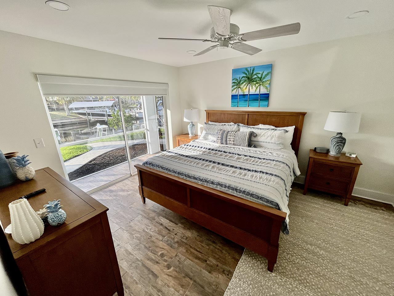Villa Mosa is located in Cape Coral's most desired Yacht Club location and was remodelled from the scratch until 2022. The villa is located in a quiet neighbourhood and away from other major streets. The western exposure allows you to enjoy beautiful sunsets in the evenings and sunshine all day on the pool deck. The adjoining canal has the maximum width in Cape Coral and on top of that you can enjoy the sunsets from the beginning of this intersection. Privacy to the neighbours is given not only on land side by the beautifully landscaped garden, but by the wide channel also water side. Very often you also can see dolphins and manatees right at the dock.