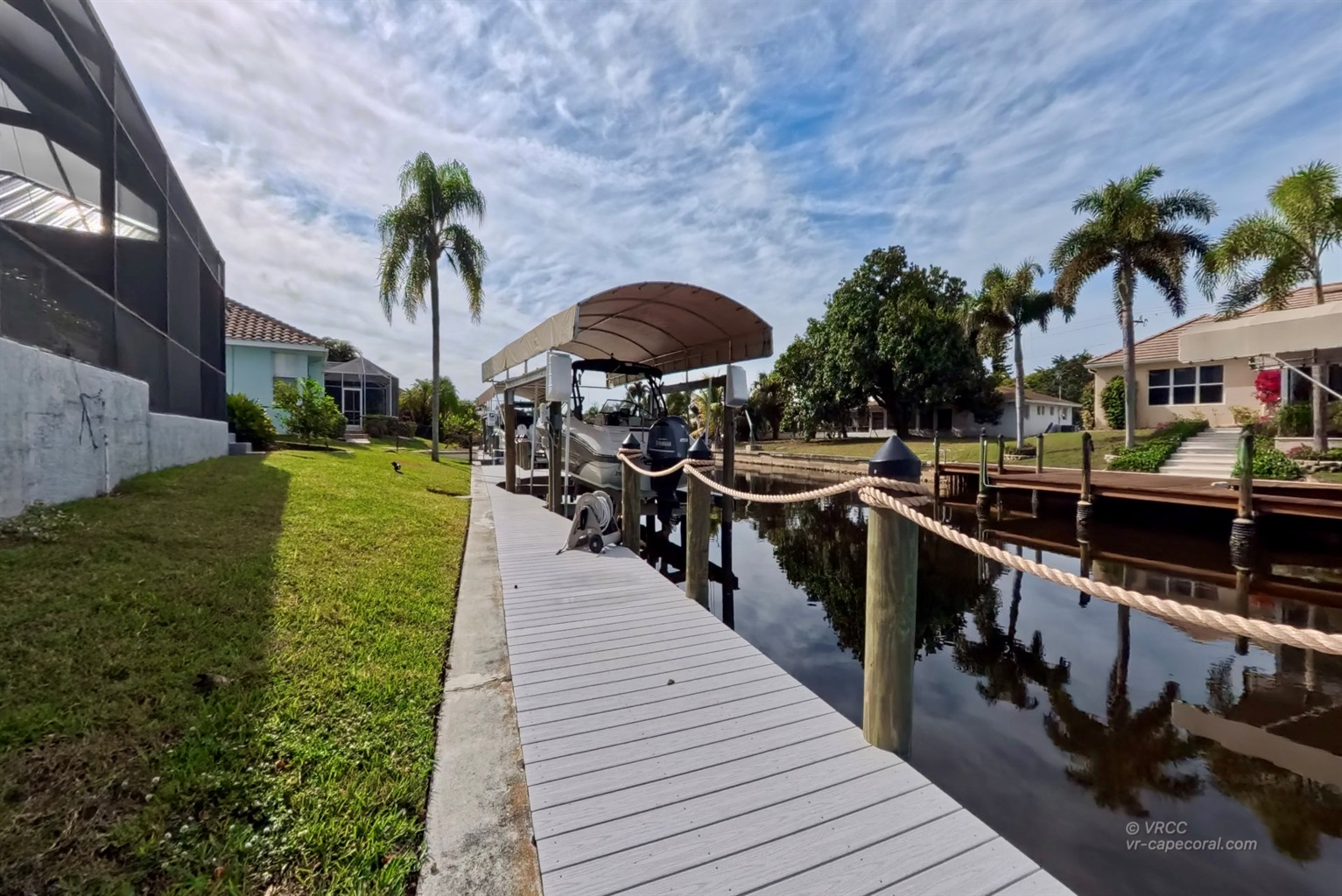 The villa itself is at the end of a street with no noticeable traffic. There is no quieter vacation. The Yachtclub Area is characterised above all by the many new villas on the river and the lovingly designed gardens. Restaurants and shops can be reached with the in-house bicycles as well as on foot. Cape Coral Beach is just a few minutes' walk away.