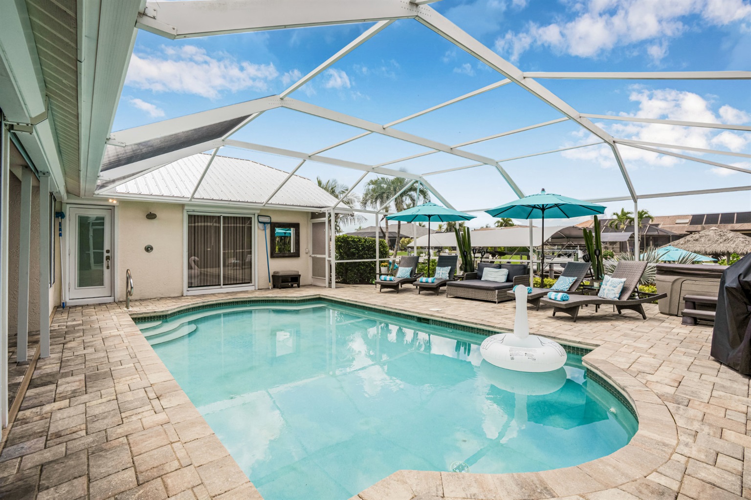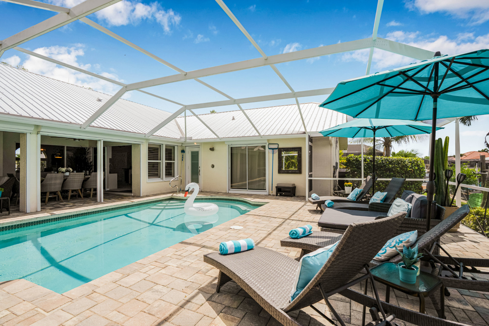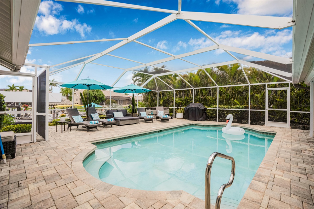 4 Bedrooms • 2 Bathrooms 2 Baths • Sleeps 5-8Nestled in the heart of Cape Coral, this beautifully bright vacation rental offers an exquisite blend of comfort, style, and Floridian charm.