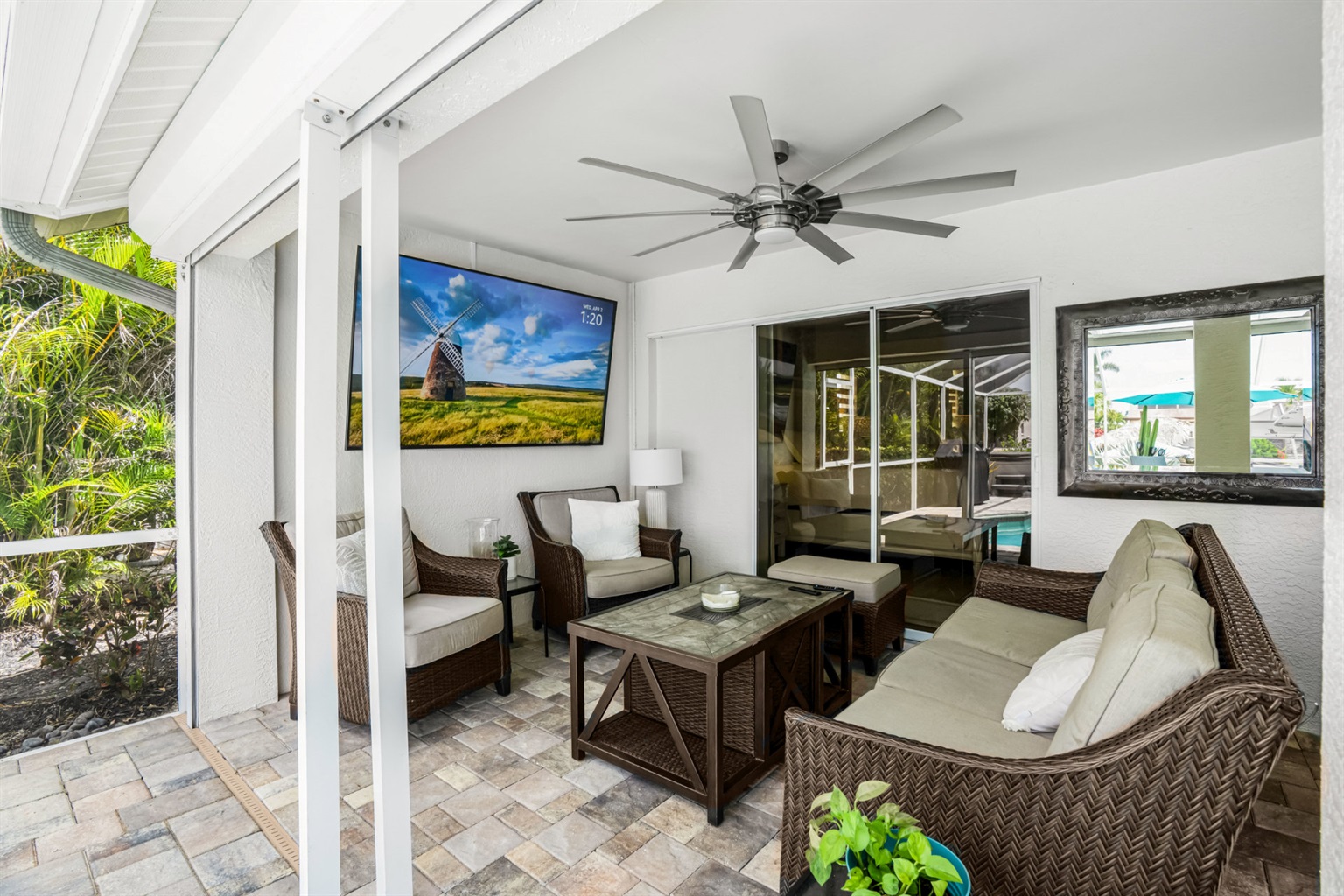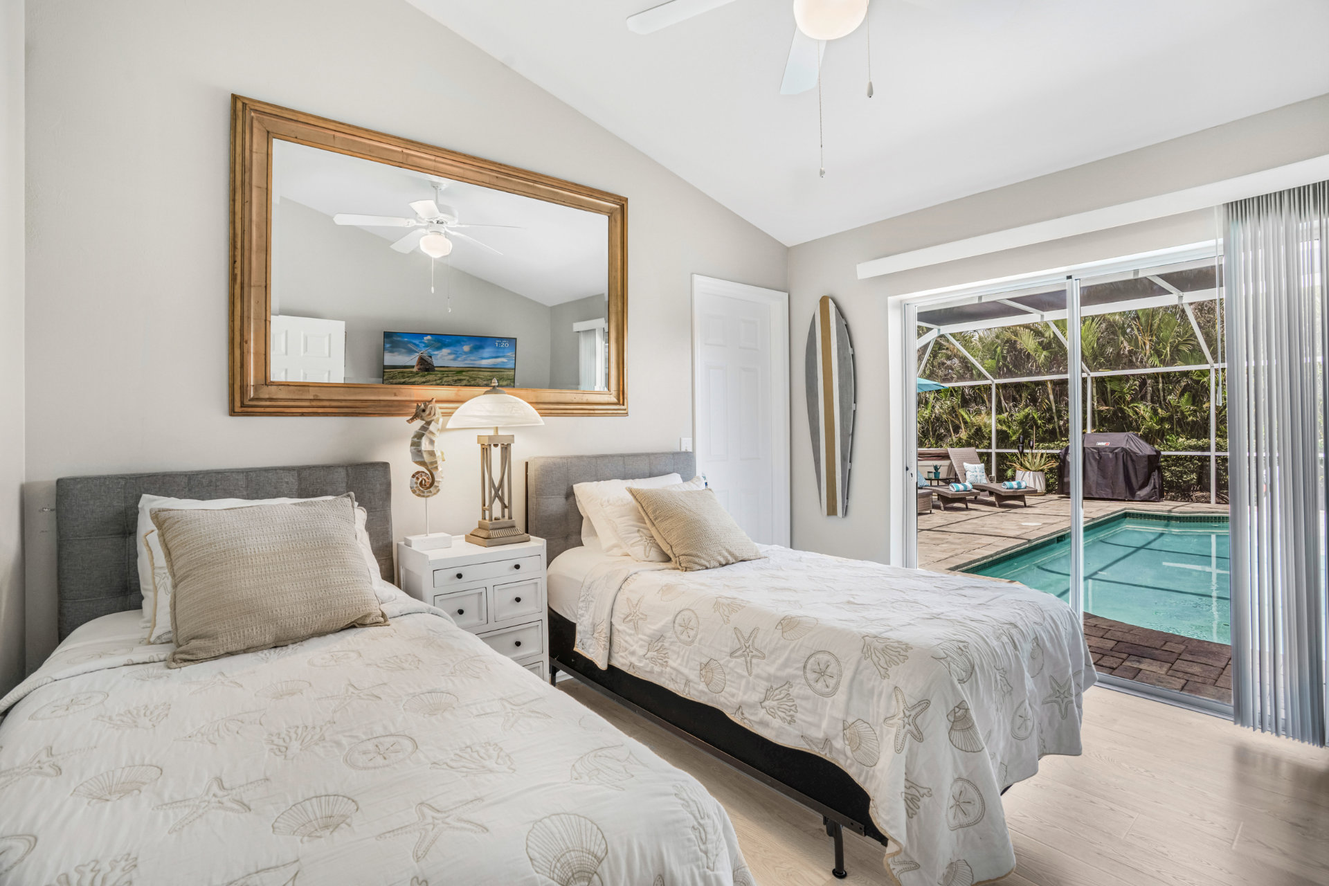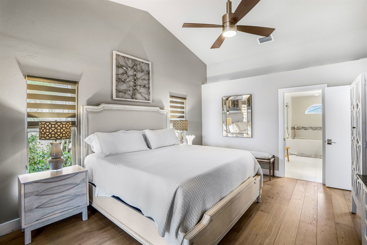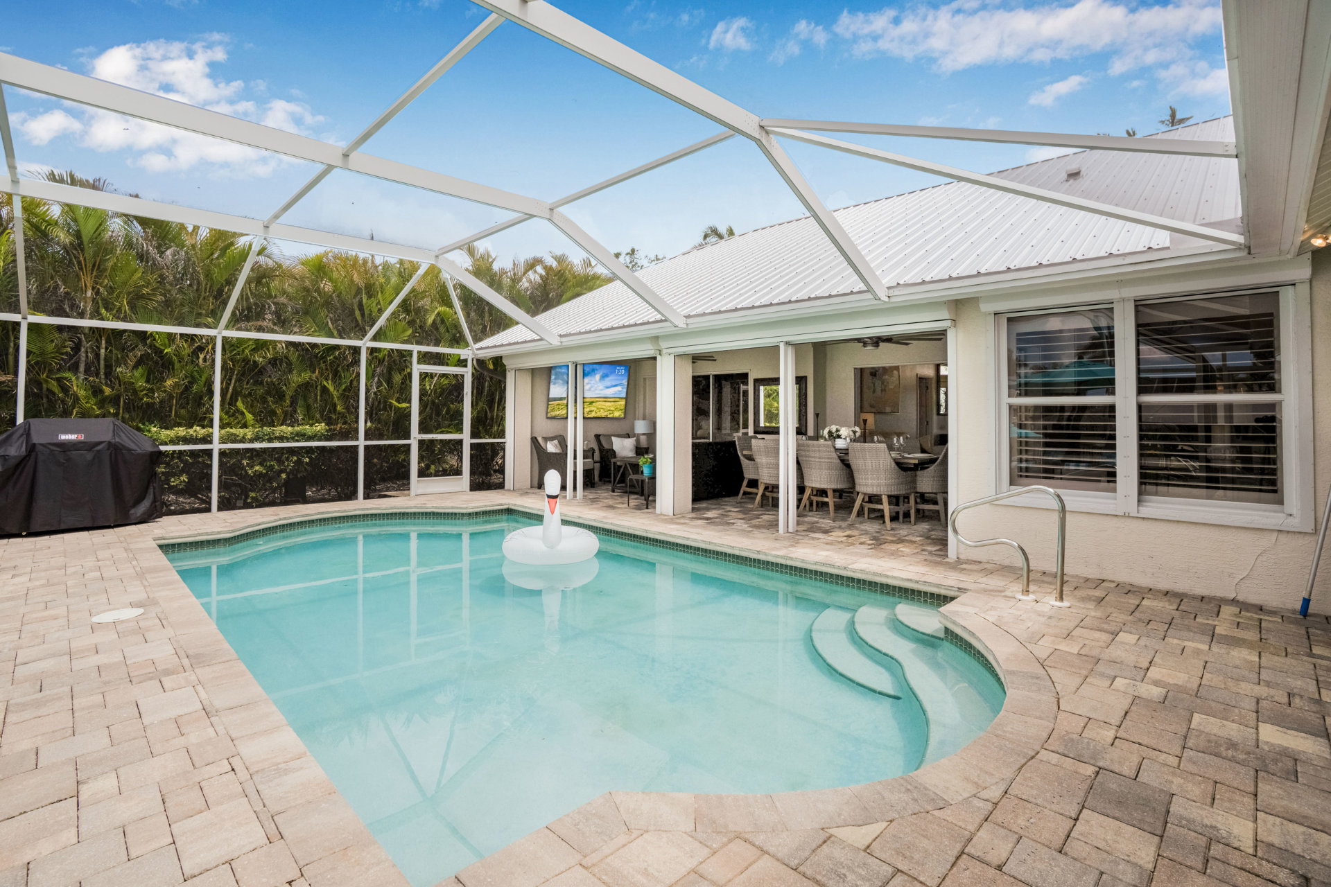 One of the highlights of this cozy Villa is the private, screened-in lanai, complete with a heated pool that invites you to dip in and unwind. Entertain and dine with friends with an upgraded BBQ area and separate dining and conversational areas, complete with huge flatscreen TV. To top it off, as the sun sets, this outdoor living space turns into your own little oasis, allowing you to experience our famous sunsets and starry skies in tranquil comfort.