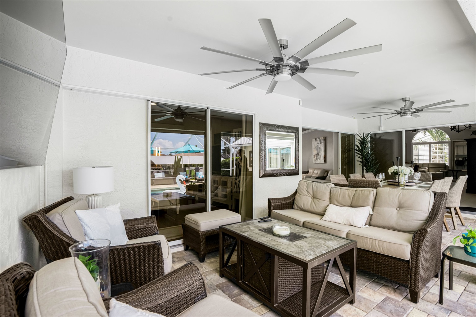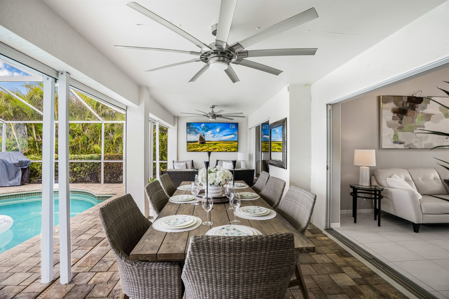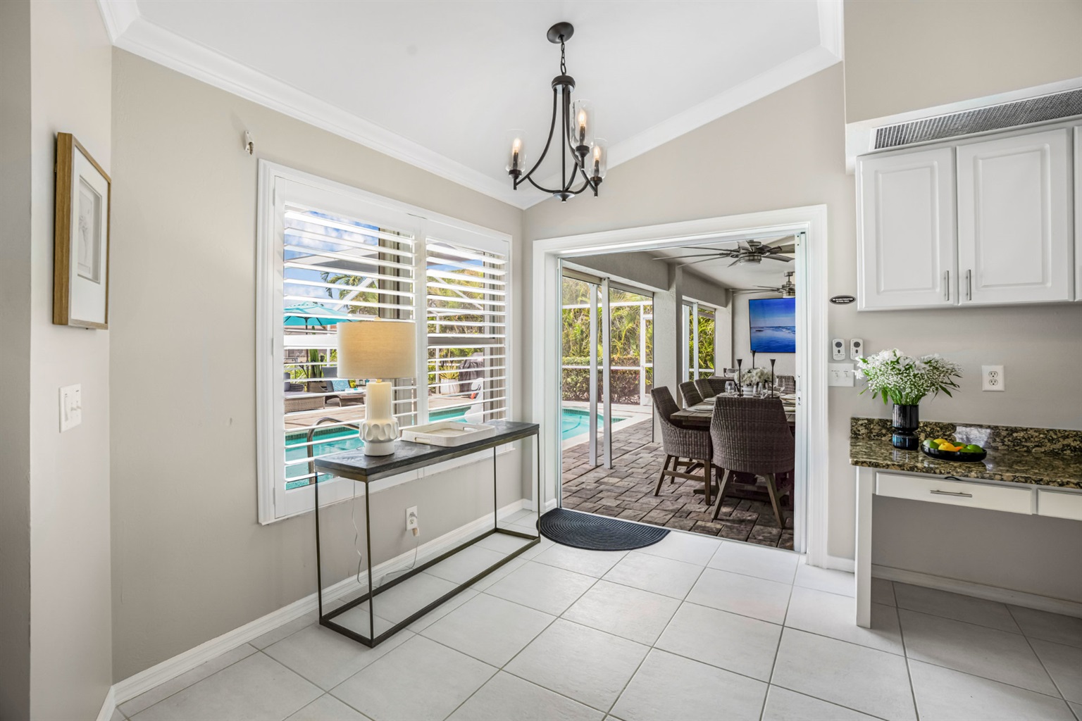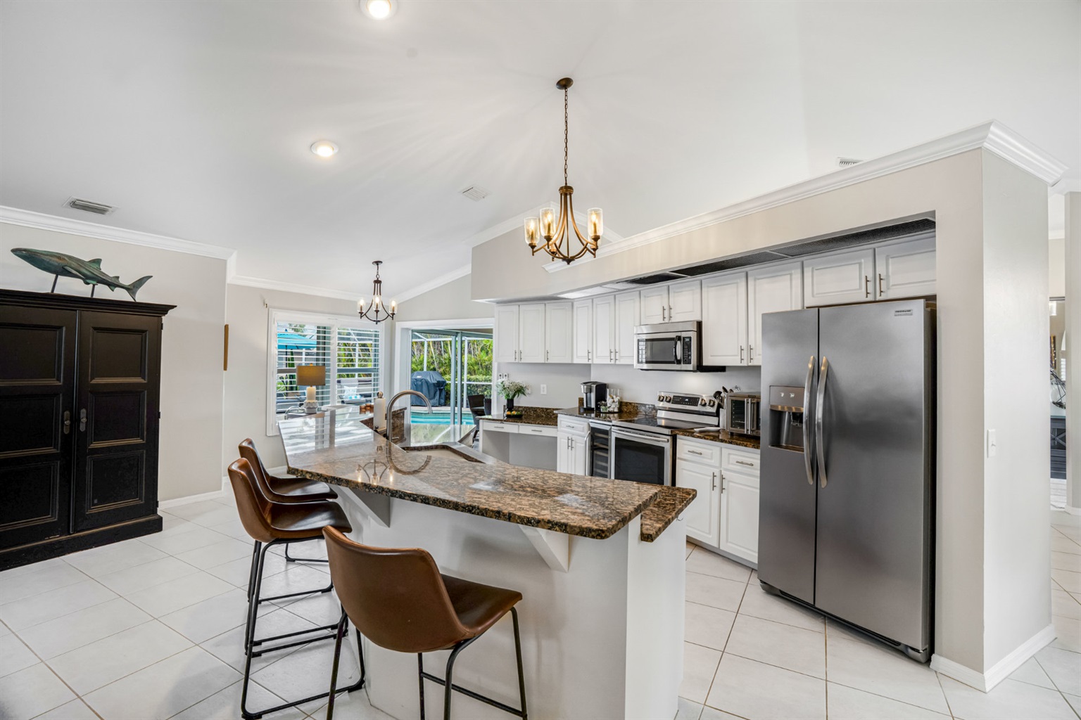 One of the highlights of this cozy Villa is the private, screened-in lanai, complete with a heated pool that invites you to dip in and unwind. Entertain and dine with friends with an upgraded BBQ area and separate dining and conversational areas, complete with huge flatscreen TV. To top it off, as the sun sets, this outdoor living space turns into your own little oasis, allowing you to experience our famous sunsets and starry skies in tranquil comfort.