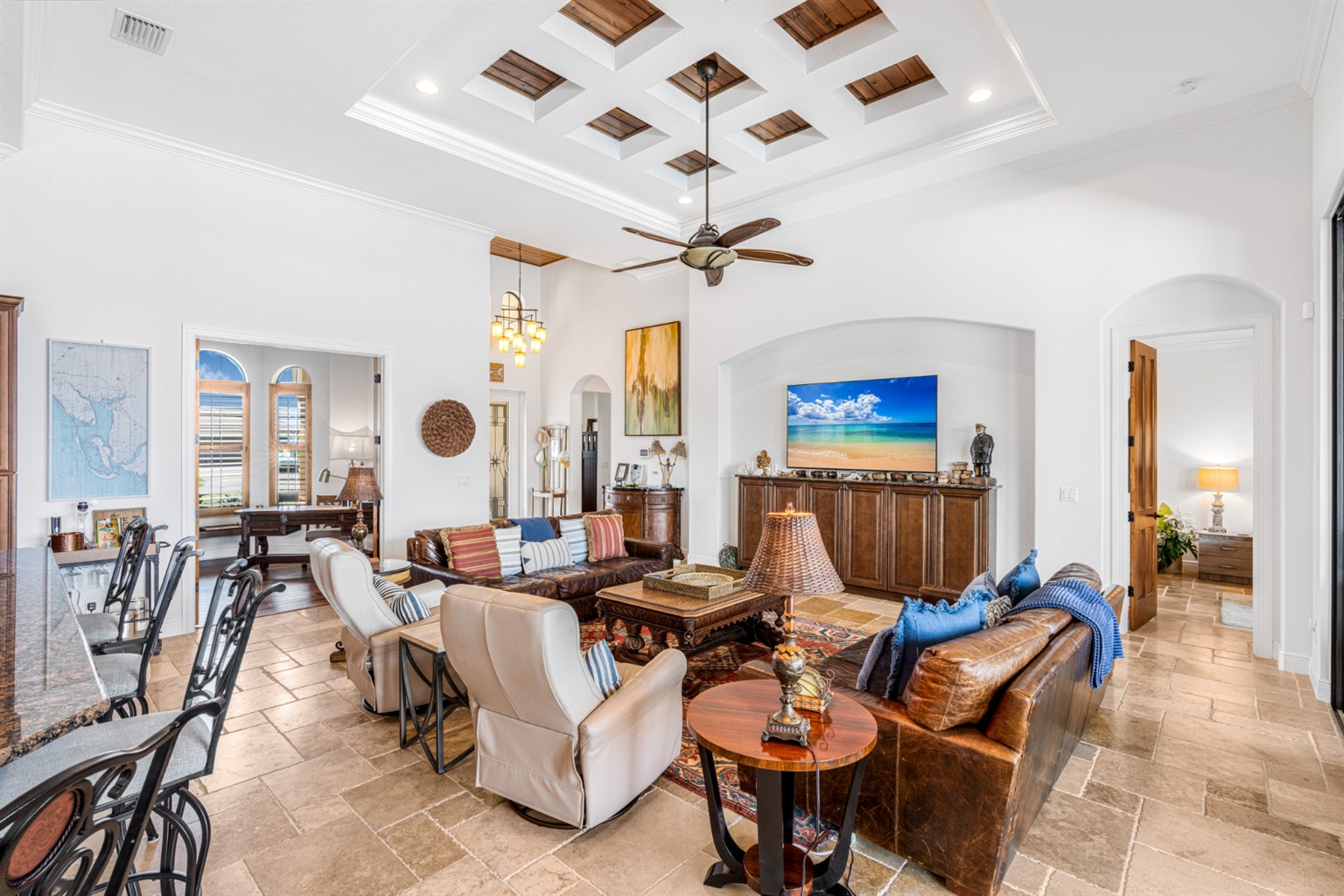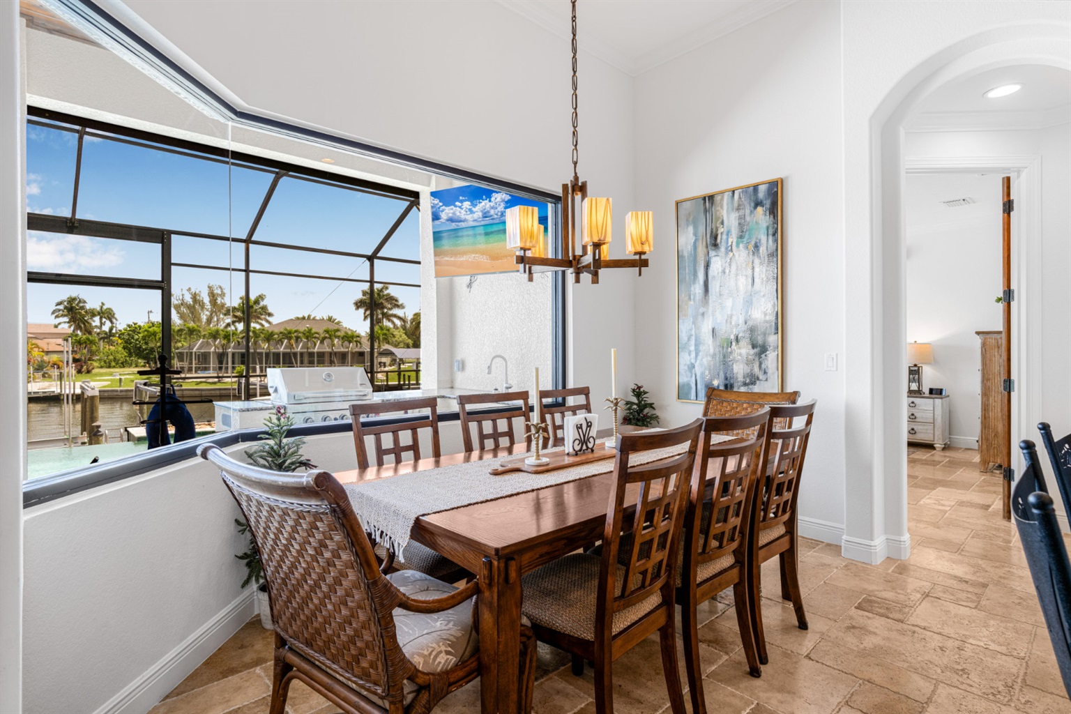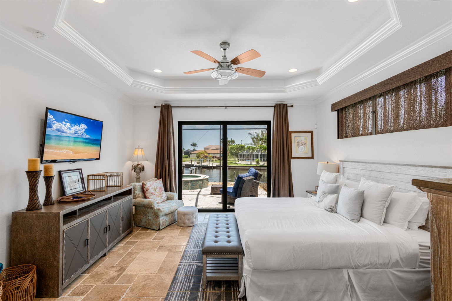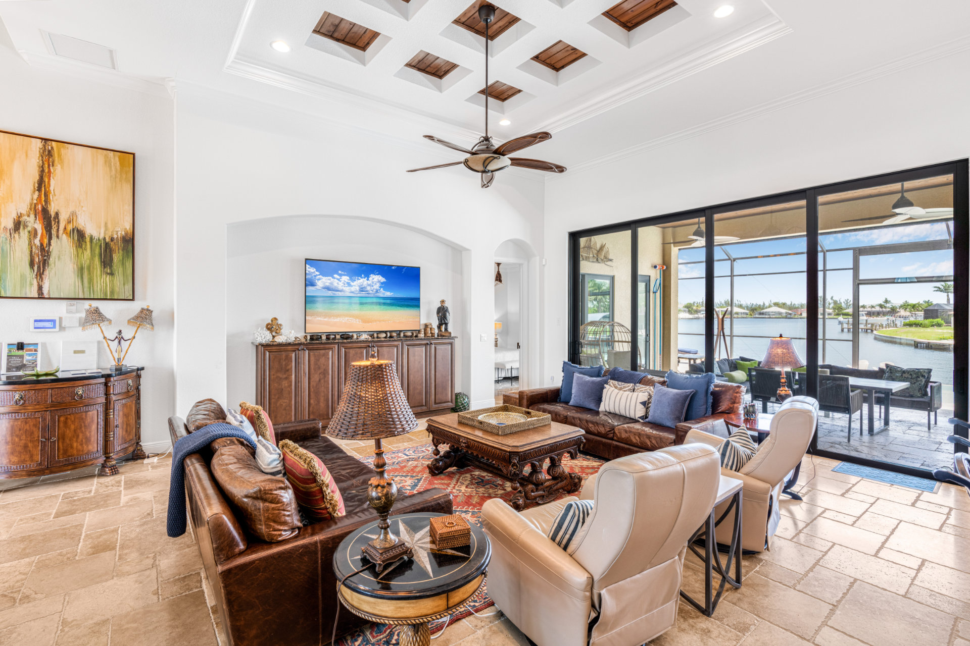 The villa's lanai offers a breathtaking view, ensuring plentiful sunshine for idyllic days of lounging by the pool or soaking in the spa. Bring your boat or rent one of ours to keep on your backyard dock. Enjoy world-class fishing or cruising on the sparkling gulf waters. Your perfect tropical vacation home awaits!