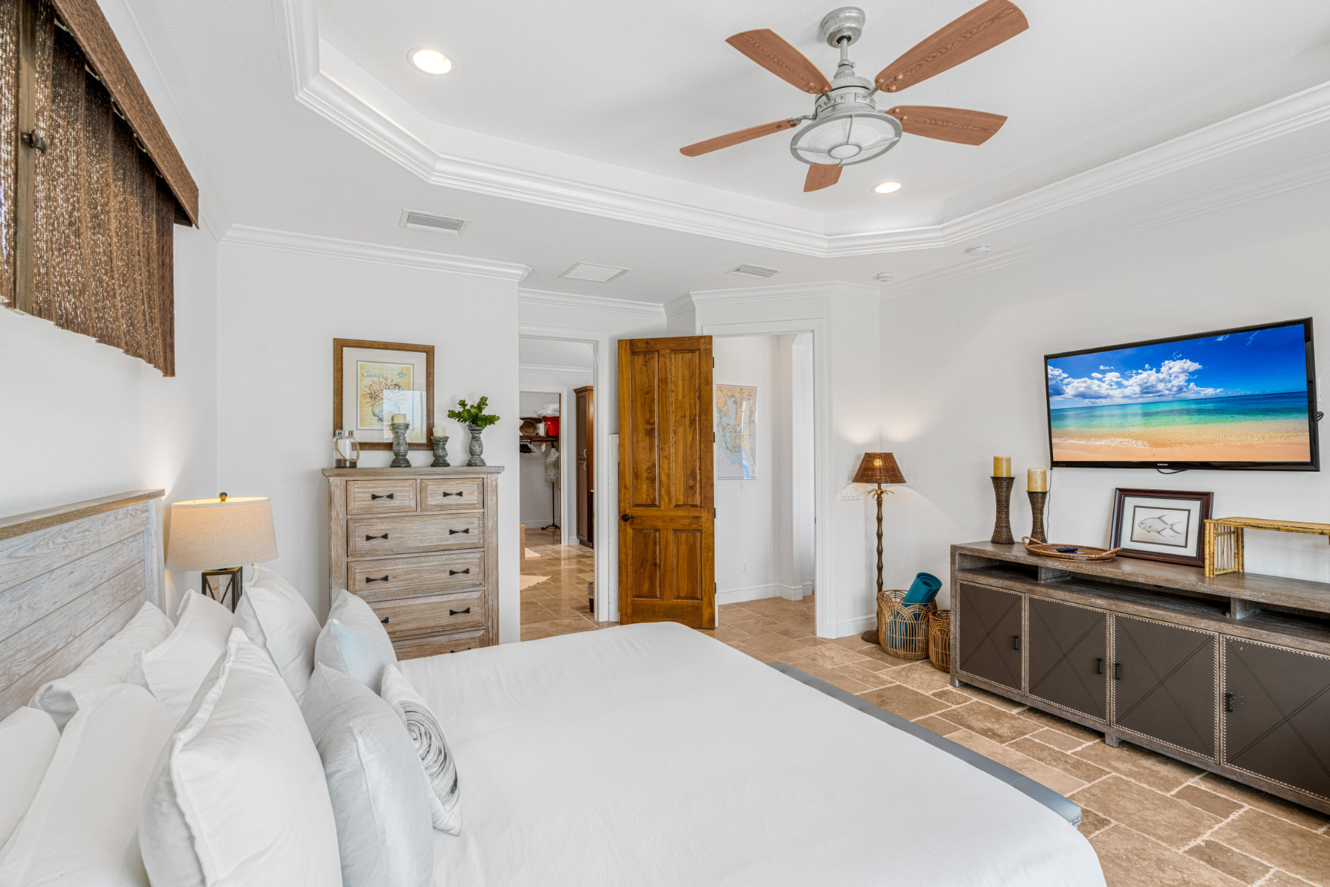 4 Bedrooms • 3 Bathrooms 3 Baths • Sleeps 6-12Villa Paradisio - Located less than 500 yards from the Stonis Park, Restaurants, Tennis Courts, and the playground, Villa Paradiso offers an ideal location and has everything you could ever dream of for a relaxing Florida vacation. The 4 bedrooms and 3 full bathrooms - including one with convenient pool access, provide plenty of space to comfortably accommodate everyone. This house offers a king sized bed in the primary room, a queen sized bed in one room, 2 double beds in another guest room and a bunk bed with double beds in the final bedroom.