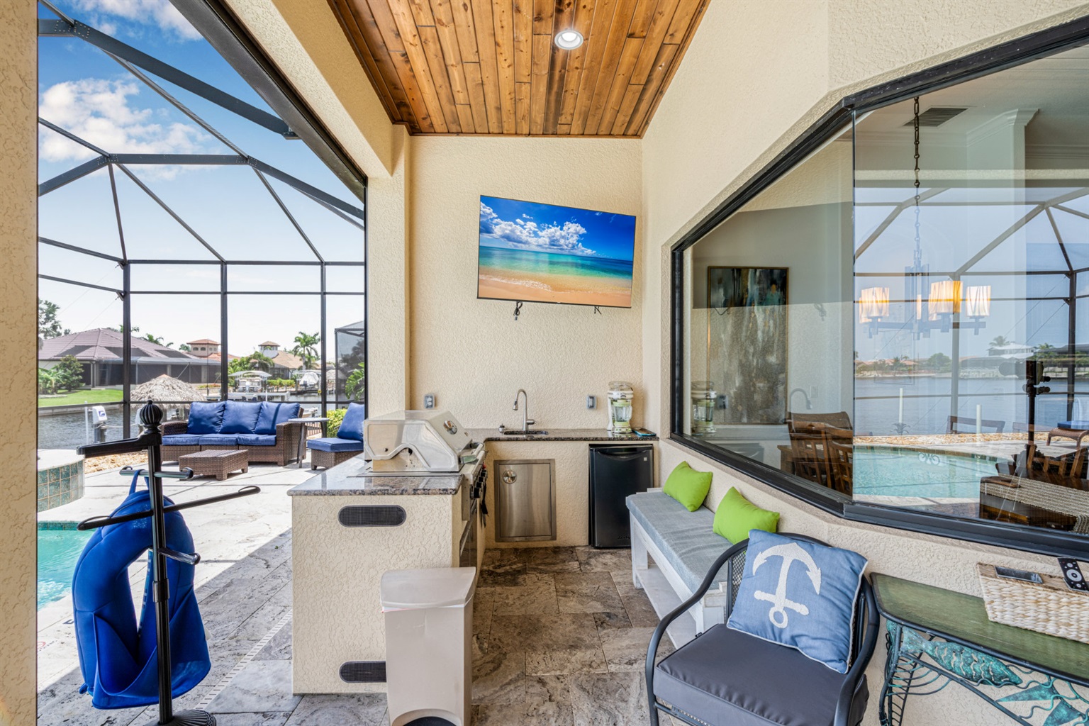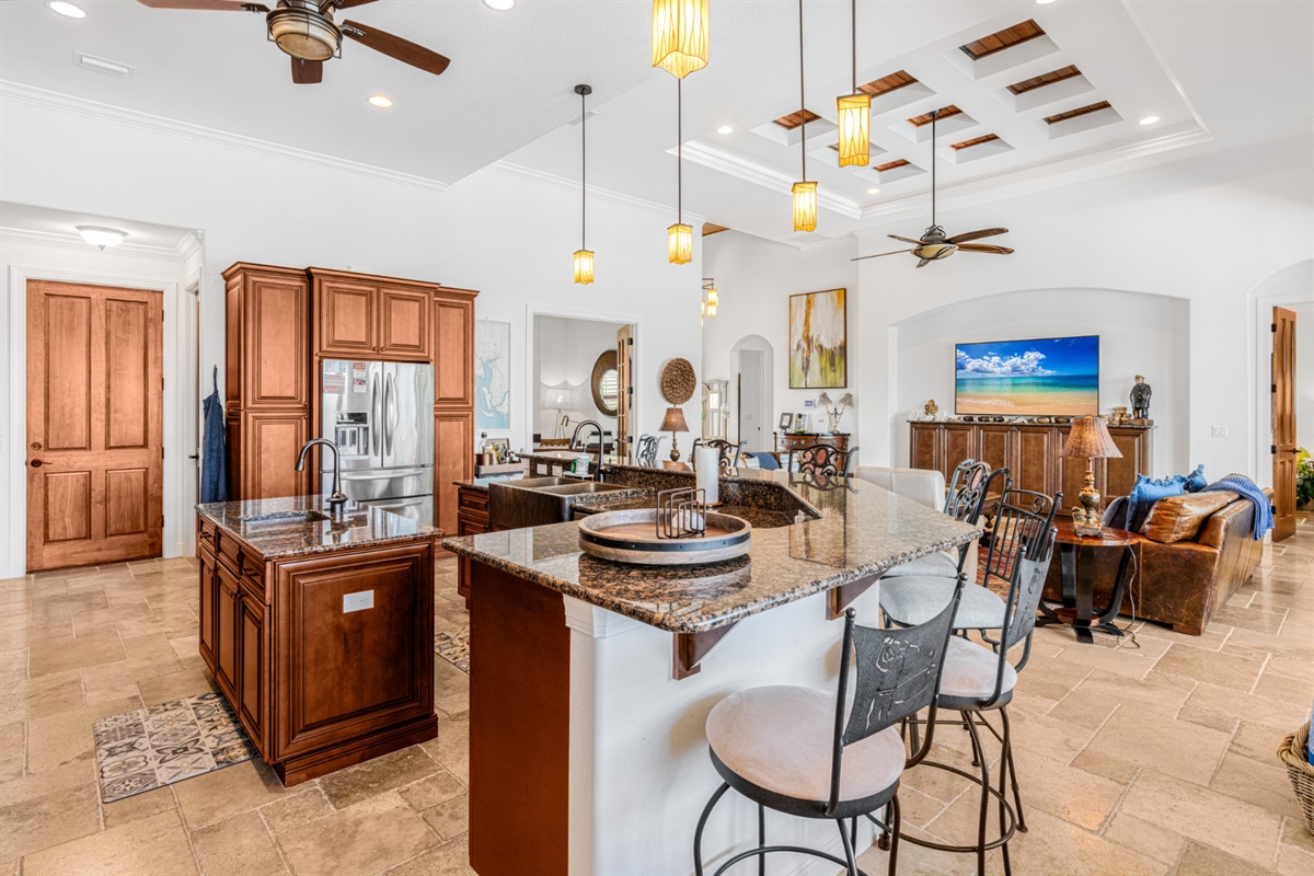 The chef's kitchen is equipped with stainless steel appliances and all of the cooking supplies you'll need to prepare gourmet meals at home. For bbq lovers, our outdoor kitchen offers everything a true chef would look for plus the view. If you prefer to dine out, there are countless eateries to please any palate located just a few minutes away.