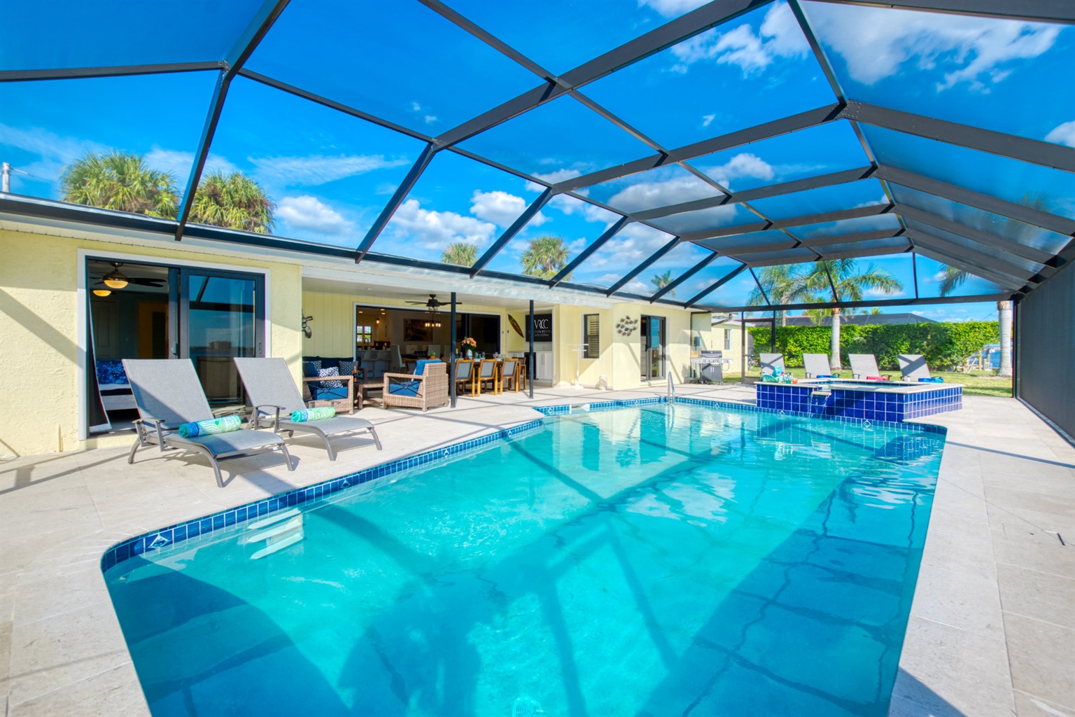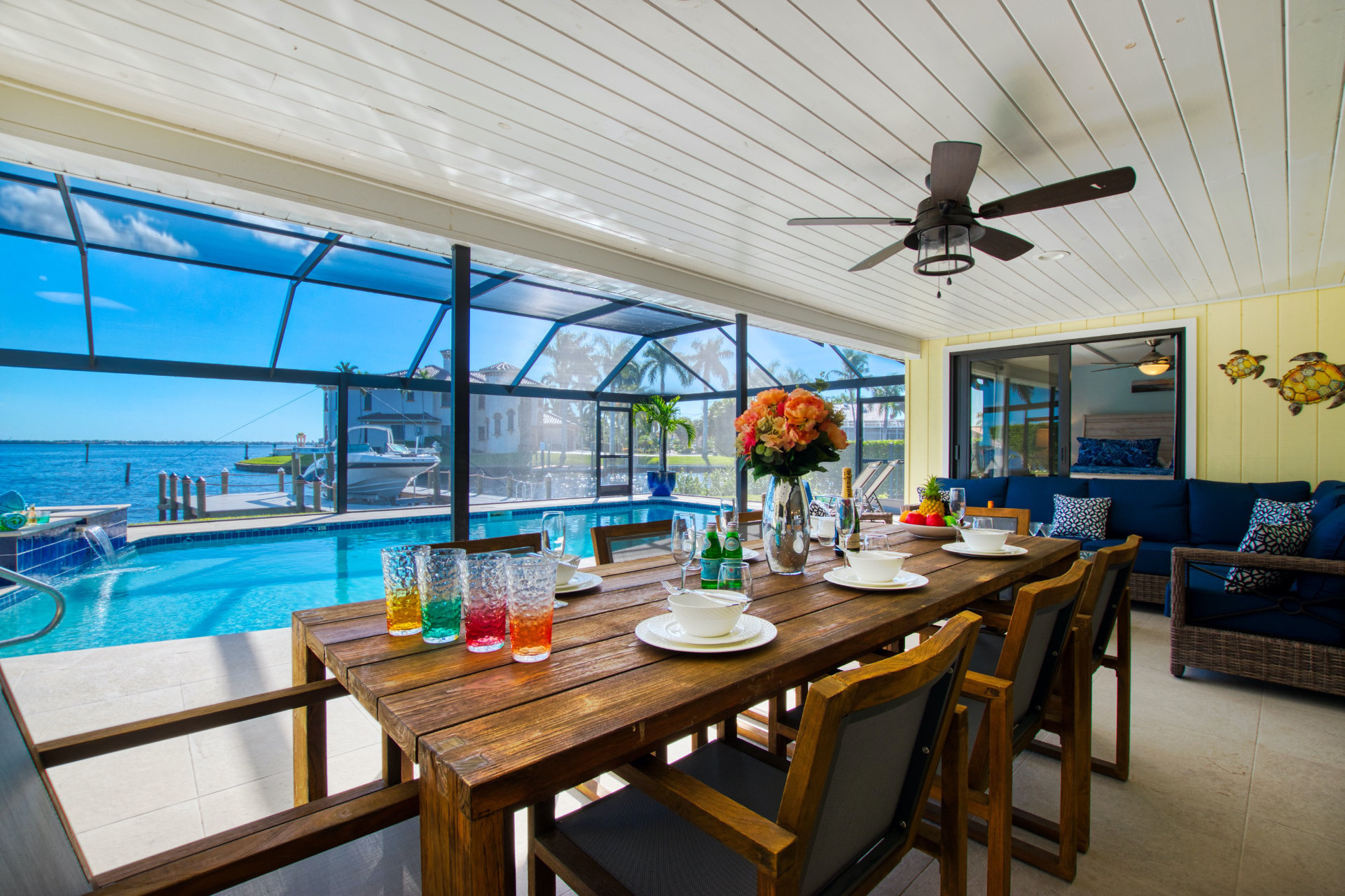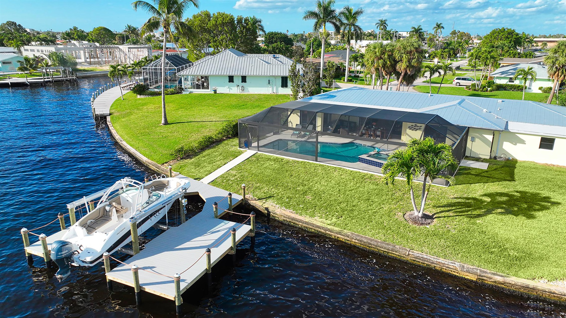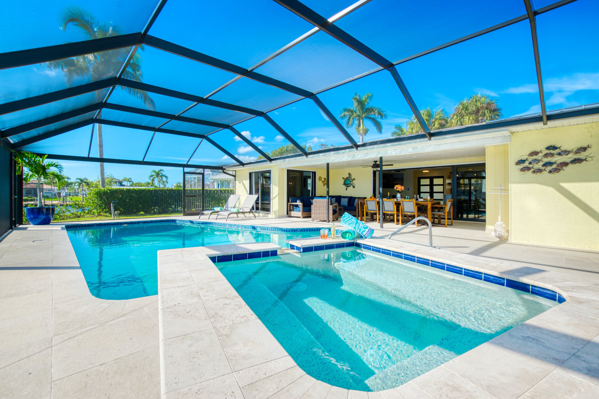The villa's lanai has a coveted southern exposure, ensuring plentiful sunshine for idyllic days of lounging by the pool or soaking in the spa. Bring your boat or rent one of ours to keep on your backyard dock. Enjoy world-class fishing or cruising on the sparkling gulf waters. It is only a two-minute ride down the canal to open water with no bridges to slow you down. Or explore the local sights on two wheels with the included bicycles. Your perfect tropical vacation home awaits!