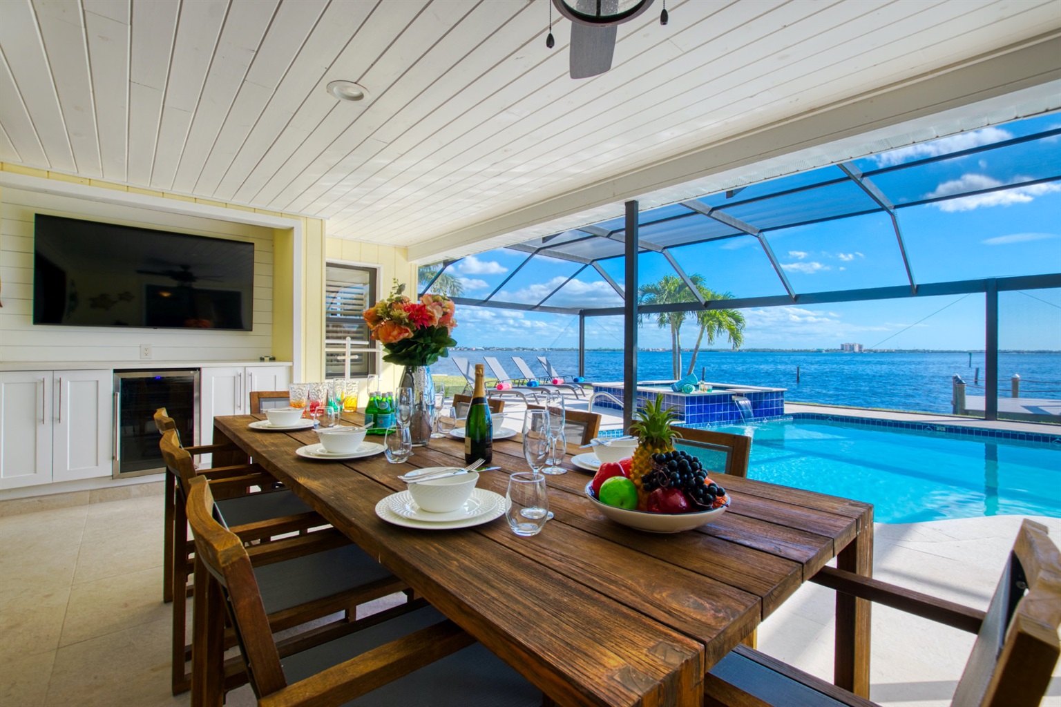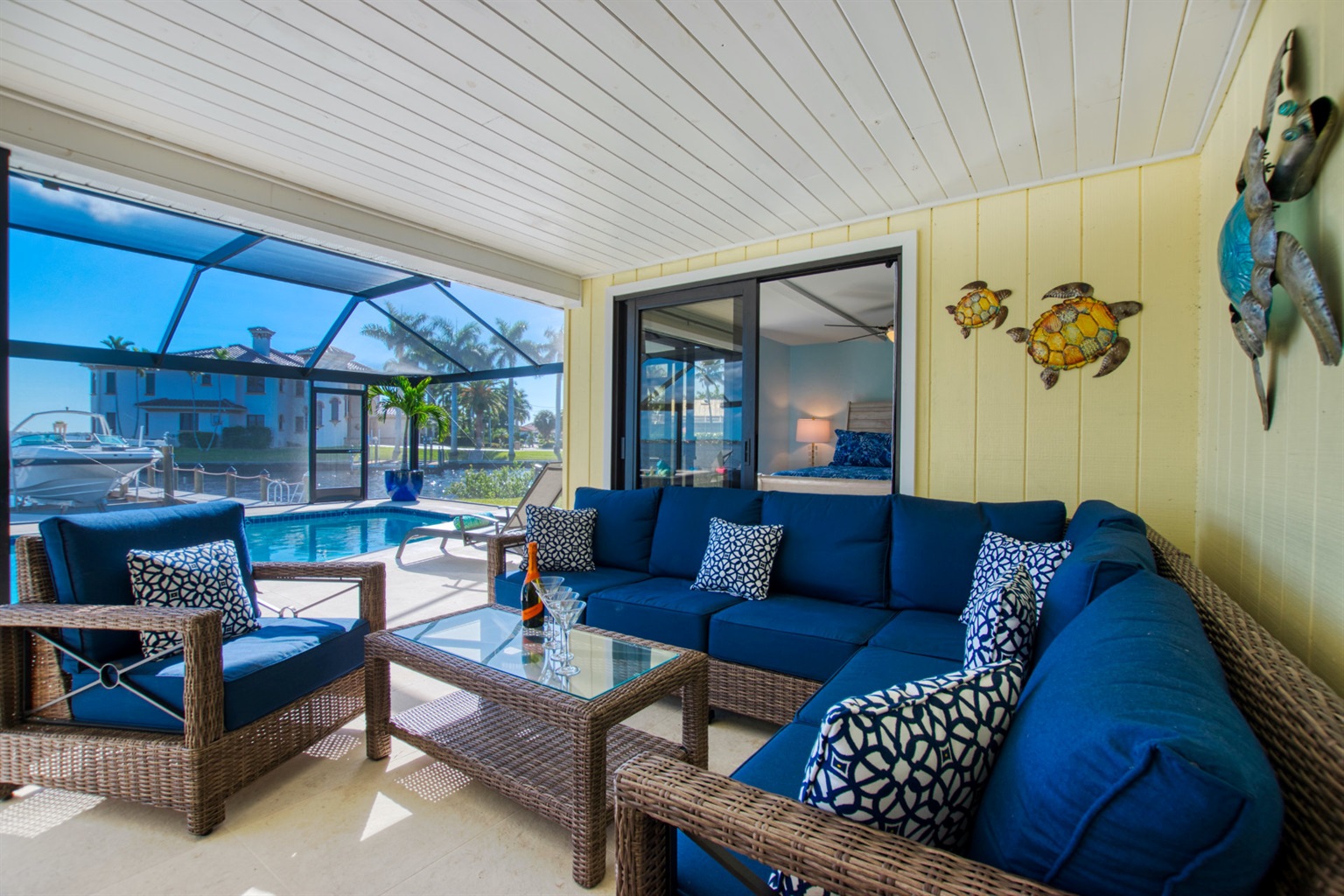 4 Bedrooms • 3 Bathrooms 3 Baths • Sleeps 4-8Villa Scenic - Located right on the river and in the yacht club with its tennis courts, pier, and other facilities, Villa Scenic offers an ideal location and has everything you could ever dream of for a relaxing Florida vacation. The 4 bedrooms and 3 full bathrooms - including one with convenient pool access, provide plenty of space to comfortably accommodate everyone.