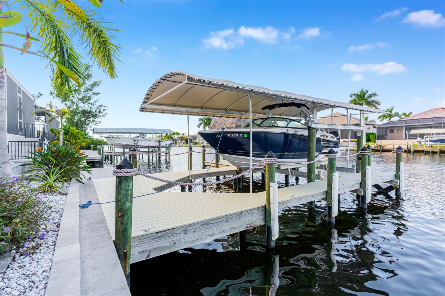 Boating enthusiasts will appreciate the proximity to Matlacha Pass, Boca Grande Pass with quick Gulf access eliminating long commute times, locks and the Miserable Mile! Enjoy breathtaking sunsets from the oversized pool, tiki hut, or dock. Or simply jump in the saltwater pool.