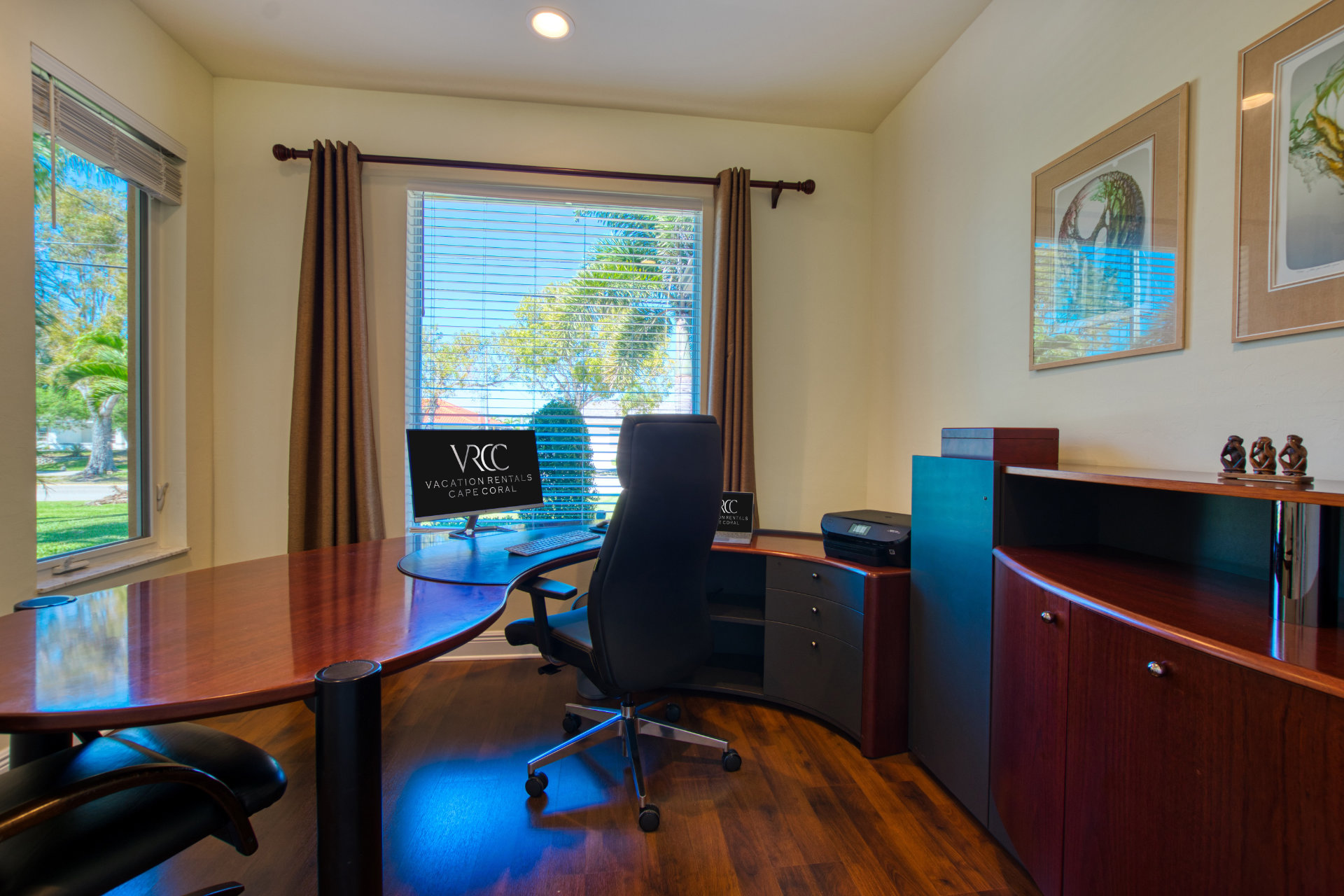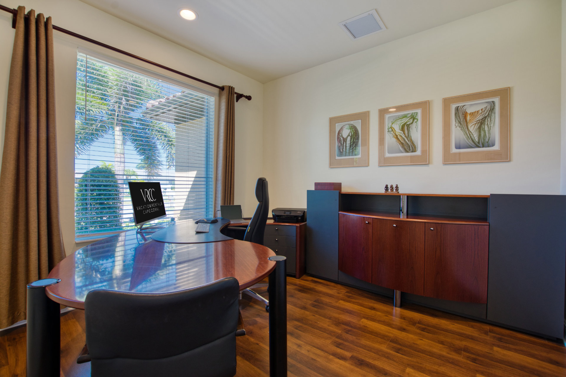 At the entrance to the villa is a representative spacious office furnished with high quality furniture and a printer.