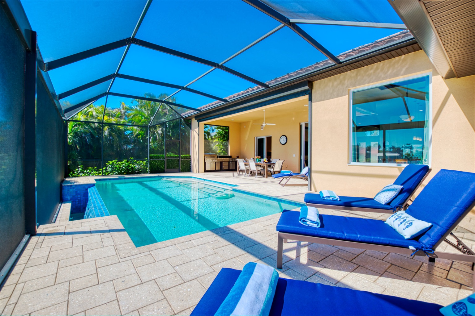 The two spacious master suites have access to the lanai, and the villa offers 3 updated bedrooms and 3 bathrooms for your comfort. Additionally, there are smart Tvs in every room there are plenty of entertainment amenities for your enjoyment, such as a kayak and bicycles, and a set of golf clubs.